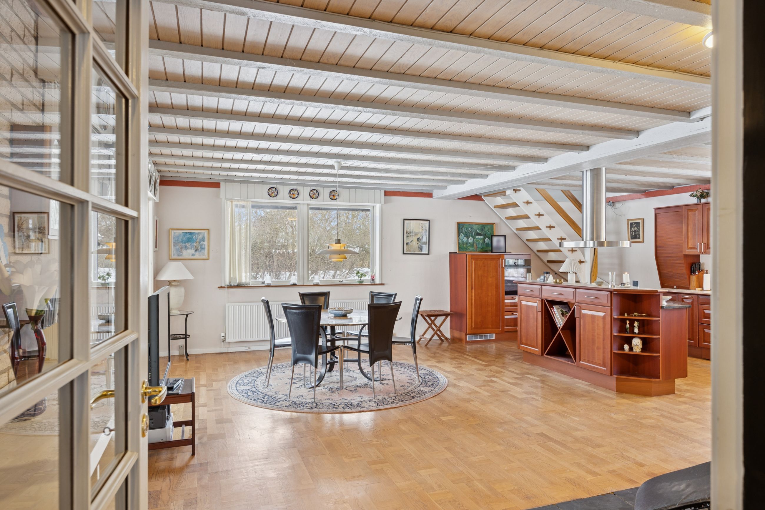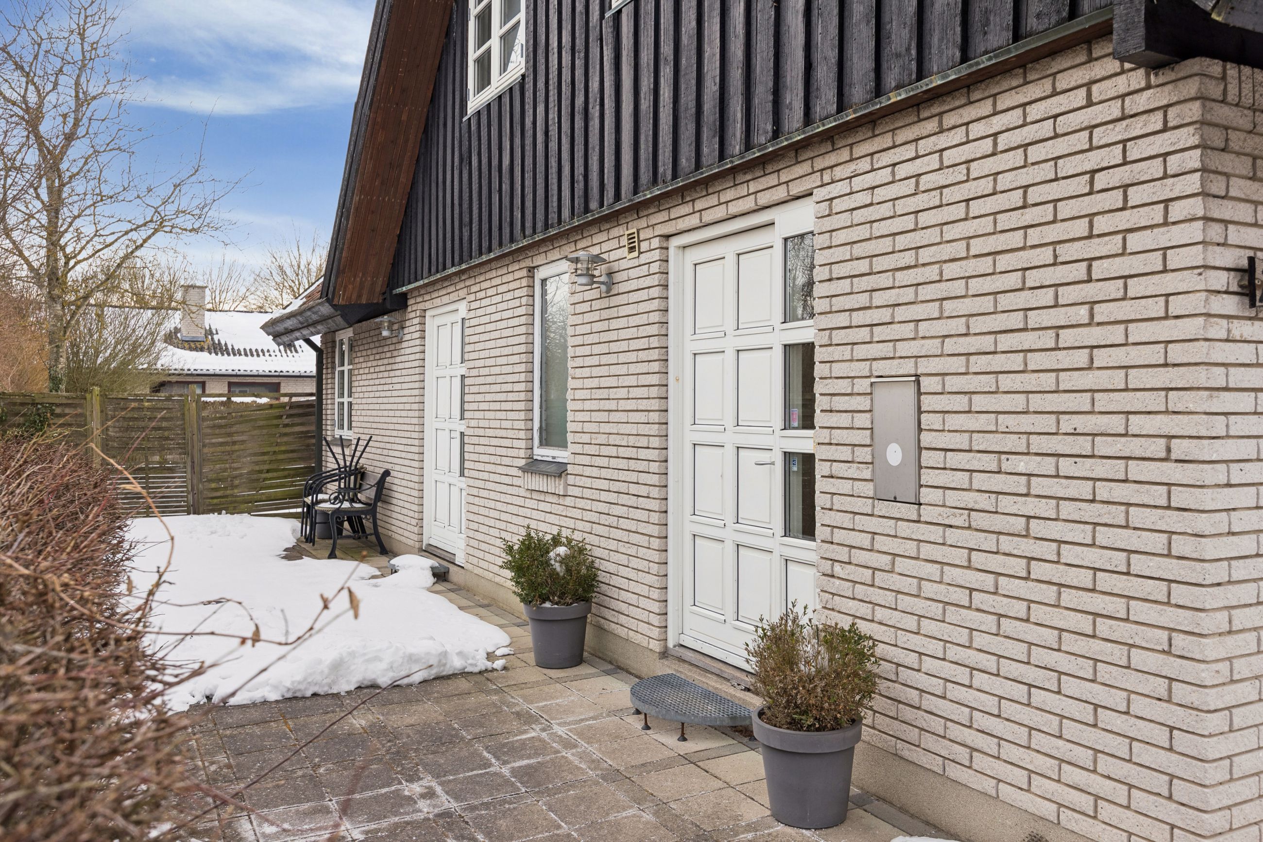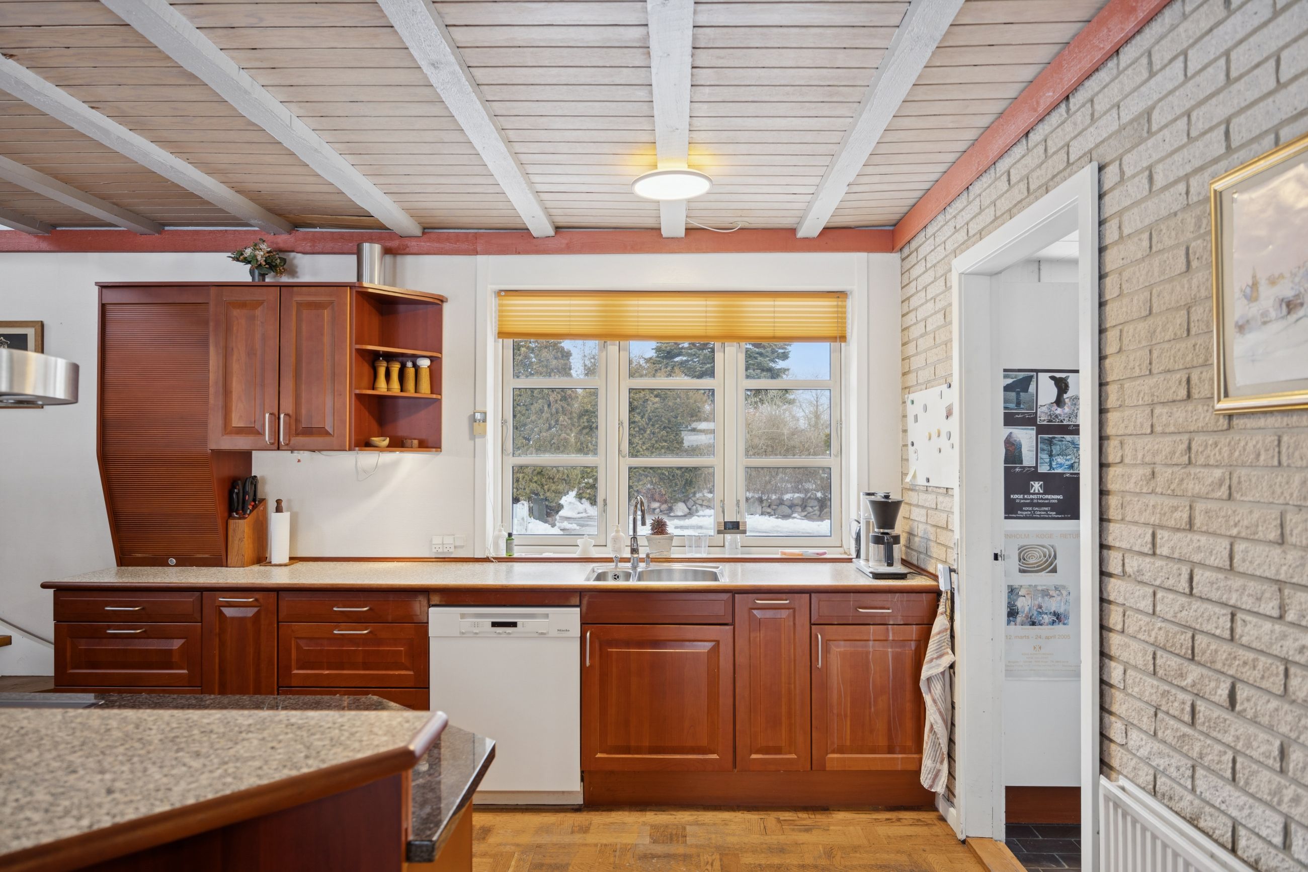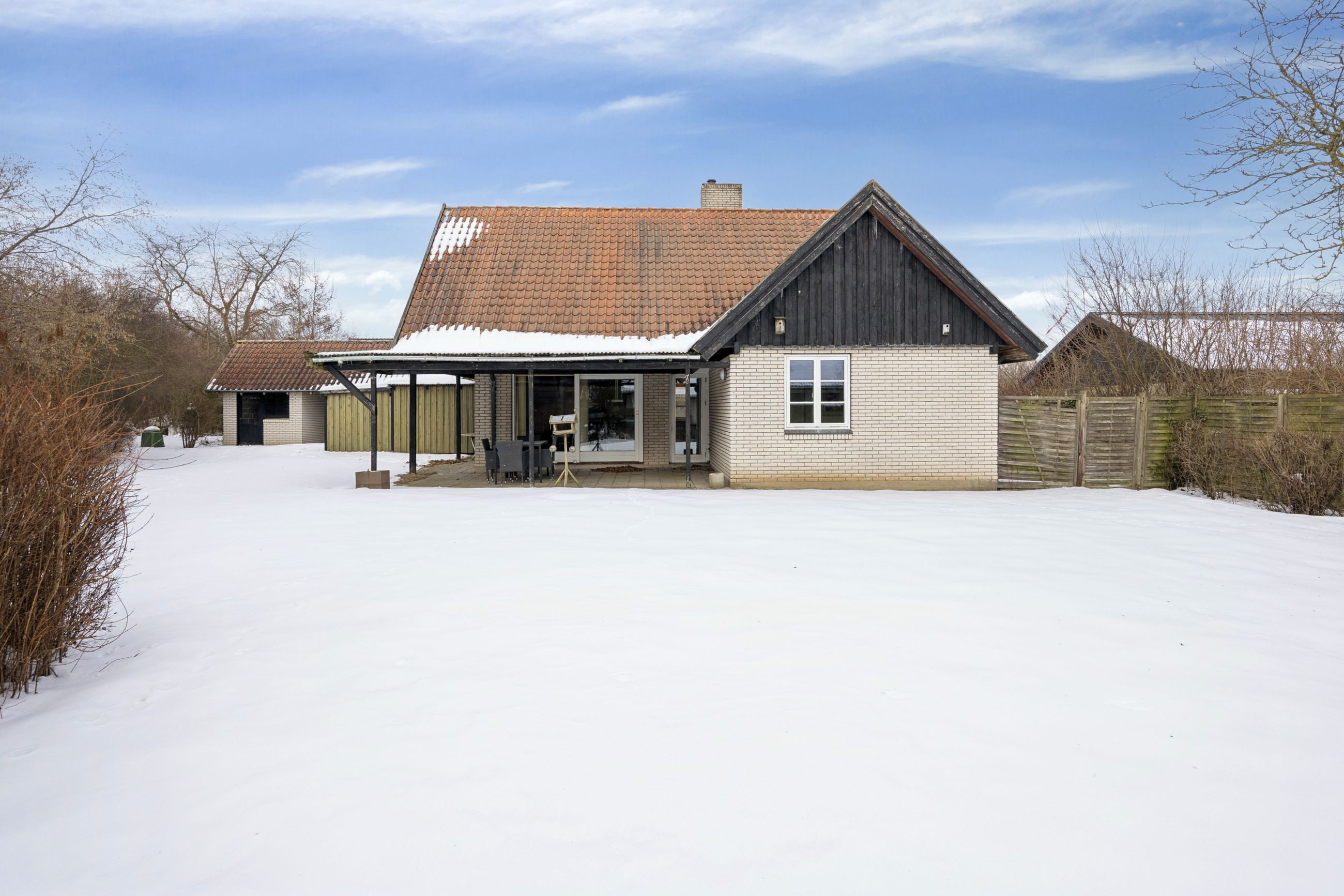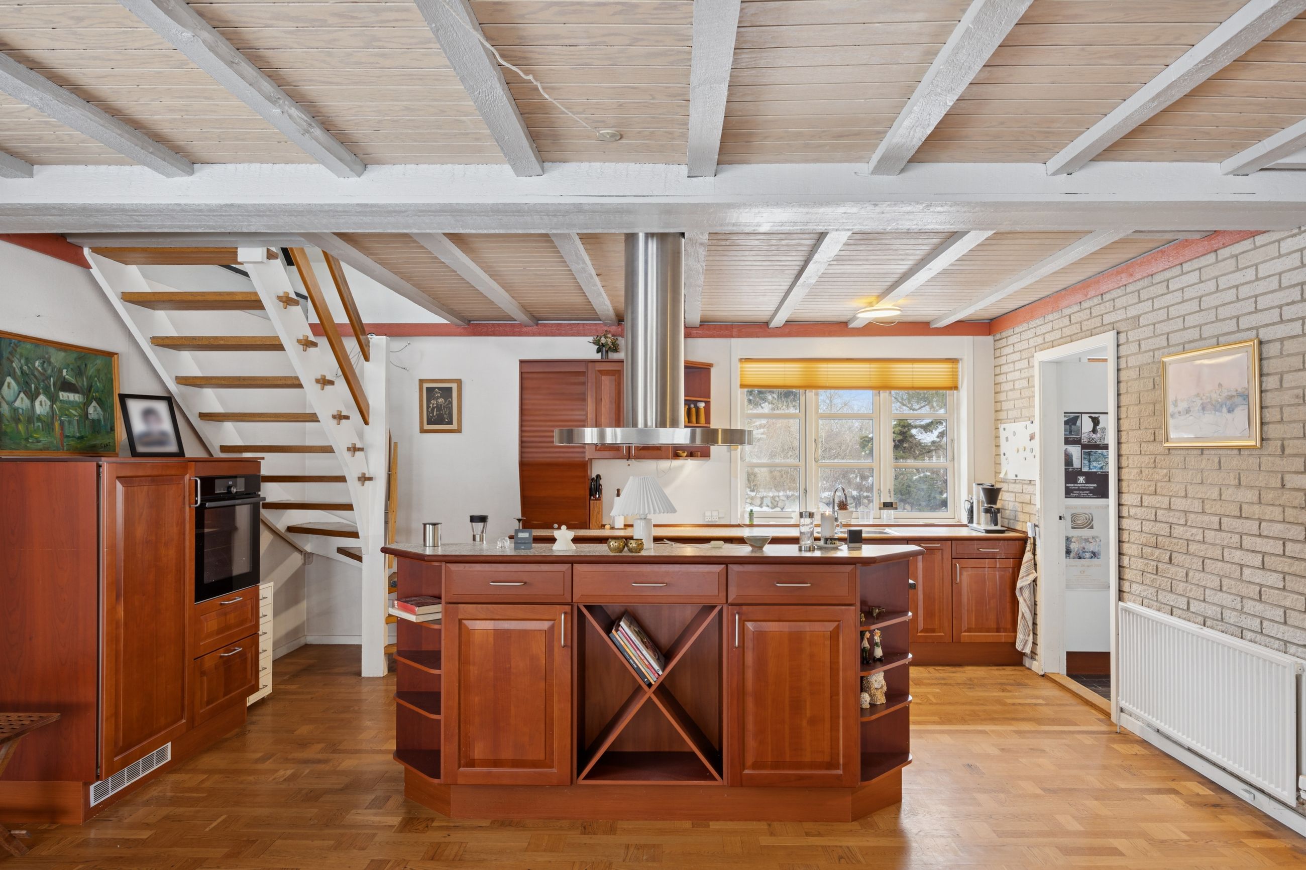 Boligen byder på et rummeligt boligareal på hele 165 kvadratmeter, hvor der er tænkt over hver eneste detalje for at skabe en funktionel og indbydende atmosfære. Du træder ind i et stort bryggers, der gør hverdagen lettere med god plads til opbevaring. Herfra ledes du videre til det åbne køkken-alrum, som uden tvivl vil blive hjemmets samlingspunkt. Det stilfulde køkken er udstyret med en praktisk køkkenø og giver direkte adgang til haven samt den overdækkede terrasse – perfekt til hyggelige stunder uanset vejret.
