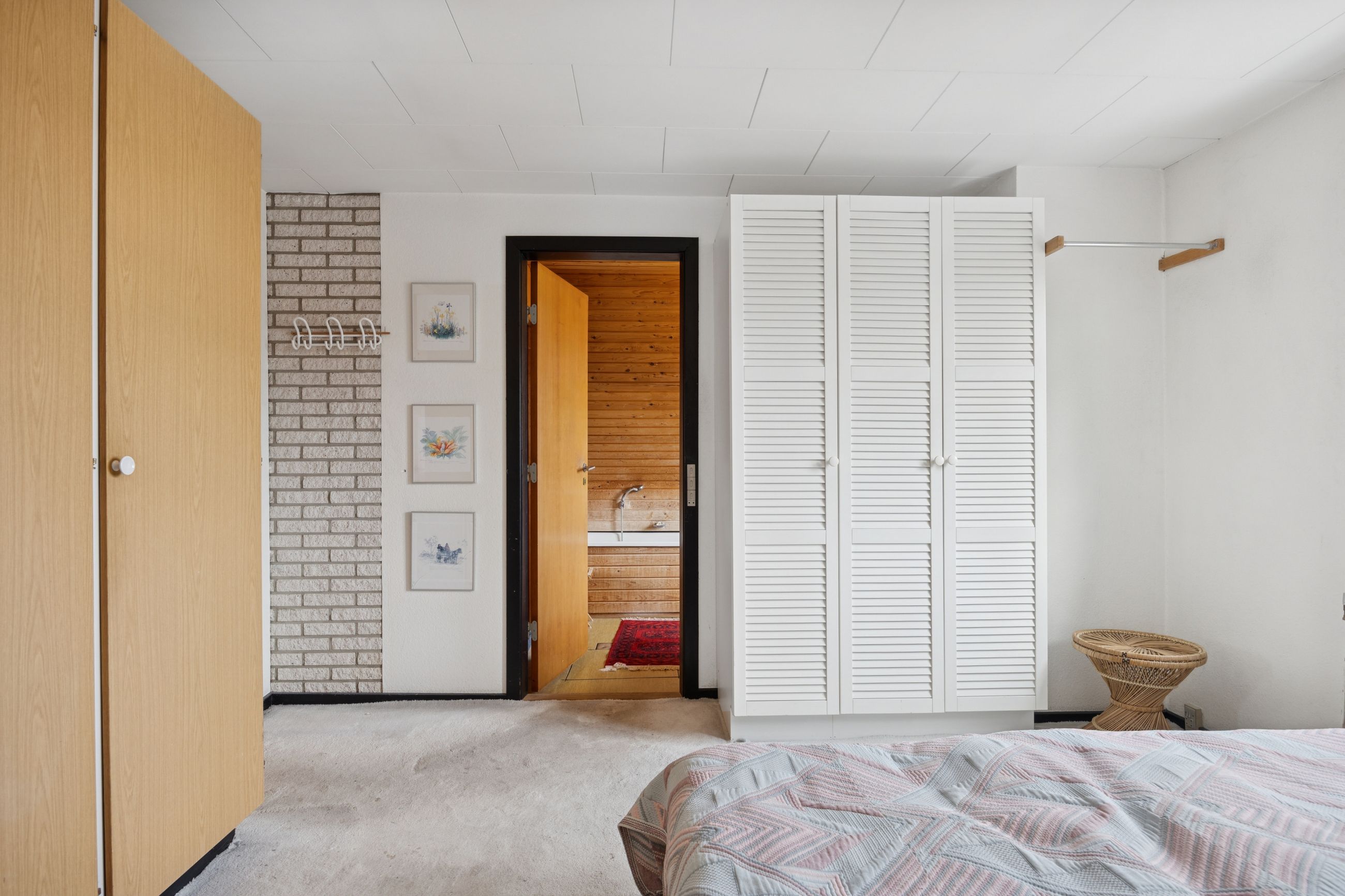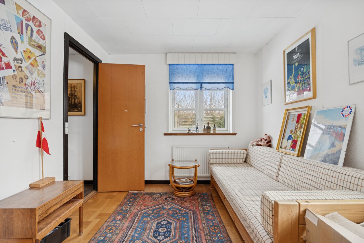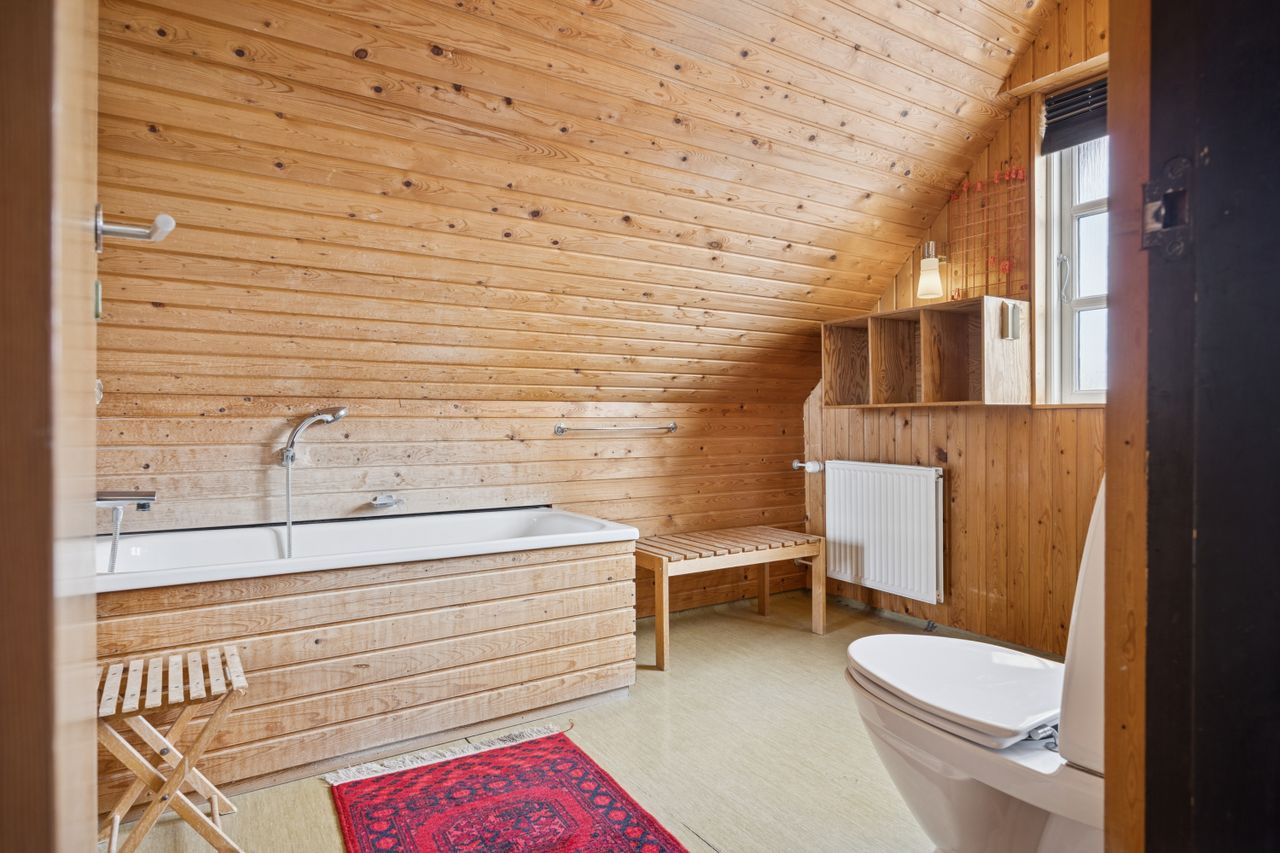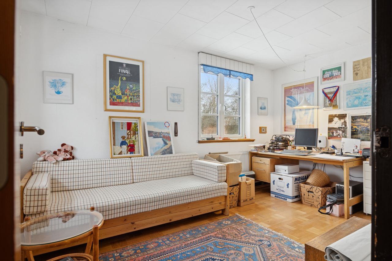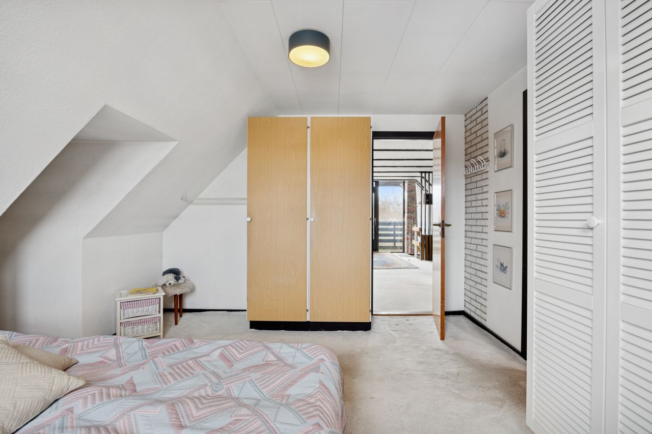Forældresoveværelset ligger privat placeret med eget badeværelse og direkte adgang til et uudnyttet loftrum – her er der virkelig mulighed for at drømme stort! Haven omkring huset er flot anlagt og tilbyder masser af plads på den store grund; ideel for børnefamilier eller dem der elsker udendørs aktiviteter.