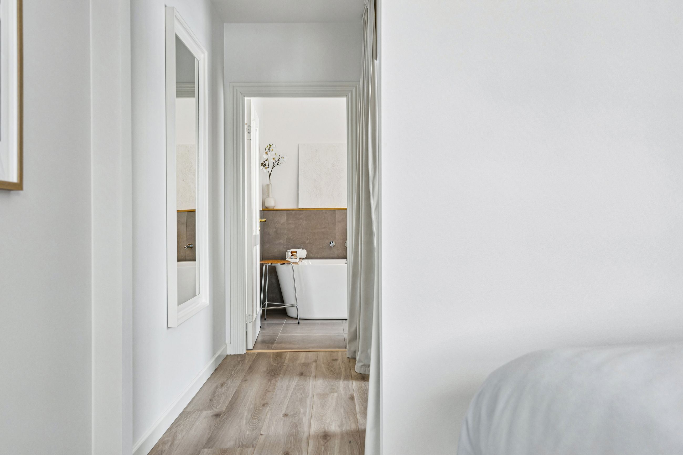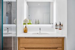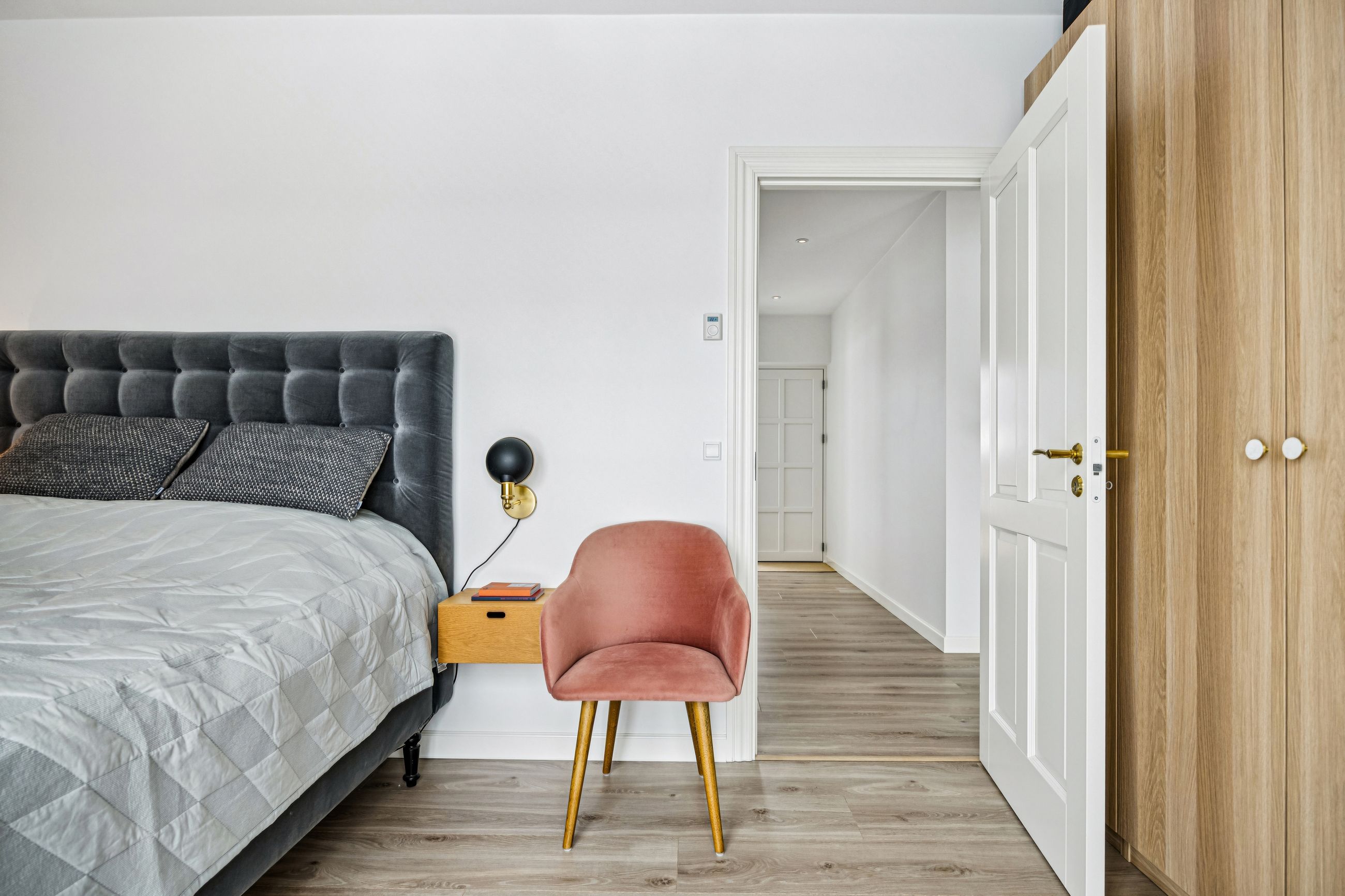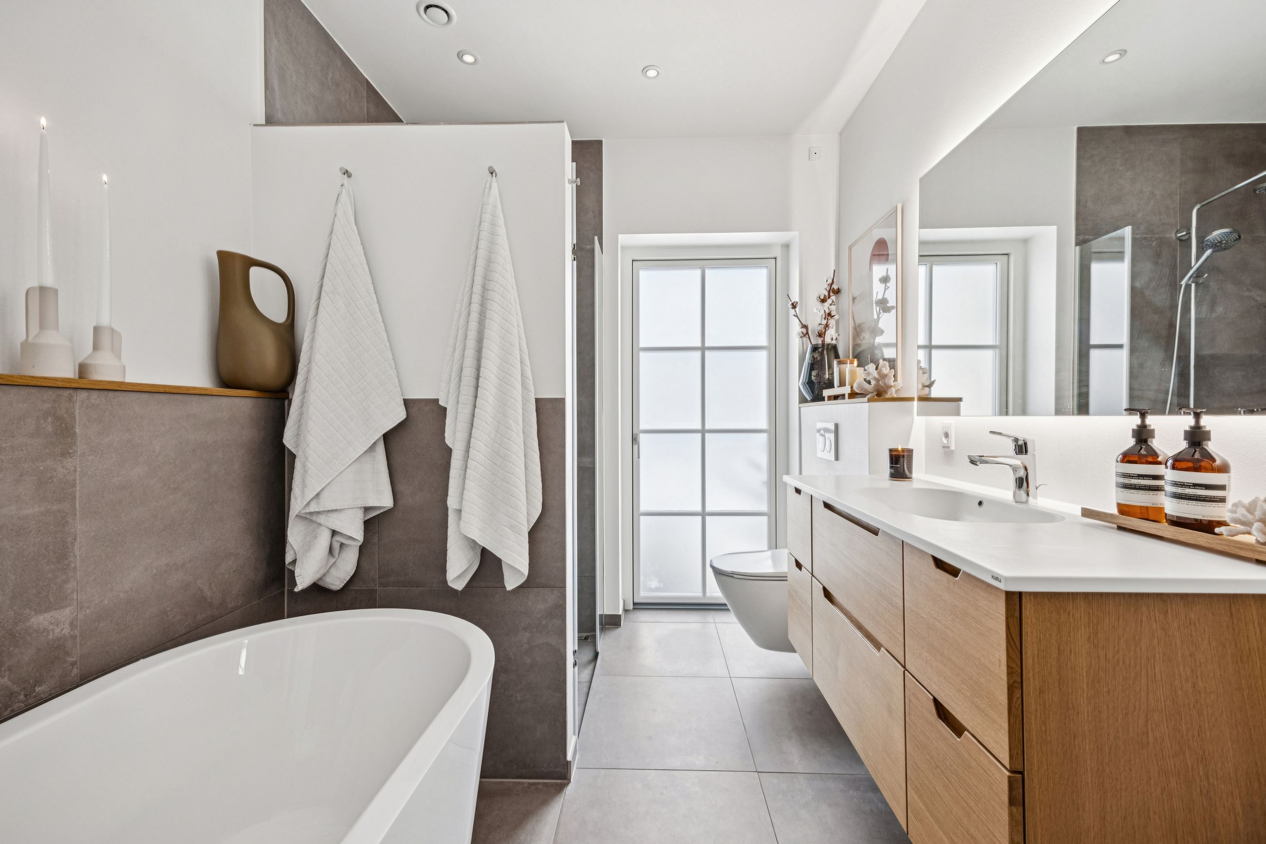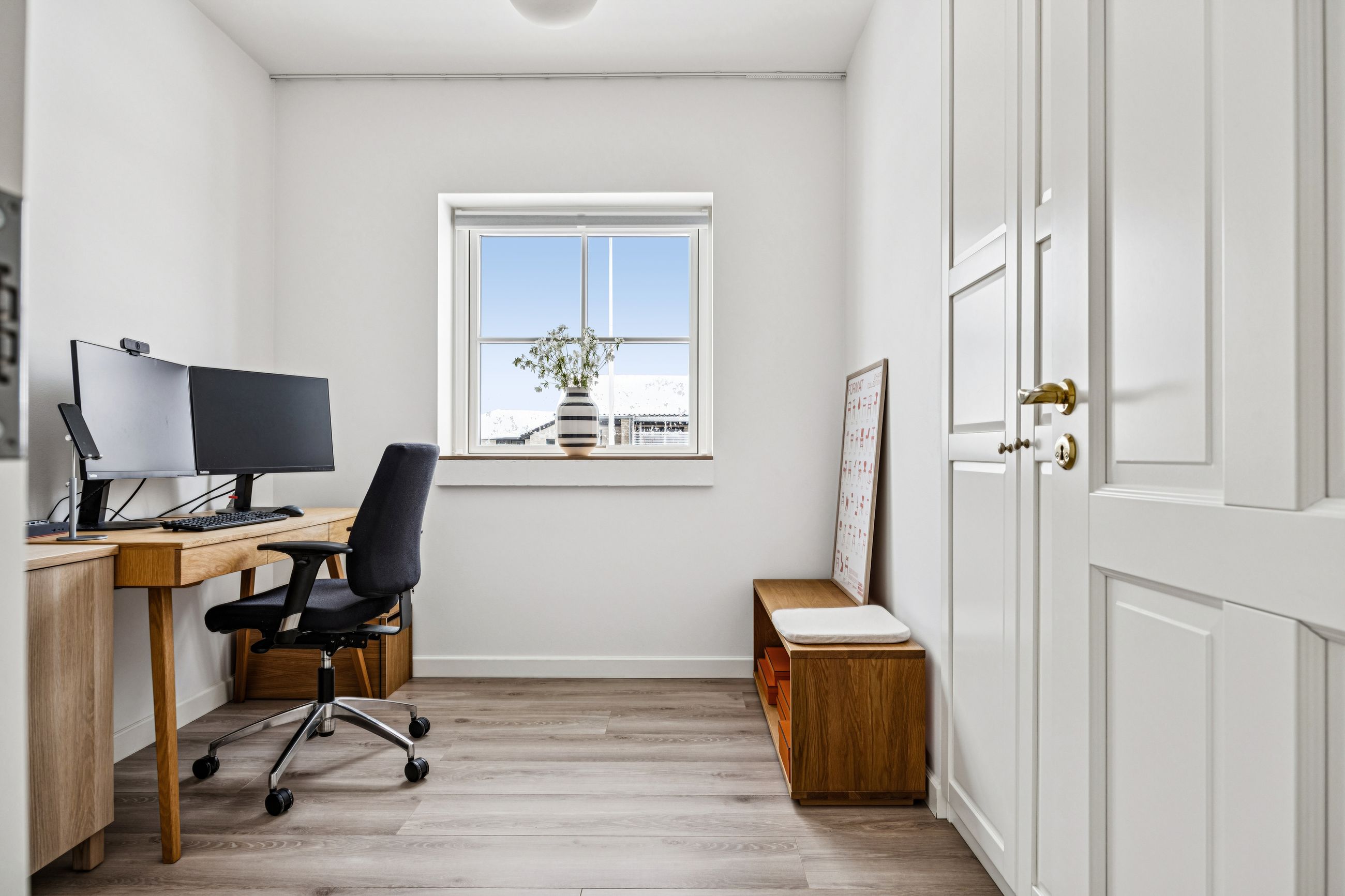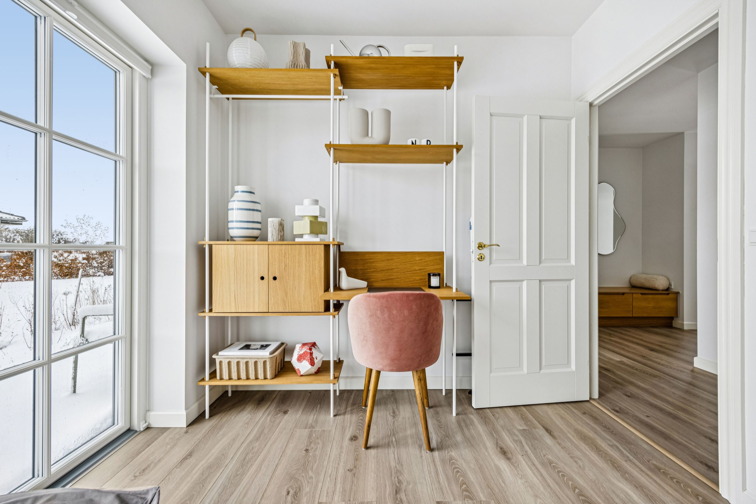 Indretningen er gennemtænkt med separate børne- og forældreafdelinger, hvilket giver optimal privatliv for alle familiemedlemmer. Der er to luksuriøse badeværelser, hvor det ene inkluderer et lækkert badekar. Køkkenet fra HTH imponerer med Miele kogeplader og emfang, hvilket gør madlavning til en sand fornøjelse.