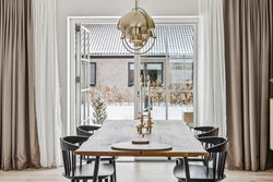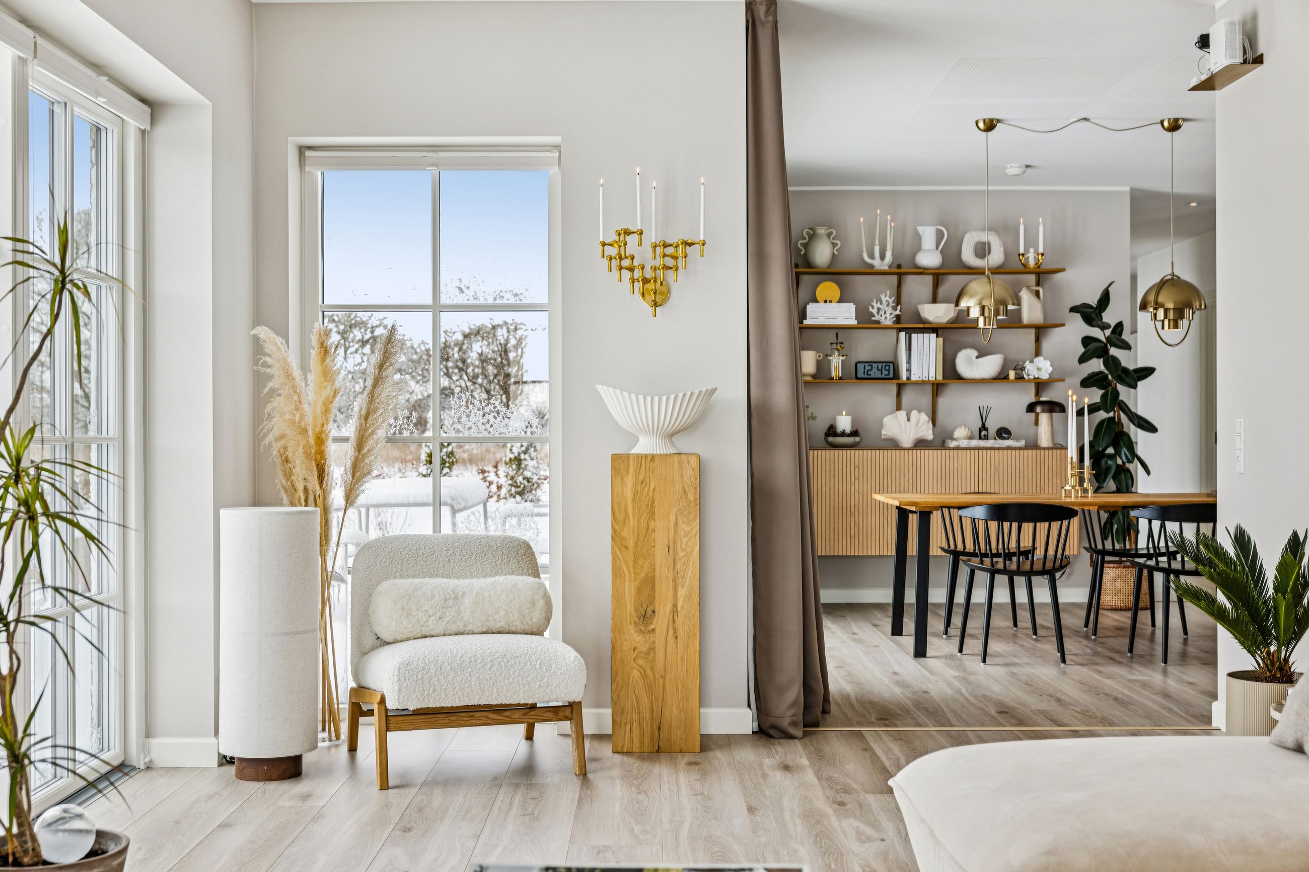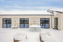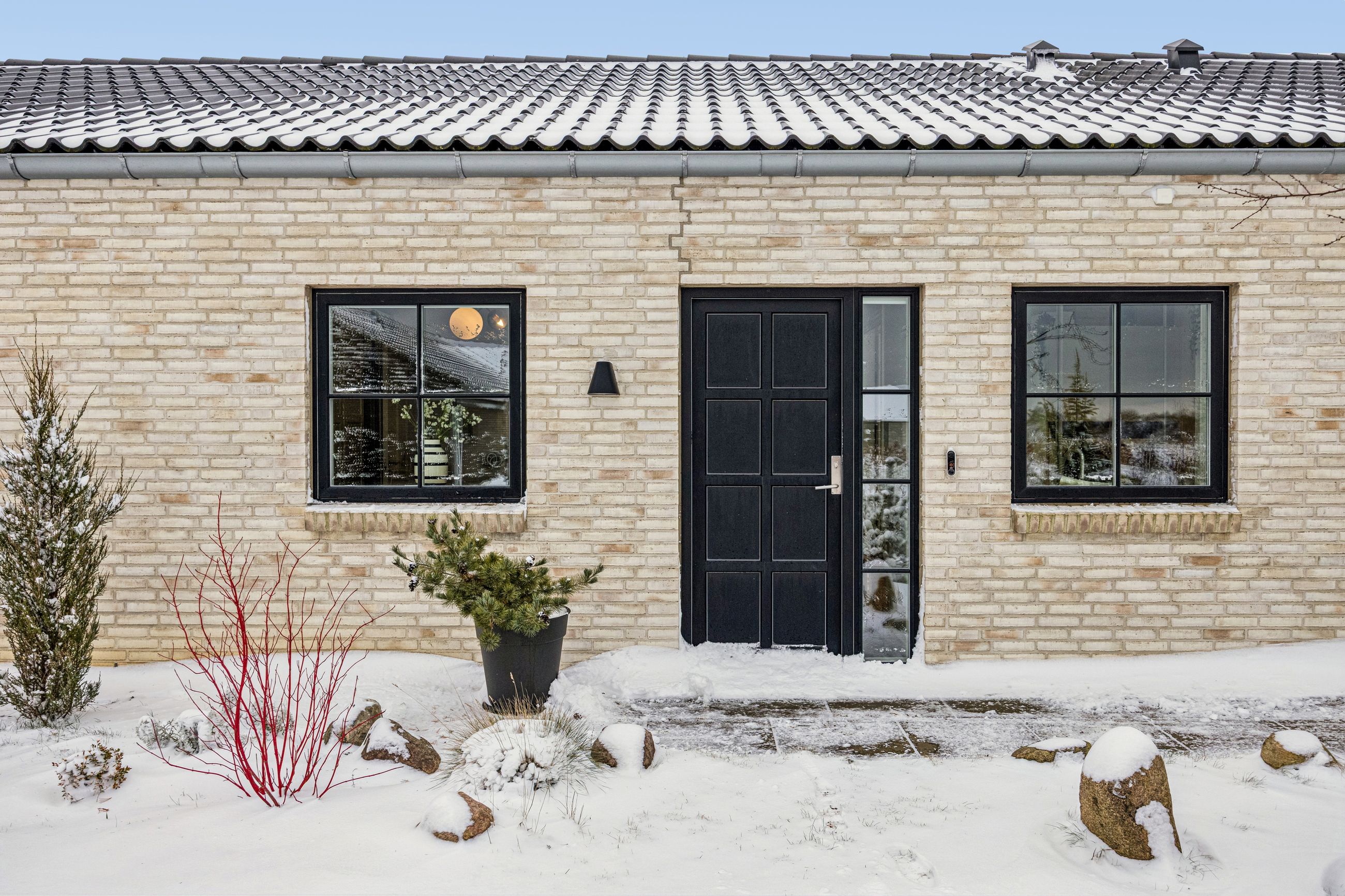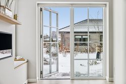 Villaens arkitektur byder på ekstra loftshøjde og sprossevinduer, som sammen med de tre-lags vinduer skaber et fantastisk lysindfald i alle rum. Akustiklofterne bidrager til en behagelig lydoplevelse, mens biopejsen skaber hygge på kølige aftener. Massive døre understreger husets kvalitetsniveau.