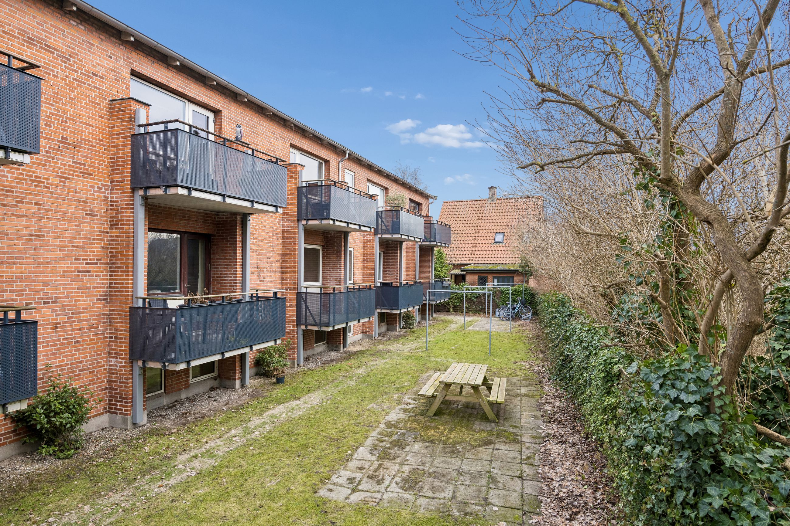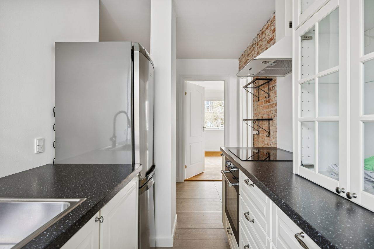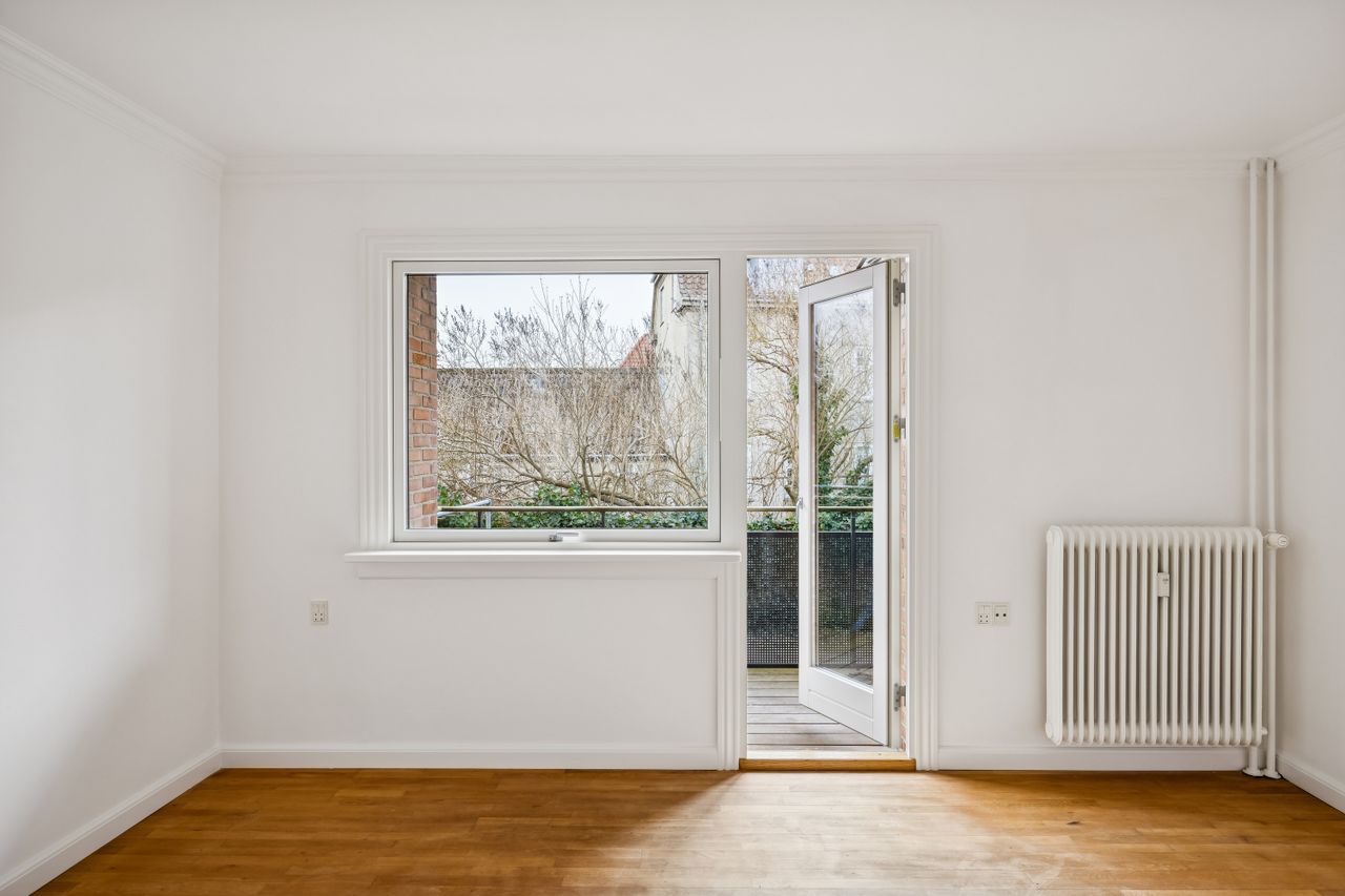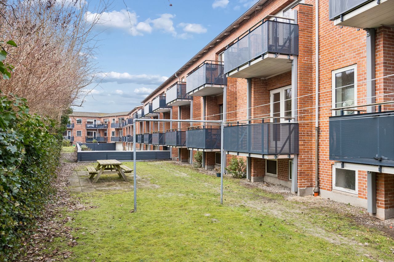 Lejligheden har en yderst praktisk indretning med en rummelig entré, der giver adgang til alle rum. Det nyere køkken er veludstyret og skaber de perfekte rammer for madlavning. Den store stue fungerer som hjertet af hjemmet med direkte udgang til en imponerende vestvendt altan, hvor du kan nyde eftermiddags- og aftensolen samt udsigten over det hyggelige gårdmiljø.
