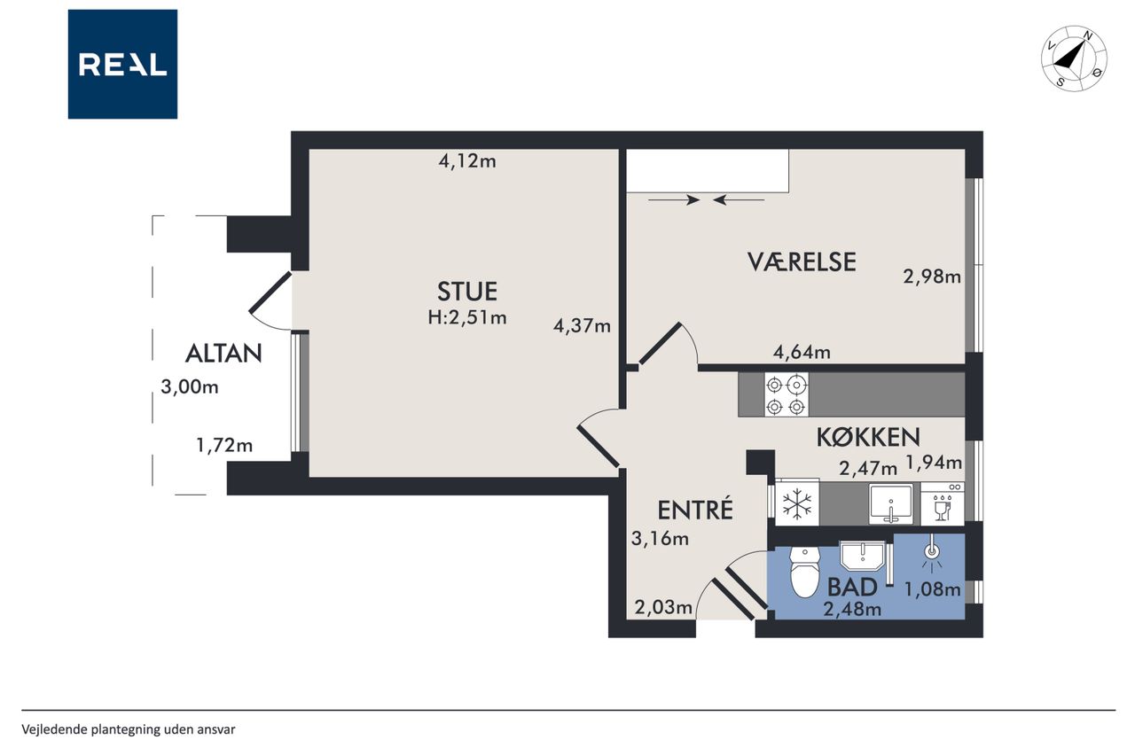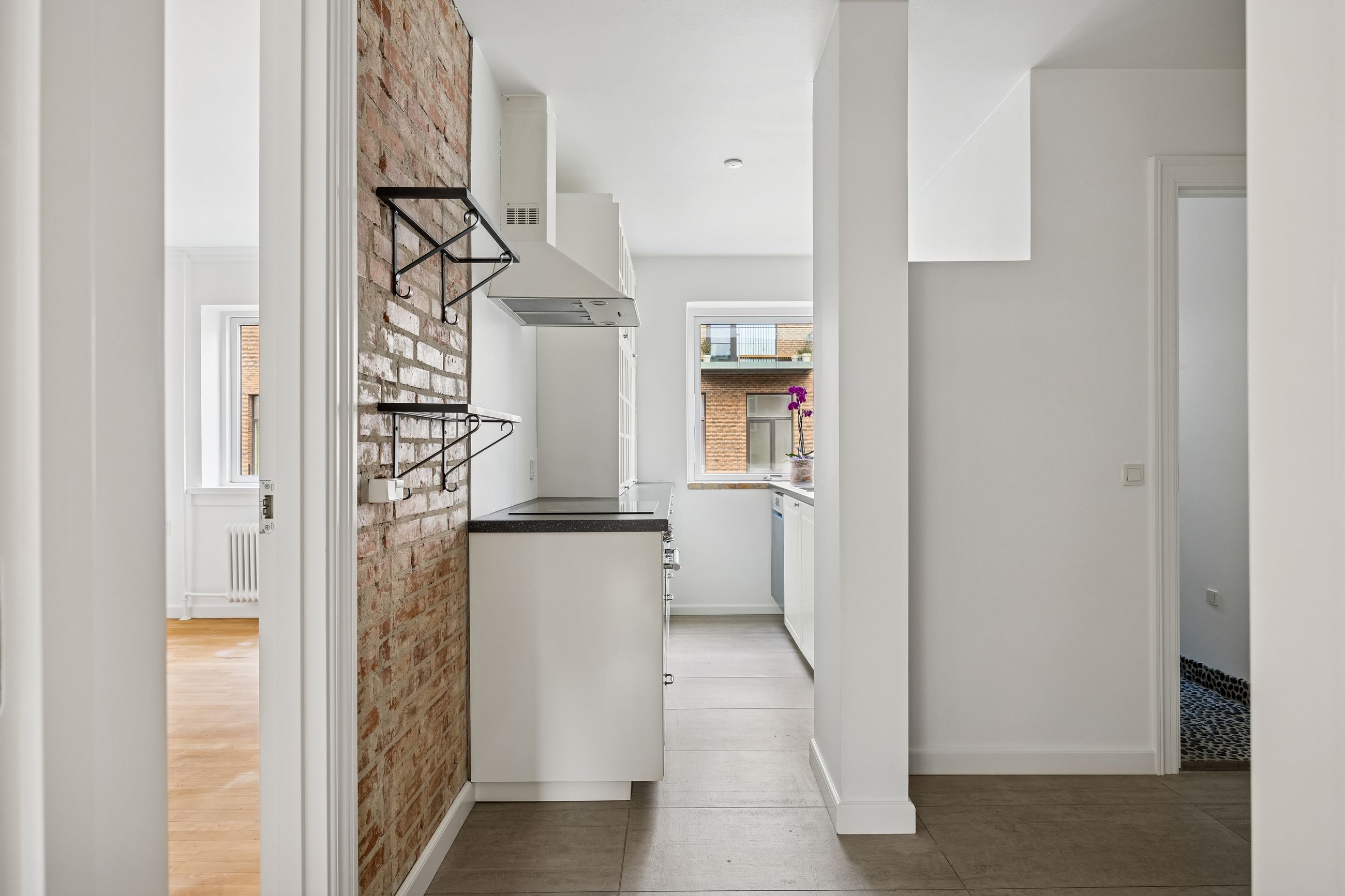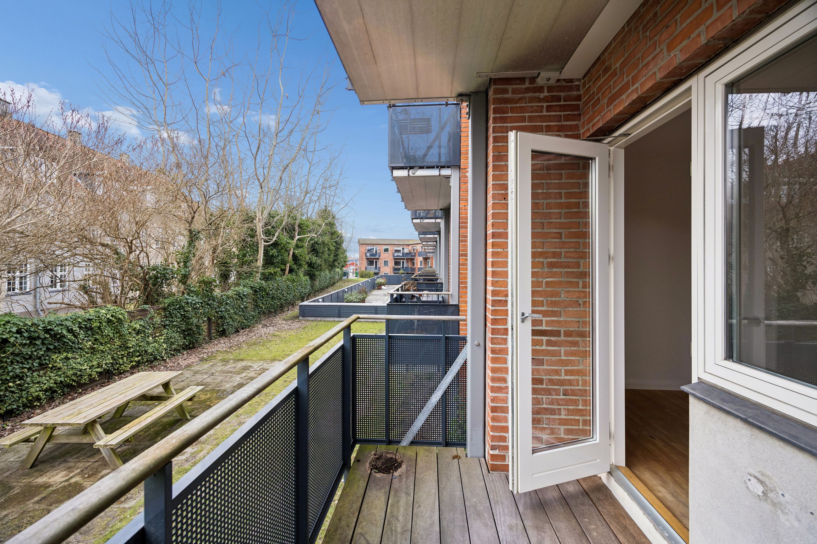 Lejligheden har en yderst praktisk indretning med en rummelig entré, der giver adgang til alle rum. Det nyere køkken er veludstyret og skaber de perfekte rammer for madlavning. Den store stue fungerer som hjertet af hjemmet med direkte udgang til en imponerende vestvendt altan, hvor du kan nyde eftermiddags- og aftensolen samt udsigten over det hyggelige gårdmiljø.