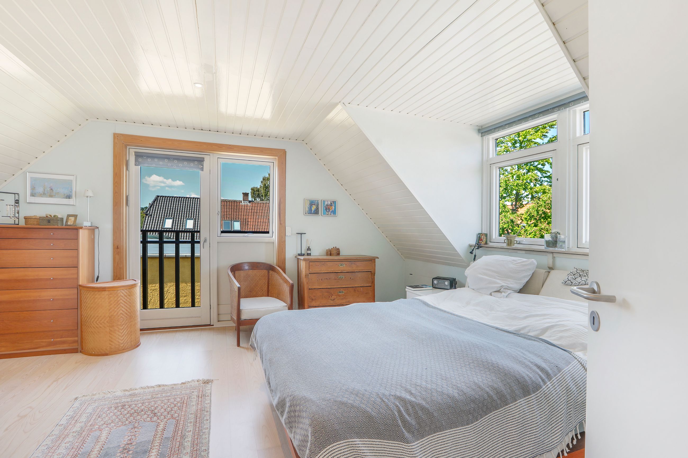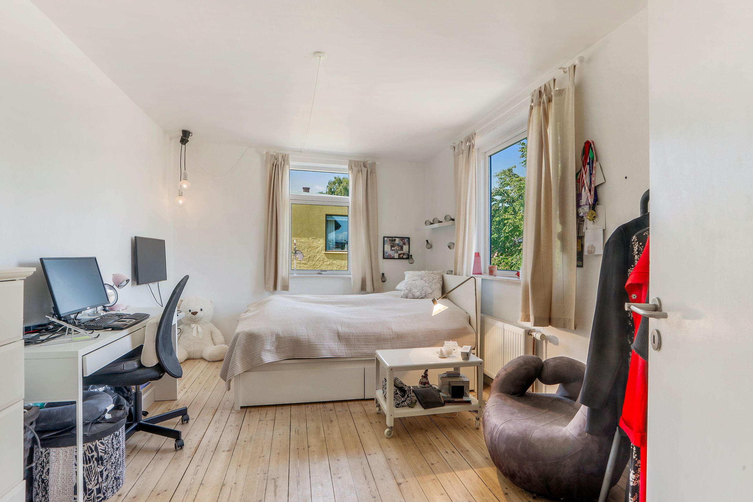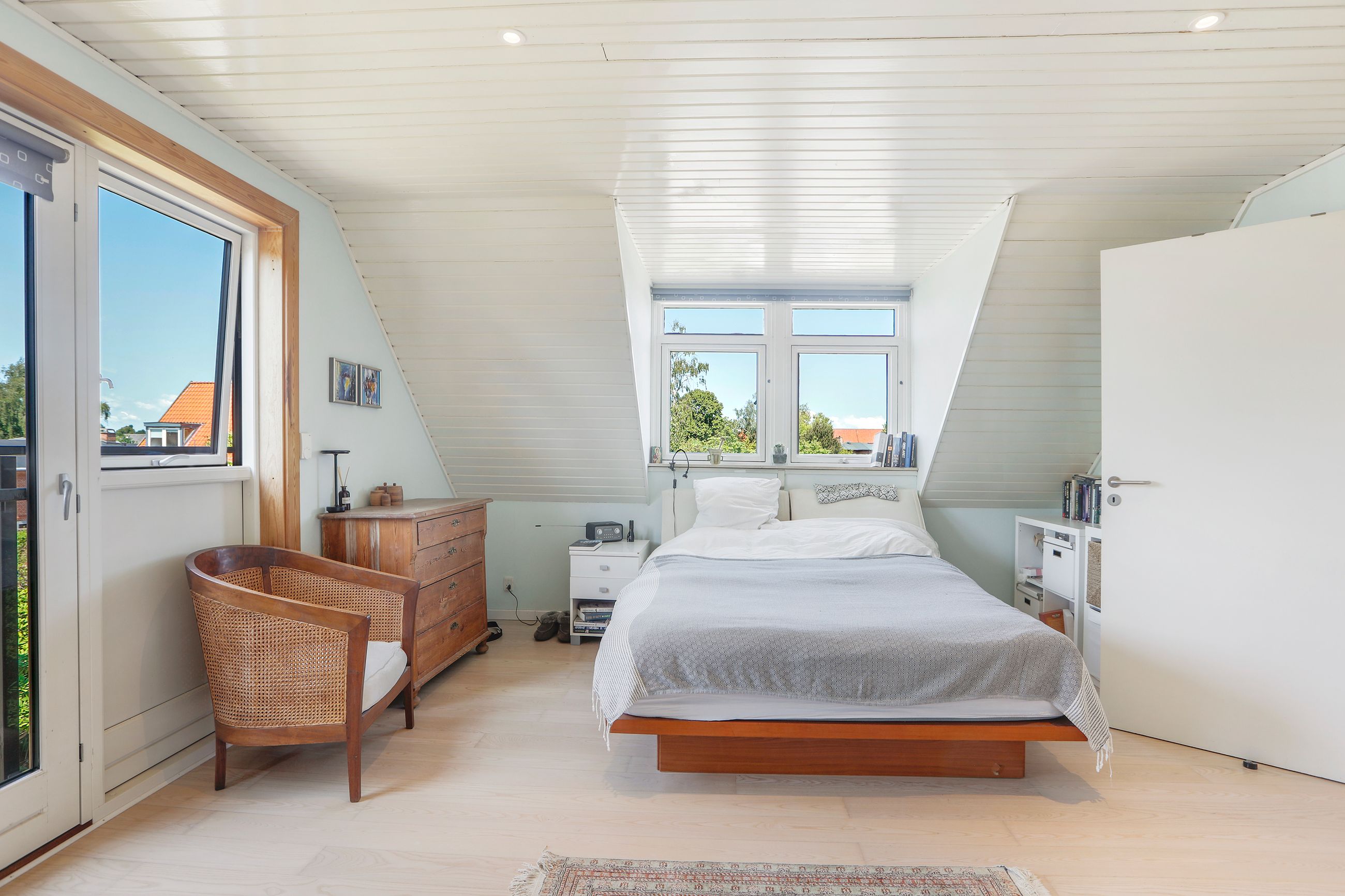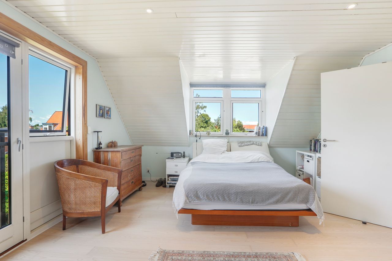 Villaens soveafdeling består af flere værelser fordelt over to etager, hvilket sikrer privatliv for alle familiemedlemmer. Hvert værelse har sin egen unikke karakter med originale detaljer bevaret fra byggeåret. Derudover findes der badeværelser på alle 3 etager.