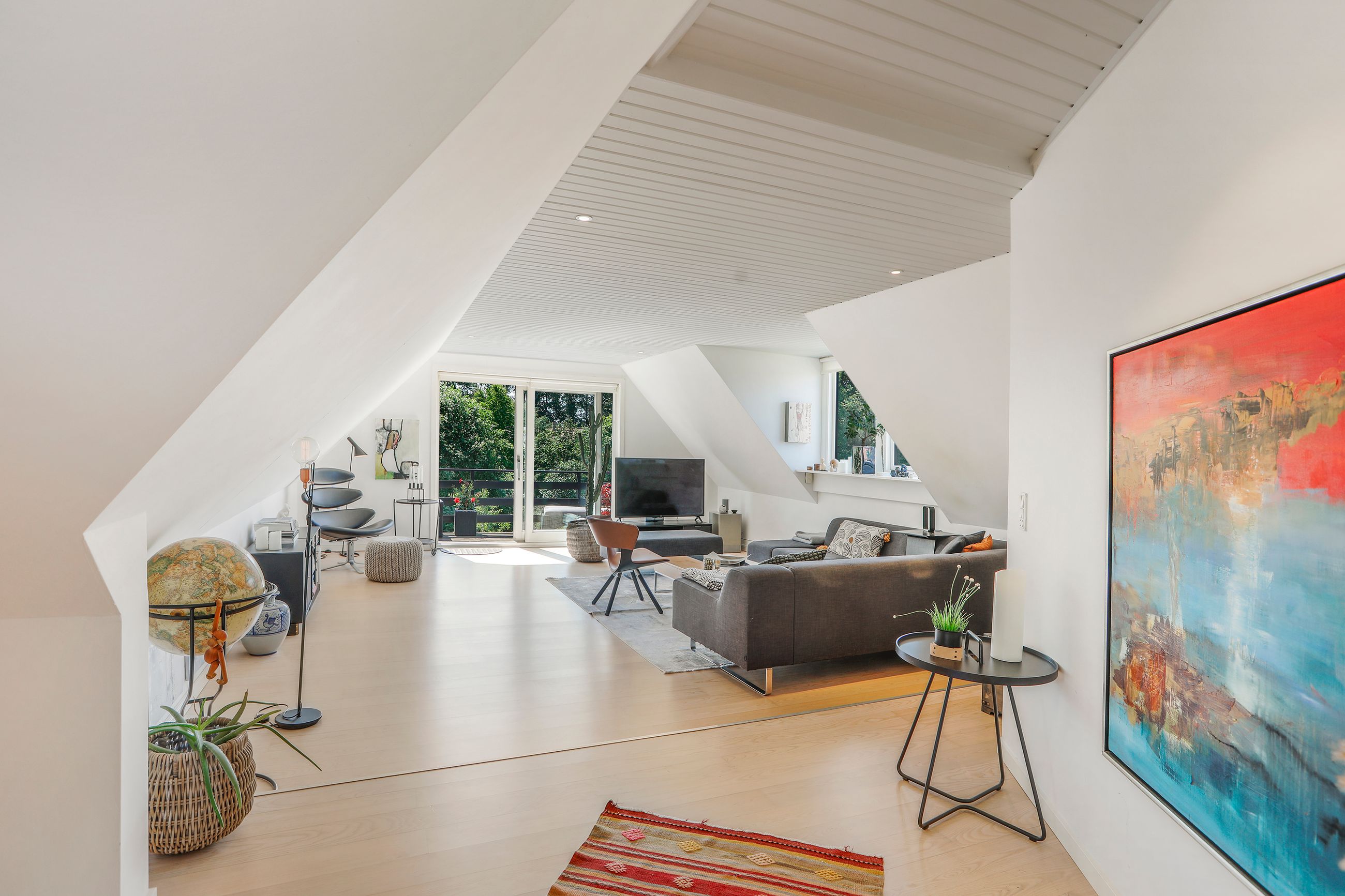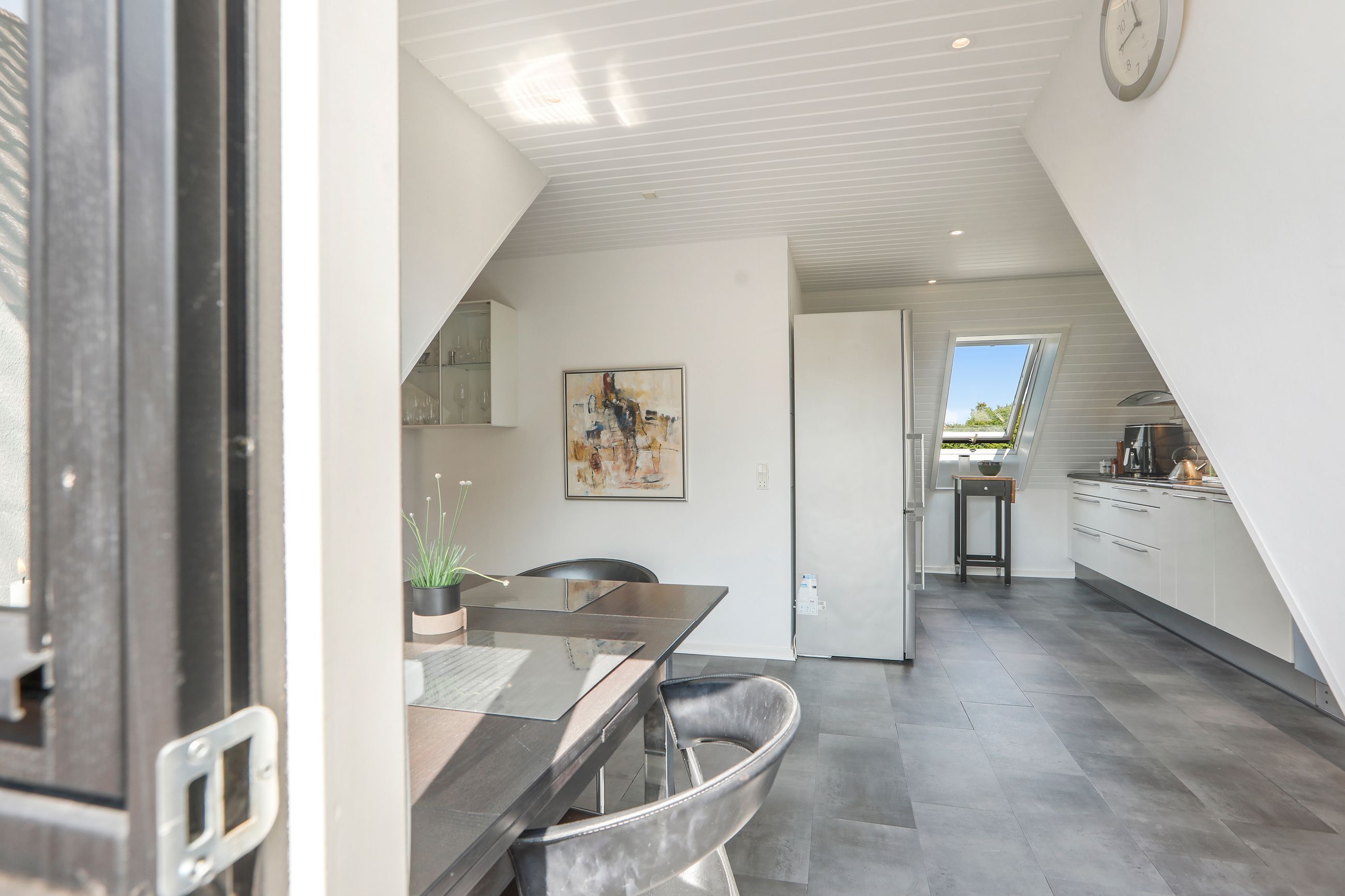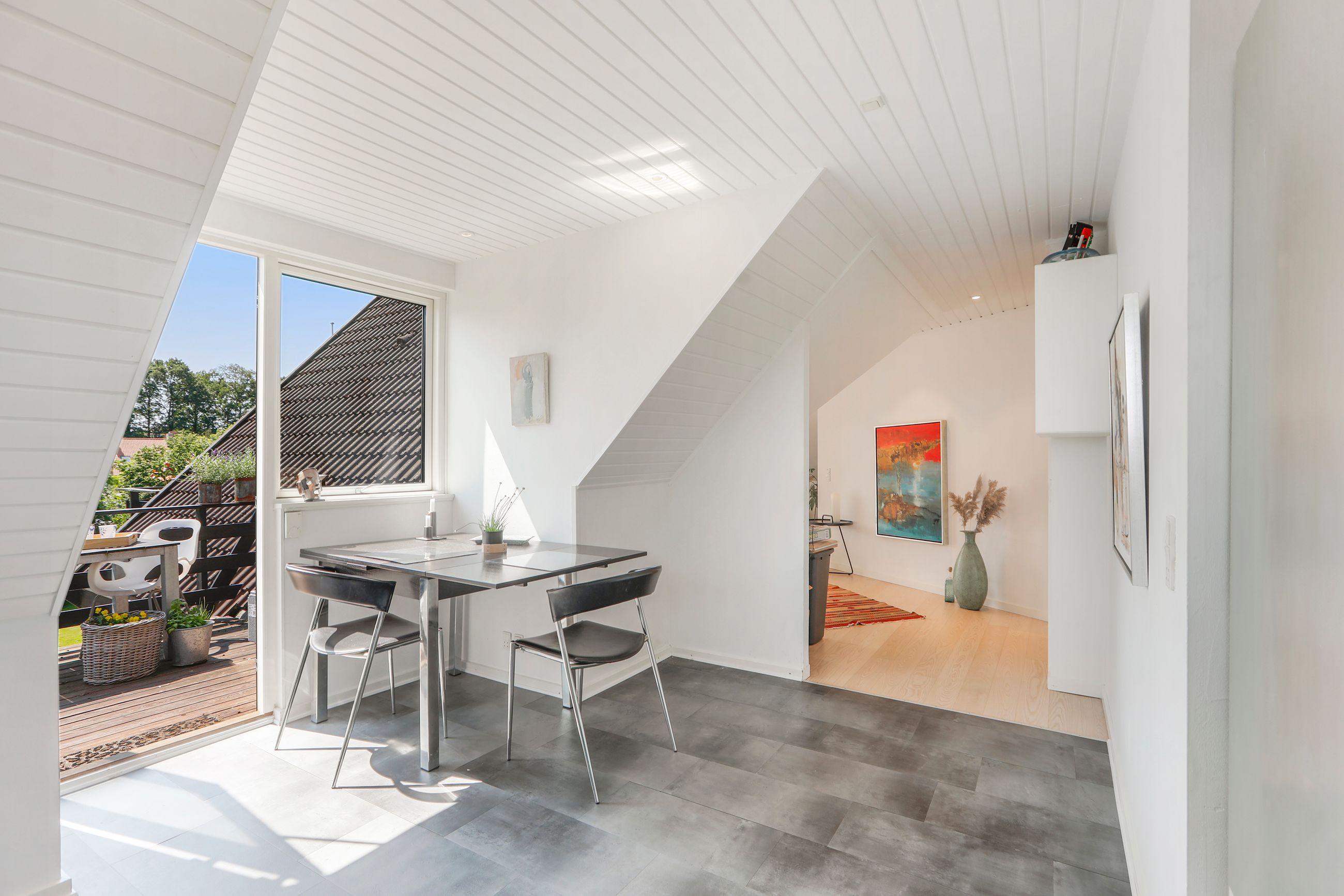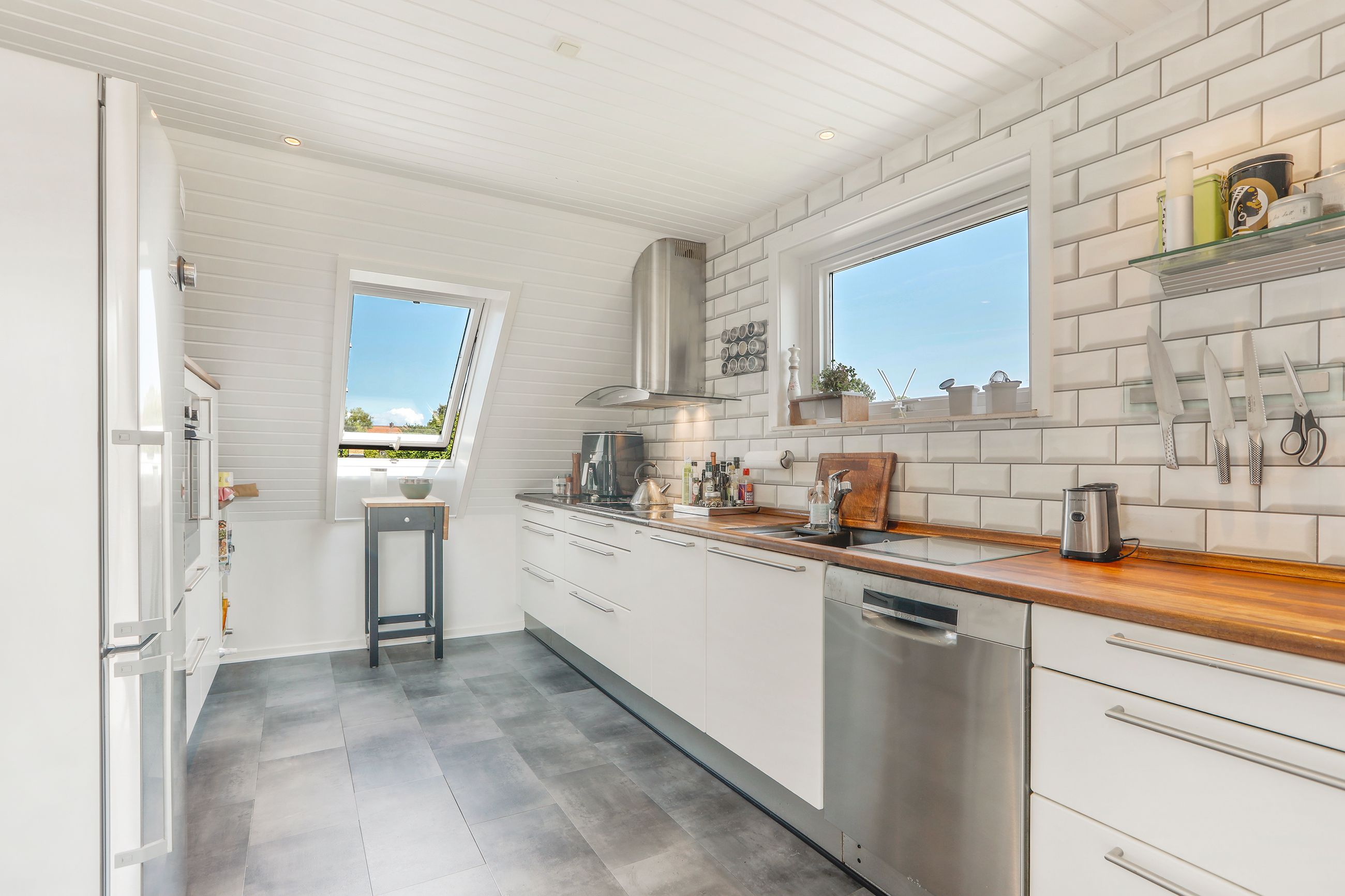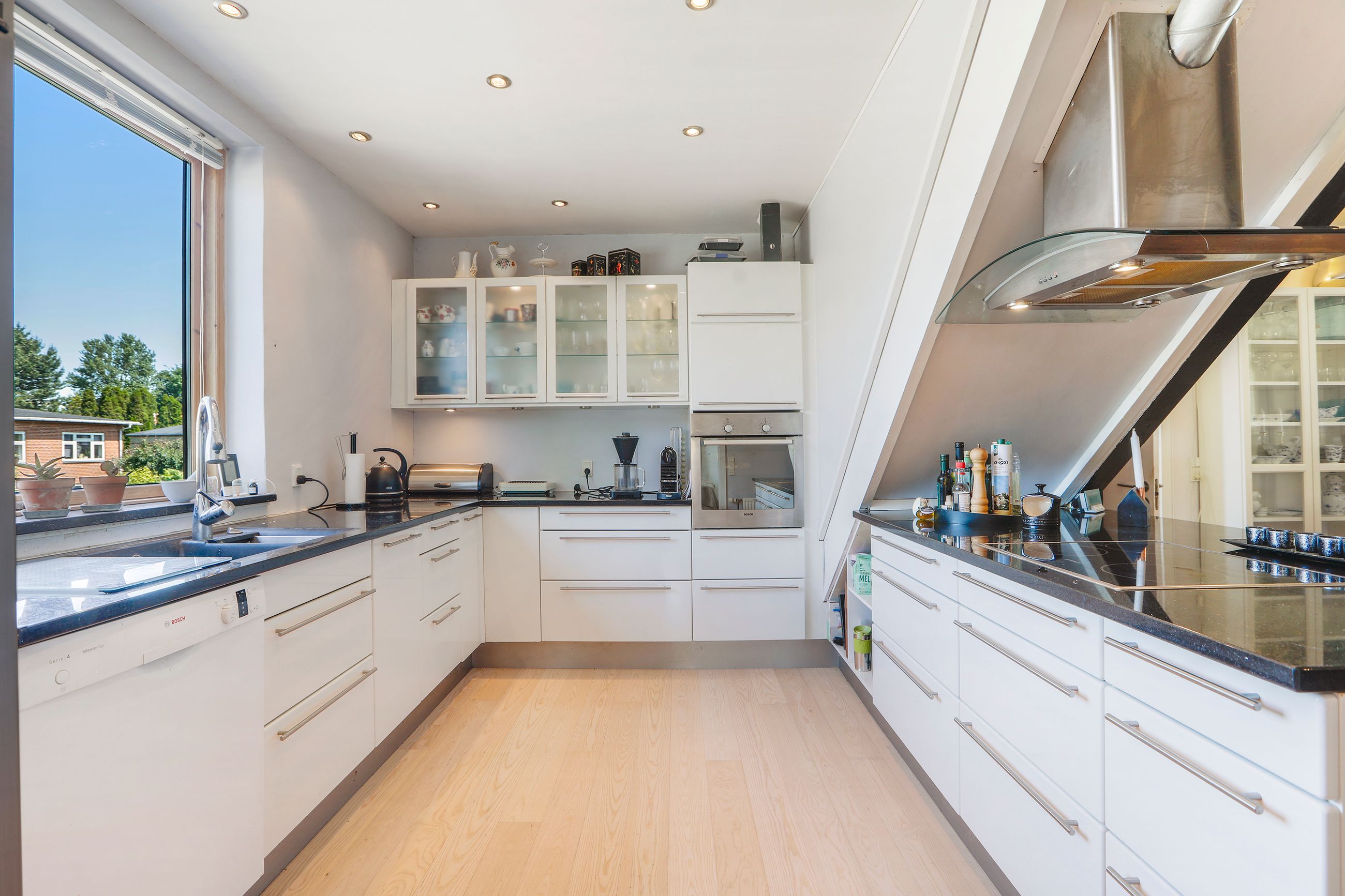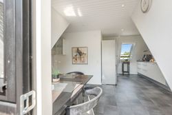 Indenfor mødes du af en rummelig entré, der fører videre ind i de lyse stuer, hvor dagslyset strømmer ind gennem de store vinduespartier. Herfra har du adgang til husets hjerte: det åbne køkken-alrum, som inviterer til hyggelige middage og sociale sammenkomster. Det veludstyrede køkken vil glæde enhver madentusiast med sine moderne faciliteter og masser af arbejdsplads.