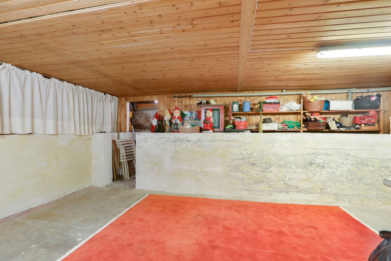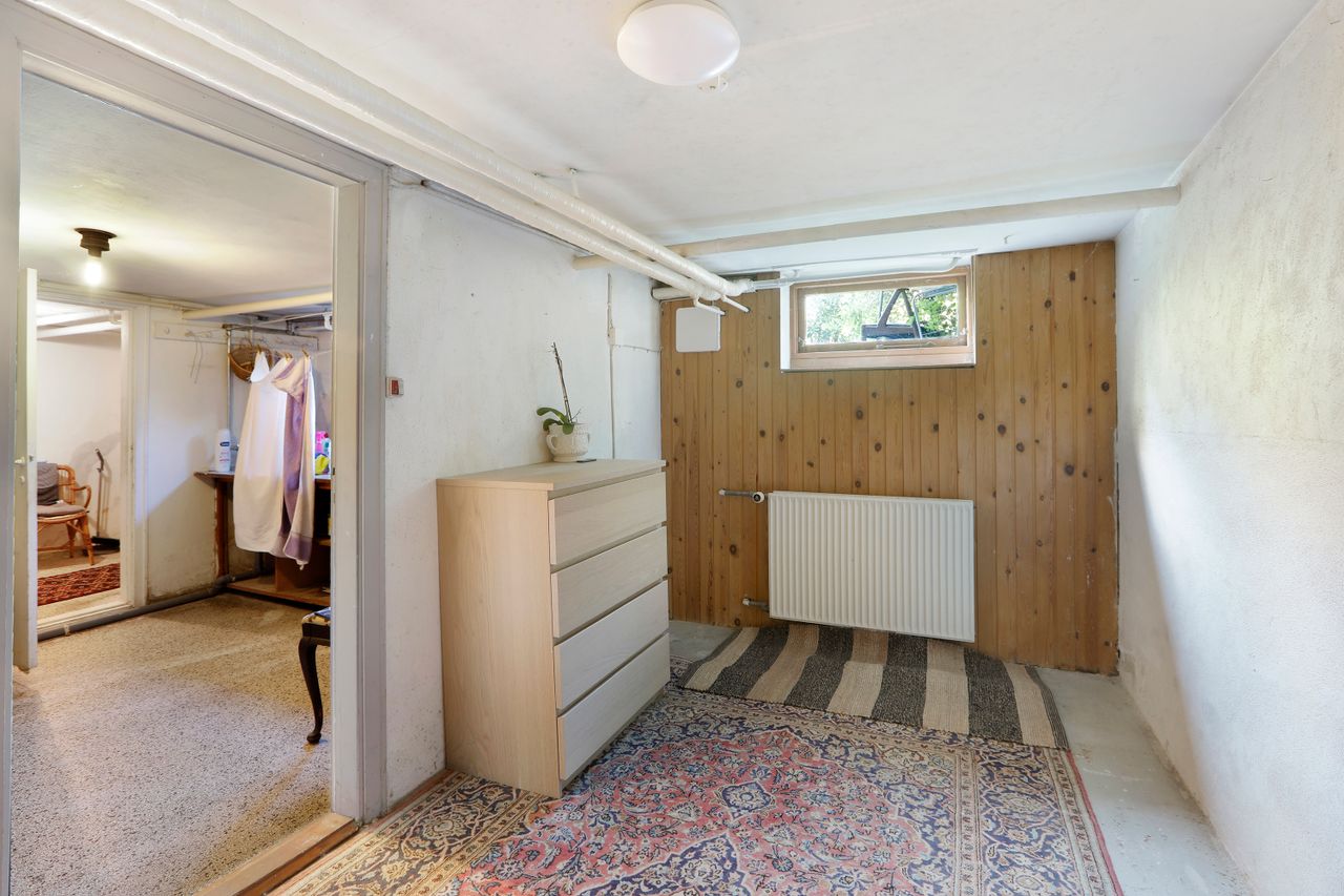 Boligen rummer også en anvendelig kælder med flere disponible rum samt et badeværelse. Dette ekstra areal kan let transformeres til hobbyrum, værksted eller gæsteafdeling alt efter familiens ønsker. For dem med visioner om endnu mere plads, tilbyder loftsrummet mulighed for udnyttelse til en ekstra etage – perfekt for den voksende familie.