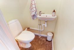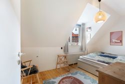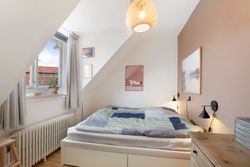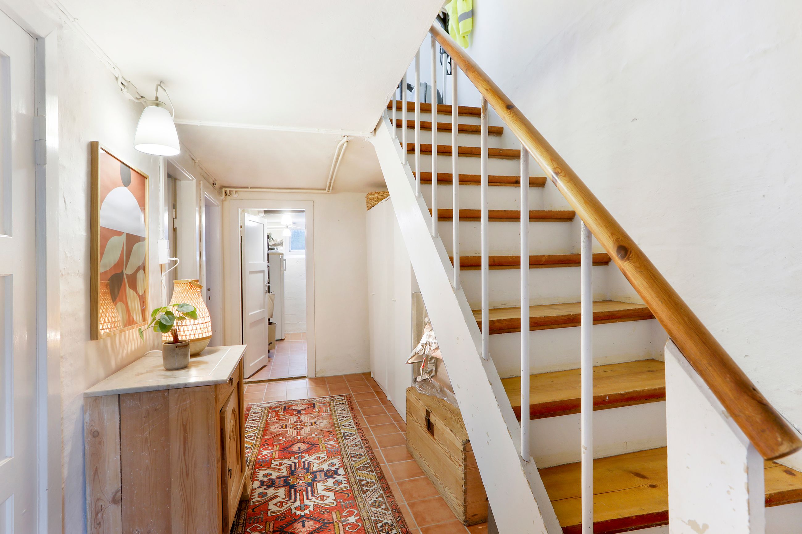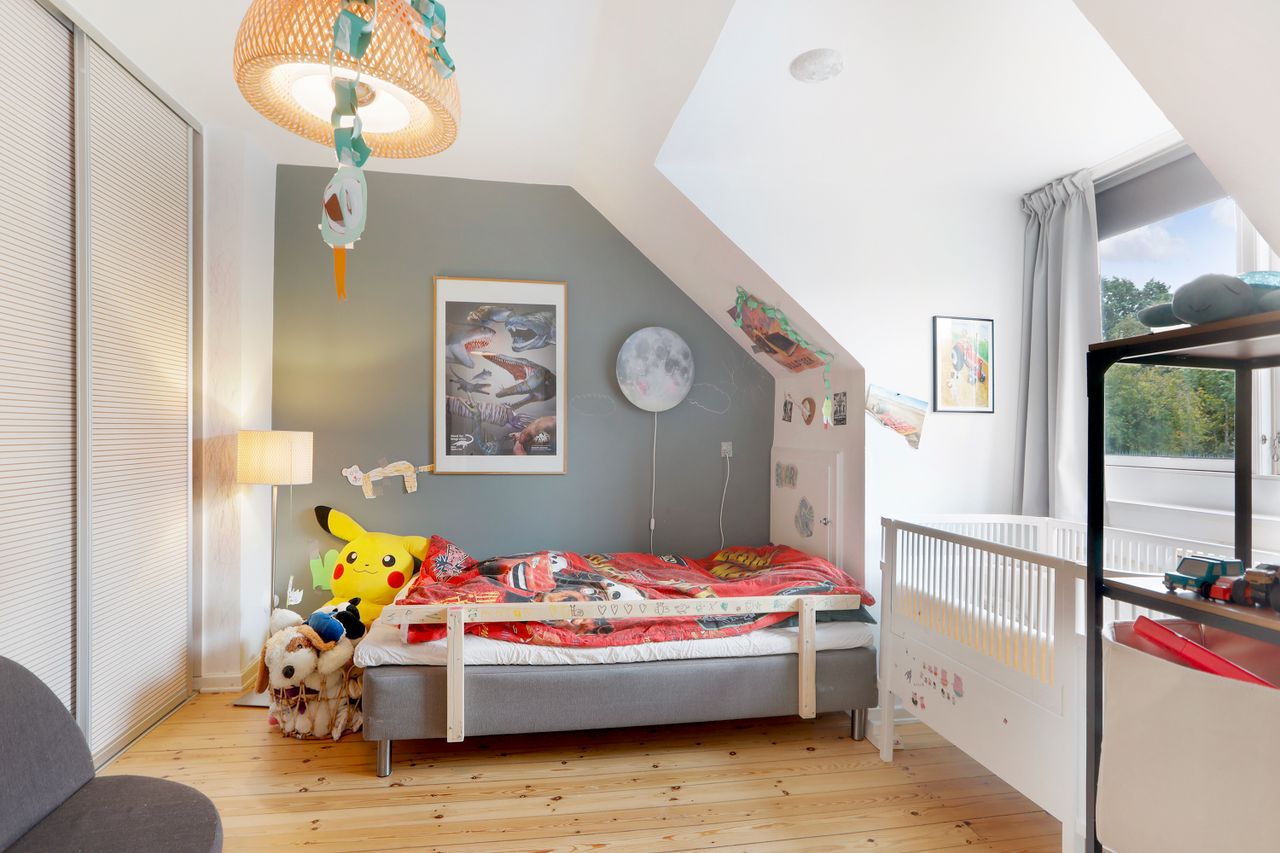 Opdateringer af boligen inkluderer køkkenet, som fremstår pænt med hvide elementer og bordplader i træ. Det lille gæstetoilet i stueplan fremstår ligeledes yderst fint, mens badeværelset på førstesalen er pænt og funktionelt. To gode værelser får I også, - og som en ekstra lille gave er loftsrummet udnyttet - med veluxvinuerne kan du nemt komme til at falde hen i dagdrømmem. Vaskerummet i kælderen følges op af et par gode disponible rum. Det største har endda egen udgang til haven.