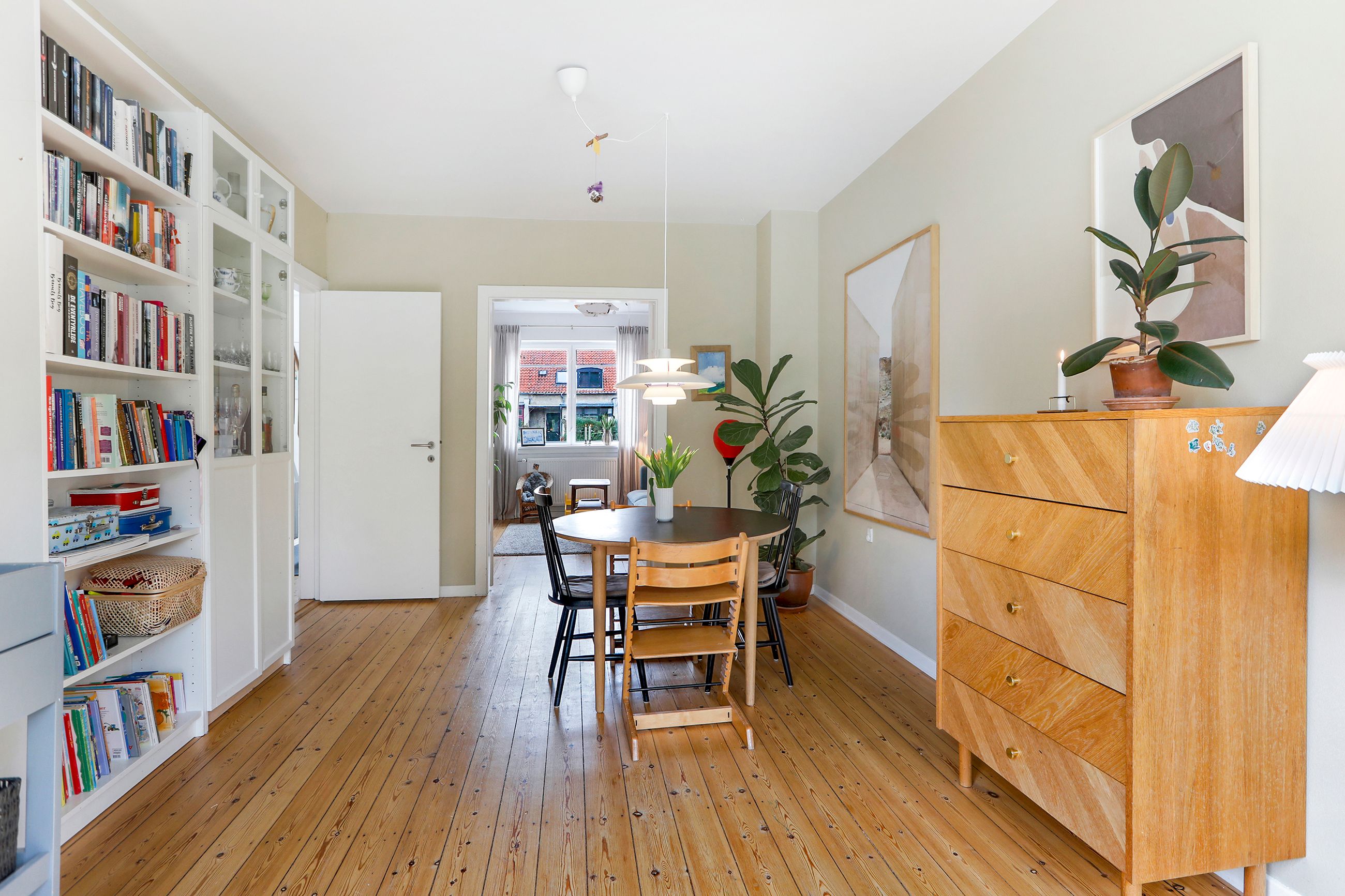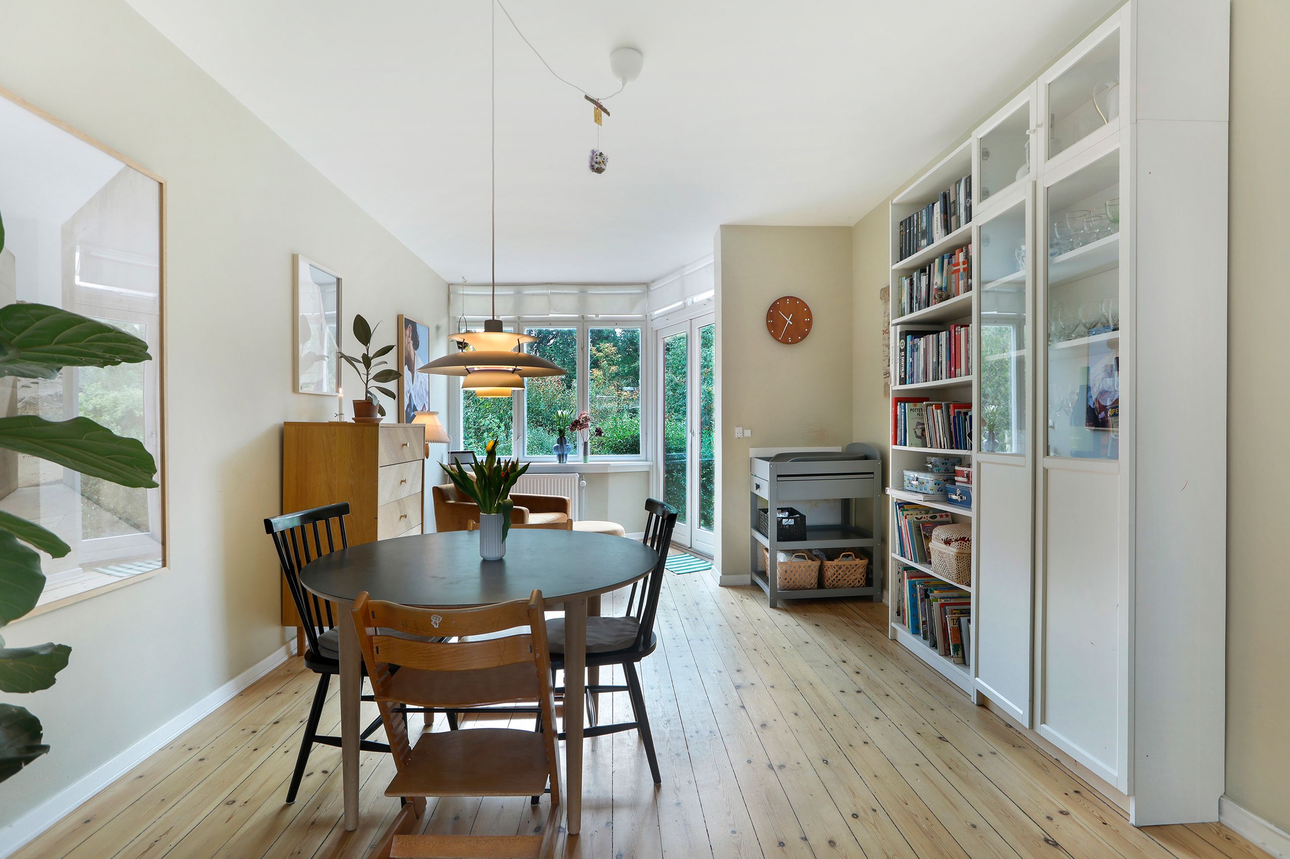 Nogle boliger formår at være lige dét mere interessante, og for dette indbydende rækkehus i Mosekvarteret er det især beliggenheden, der gør forskellen. Boligen ligger kun 500 meter fra butikslivet på Søborg Hovedgade, men det vægter mest, at den hyggelige baghave grænser direkte op til Utterslev Mose med et grønt kig til trækronerne til følge.
