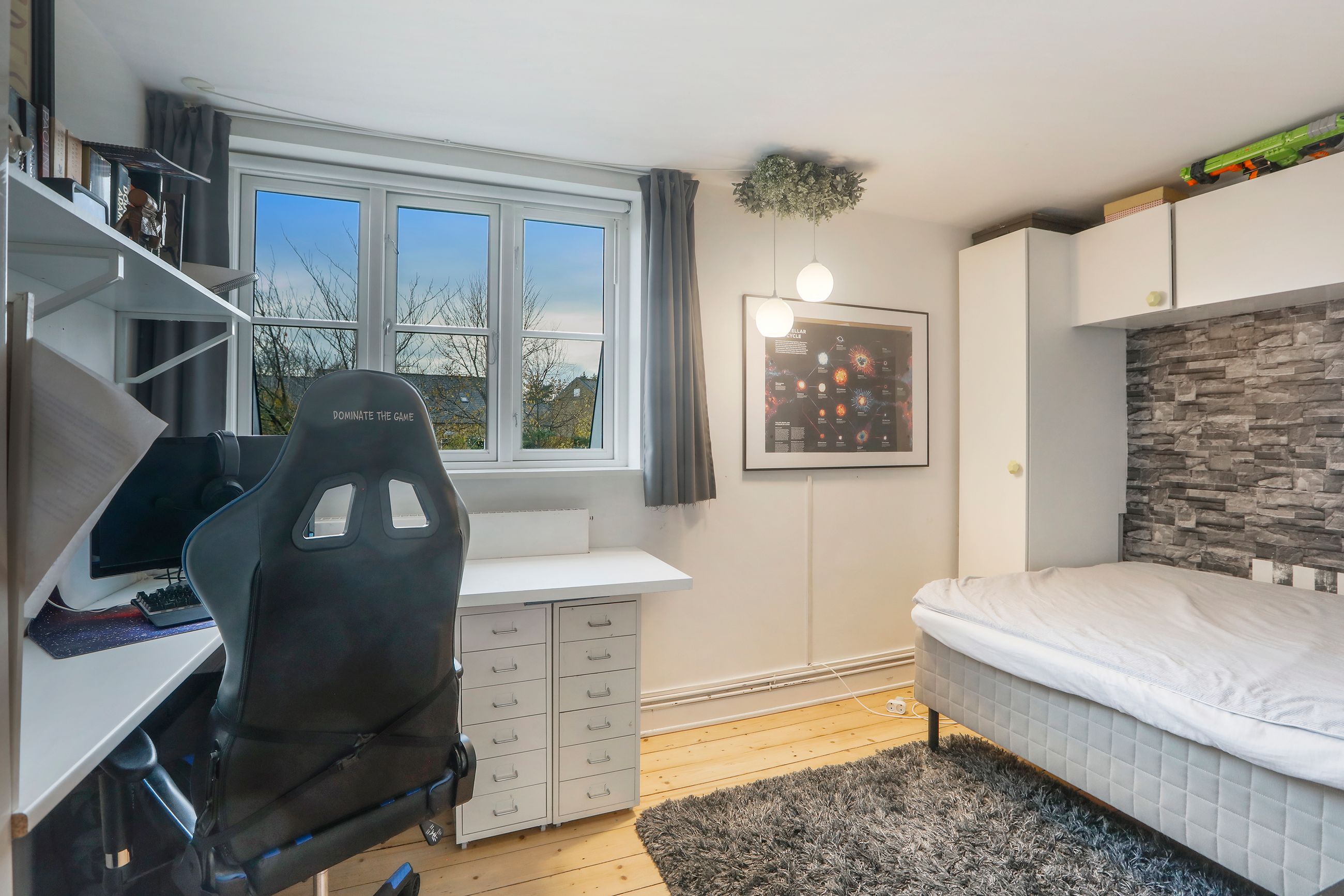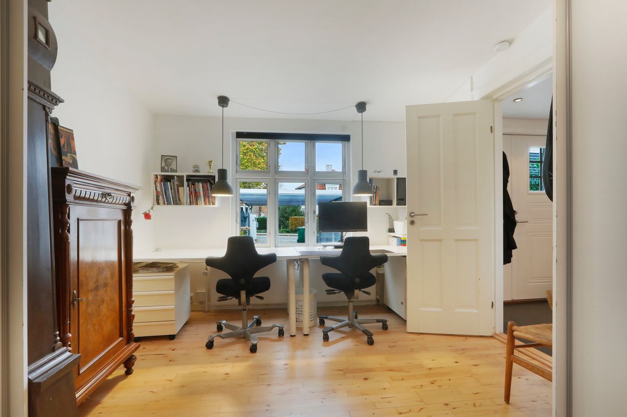På første sal finder du tre lyse soveværelser, hvor der er plads til både børnene eller kontorpladsen for dem, der arbejder hjemmefra. Villaen fremstår i god og indflytningsklar stand.