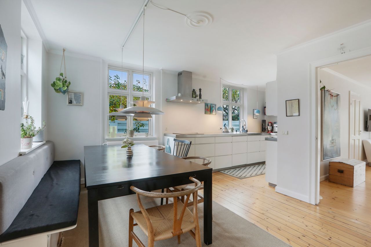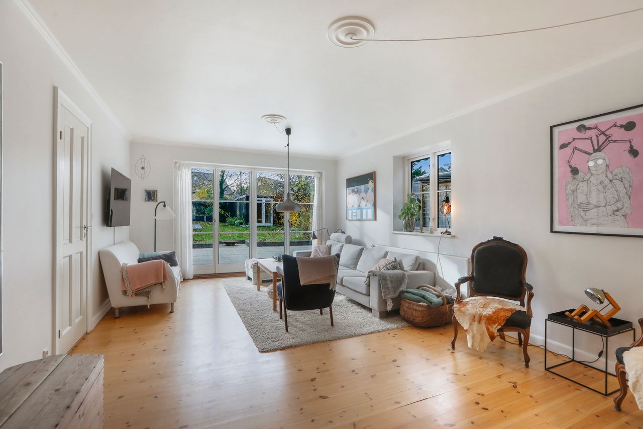 Boligens 150 m2, giver jer rigeligt plads til hele familien. Huset har en god planløsning, som indbyder til samvær og hygge i hjemmets hjerte - det åbne alrum og den lyse rummelige stue. Her kan begge døre foldes op, så terrassen og have bliver en integreret del af stuen.