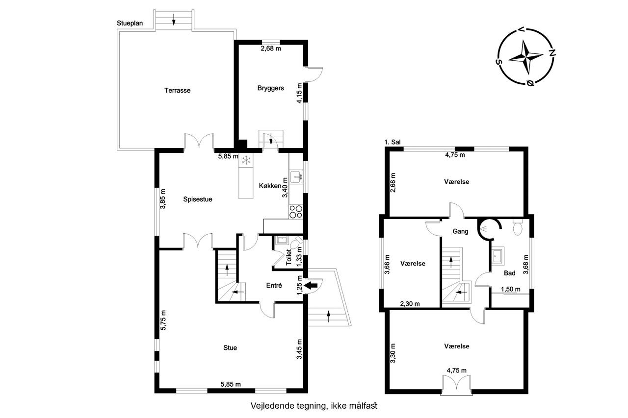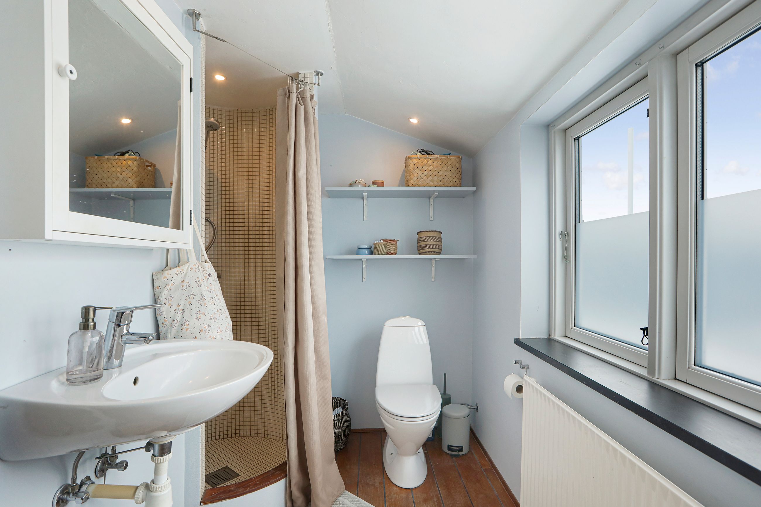 Stuen er rummelig og lysfyldt, hvilket giver rig mulighed for afslapning og hygge med familien. På førstesalen finder du tre gode soveværelser, der alle tilbyder masser af plads til både børn og voksne samt et badeværelse med separat brus – praktisk for den travle hverdag.