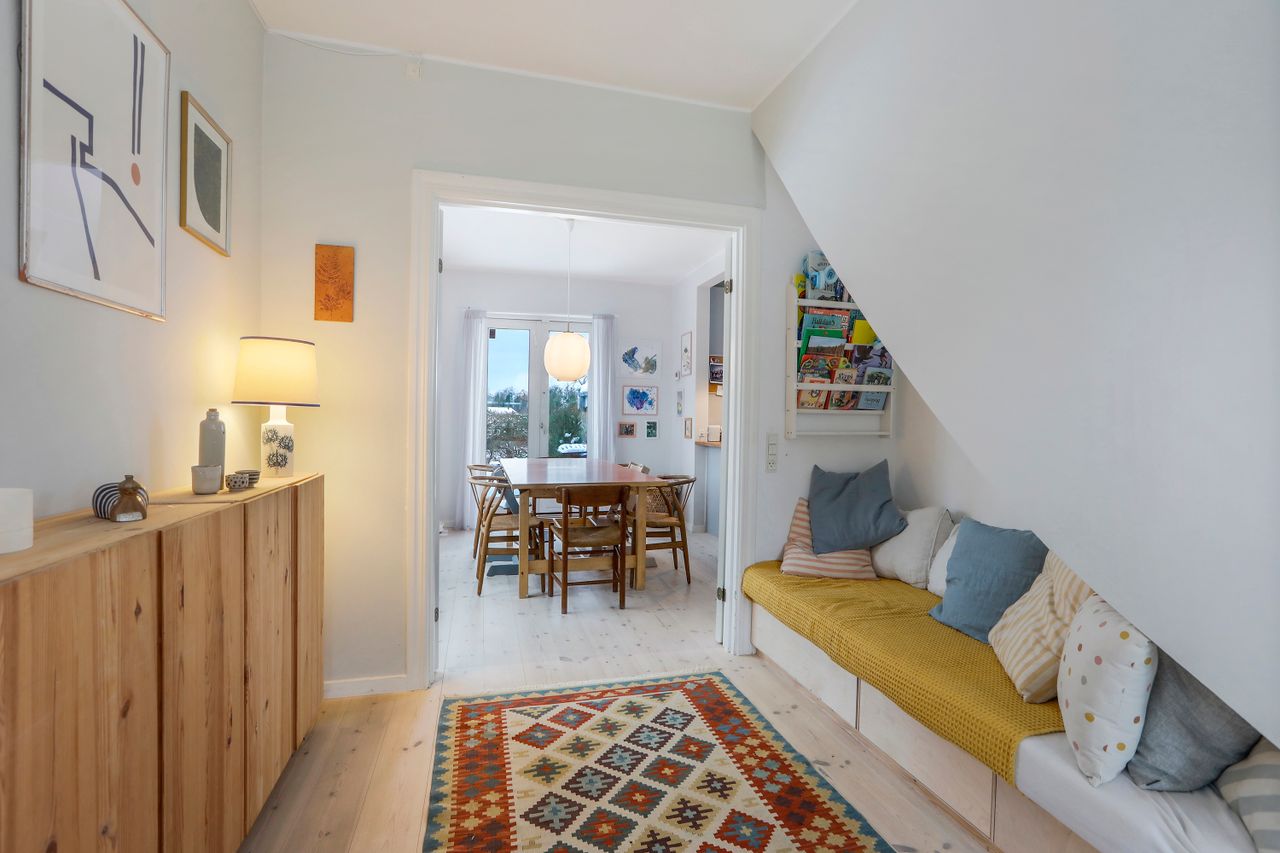 Velkommen til denne charmerende villa fra 1935, beliggende i det eftertragtede Haspegårdskvarter i Bagsværd. Med et boligareal på 131 kvadratmeter tilbyder denne ejendom en perfekt kombination af klassisk charme og moderne bekvemmeligheder. Fra det øjeblik du træder ind i den rummelige entré, vil du føle dig hjemme. Entréen byder på god plads til overtøj og giver adgang til et velholdt gæstetoilet, som er ideelt for besøgende.