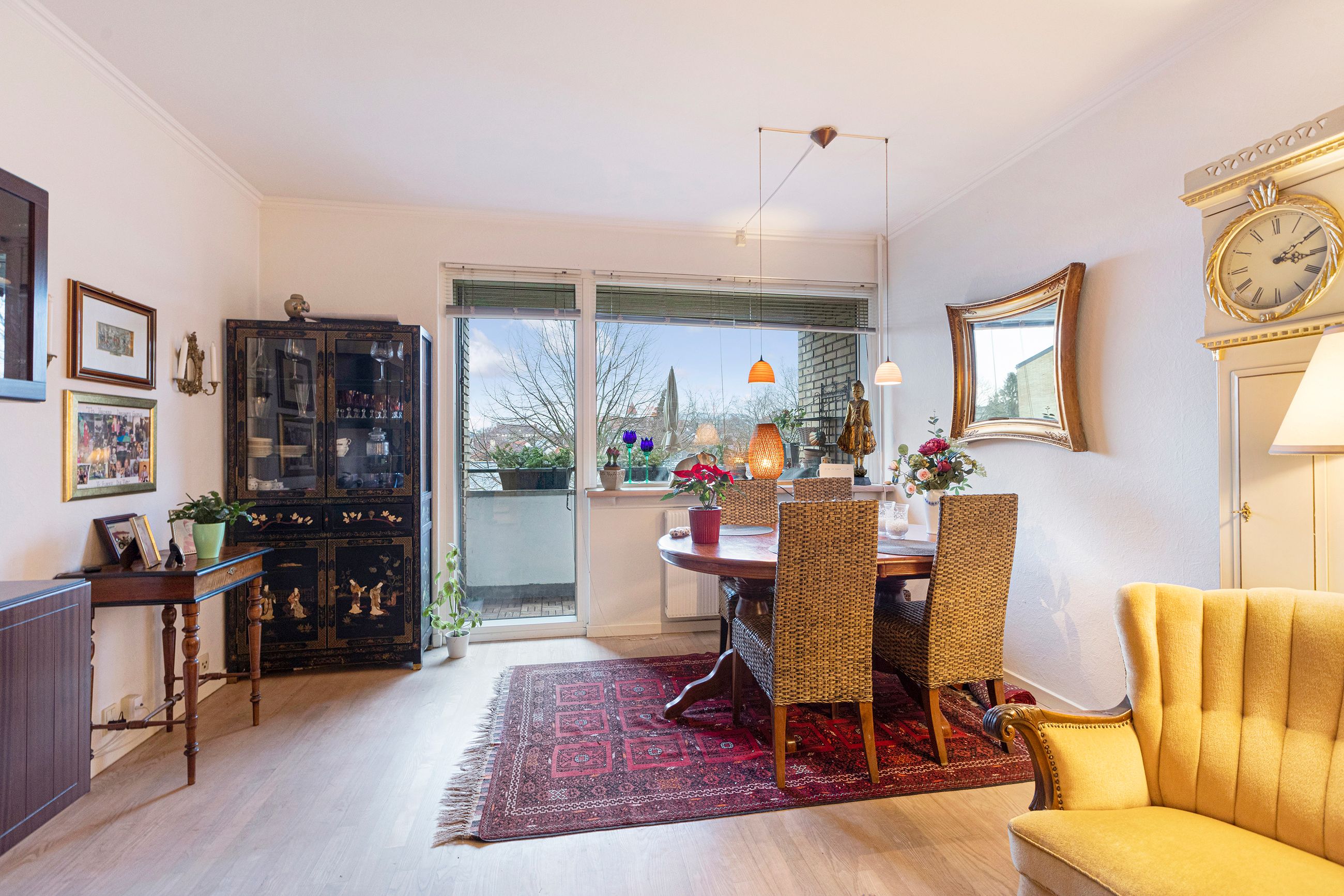 Velkommen til denne skønne ejerlejlighed, der byder på en unik kombination af klassisk charme og moderne komfort. Med et boligareal på 59 kvadratmeter, bygget i 1959, tilbyder denne lejlighed alt hvad du behøver for at skabe et hyggeligt hjem. Beliggende i en ejendom med en af de bedste placeringer, kan du nyde det frie kig og det fantastiske lysindfald fra din sydvestvendte altan. Herfra har du den smukkeste udsigt over området, som virkelig er noget særligt.