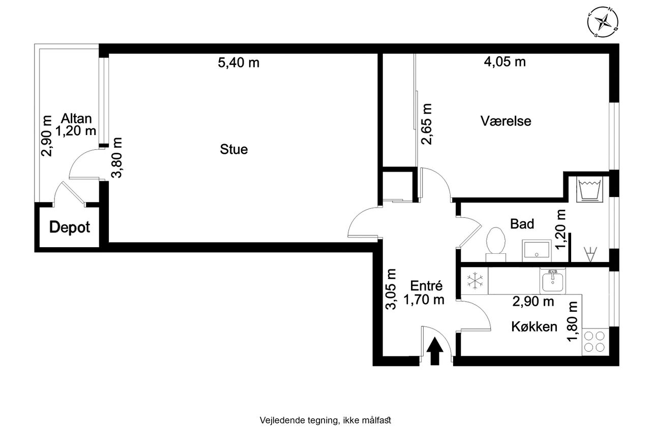 Lejligheden består af to værelser: en rummelig stue og et godt soveværelse, der begge emmer af atmosfære. Det fine køkken er funktionelt indrettet med plads til madlavningens glæder, mens badeværelset fremstår lyst og indbydende med sine lyse elementer. Selvom lejligheden ikke er nyrenoveret, er den meget velholdt og giver dig mulighed for at sætte dit eget præg uden større besvær.