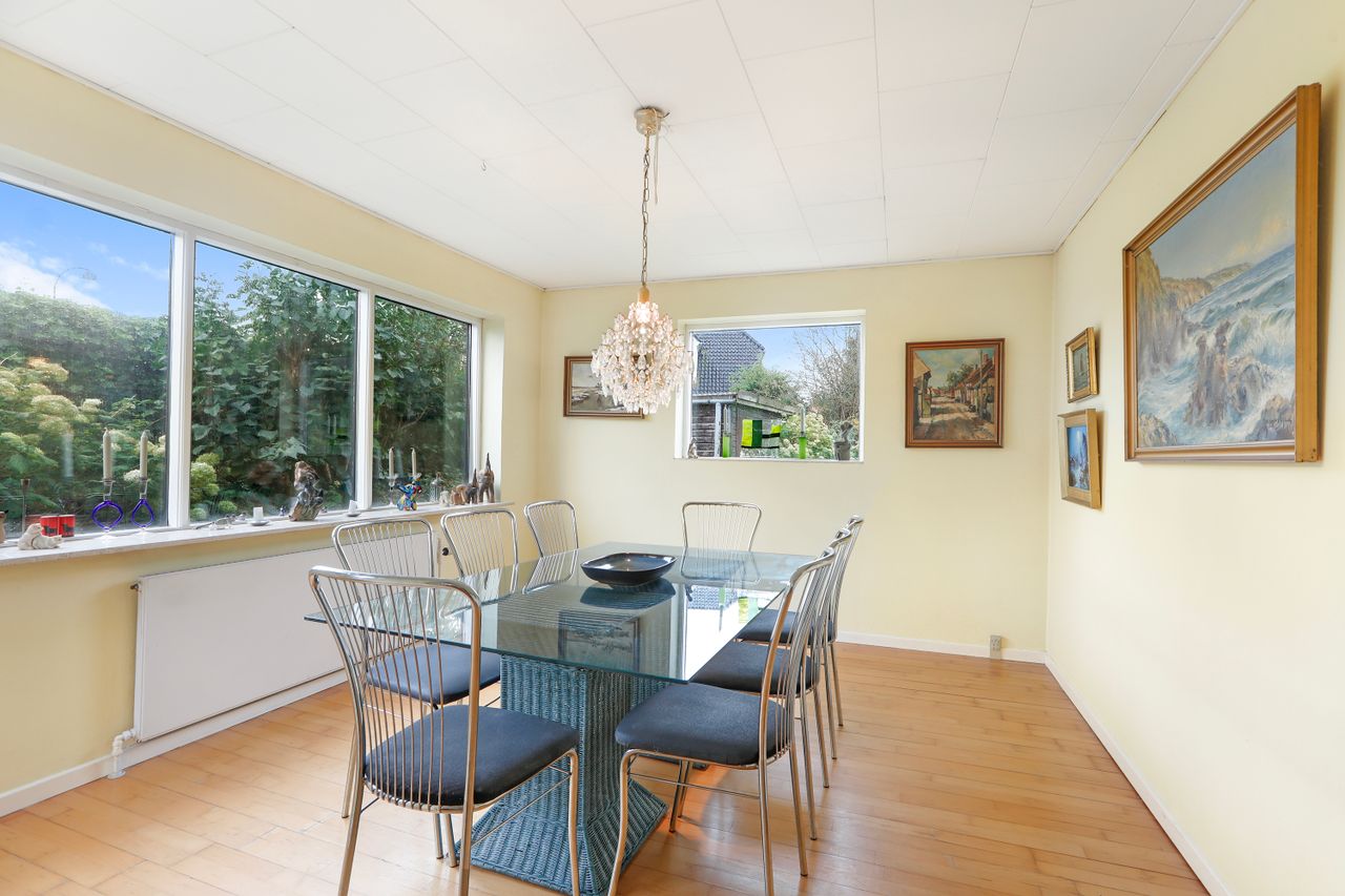 Når du træder ind i huset, bliver du mødt af en rummelig entré, der fører videre til de forskellige opholdsrum. Huset byder på tre soveværelser med mulighed for et fjerde værelse, hvis behovet skulle opstå. Dette gør villaen ideel for både den voksende familie eller dem, der har brug for ekstra plads til kontor eller hobbyrum.