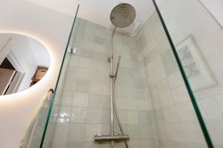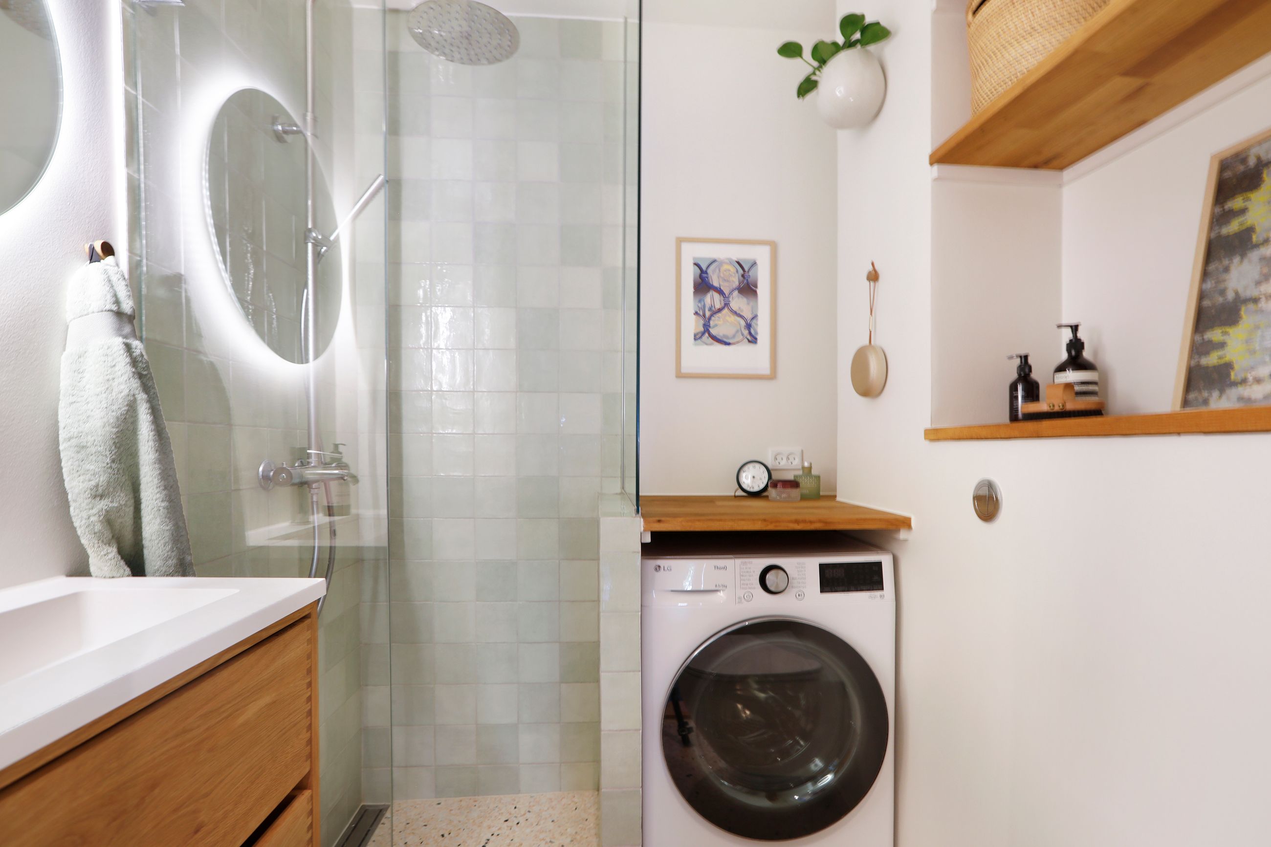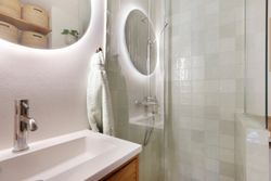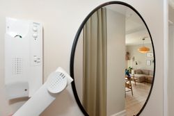 De to værelser giver fleksibilitet; det ene fungerer perfekt som soveværelse, mens det andet kan bruges som kontor eller ekstra stue/soveværelse afhængigt af dine behov. Badeværelset er gennemført moderne med varme toner, der skaber en afslappende oase midt i byens puls. Her finder du også praktiske løsninger som vaskesøjle og separat bruseniche.