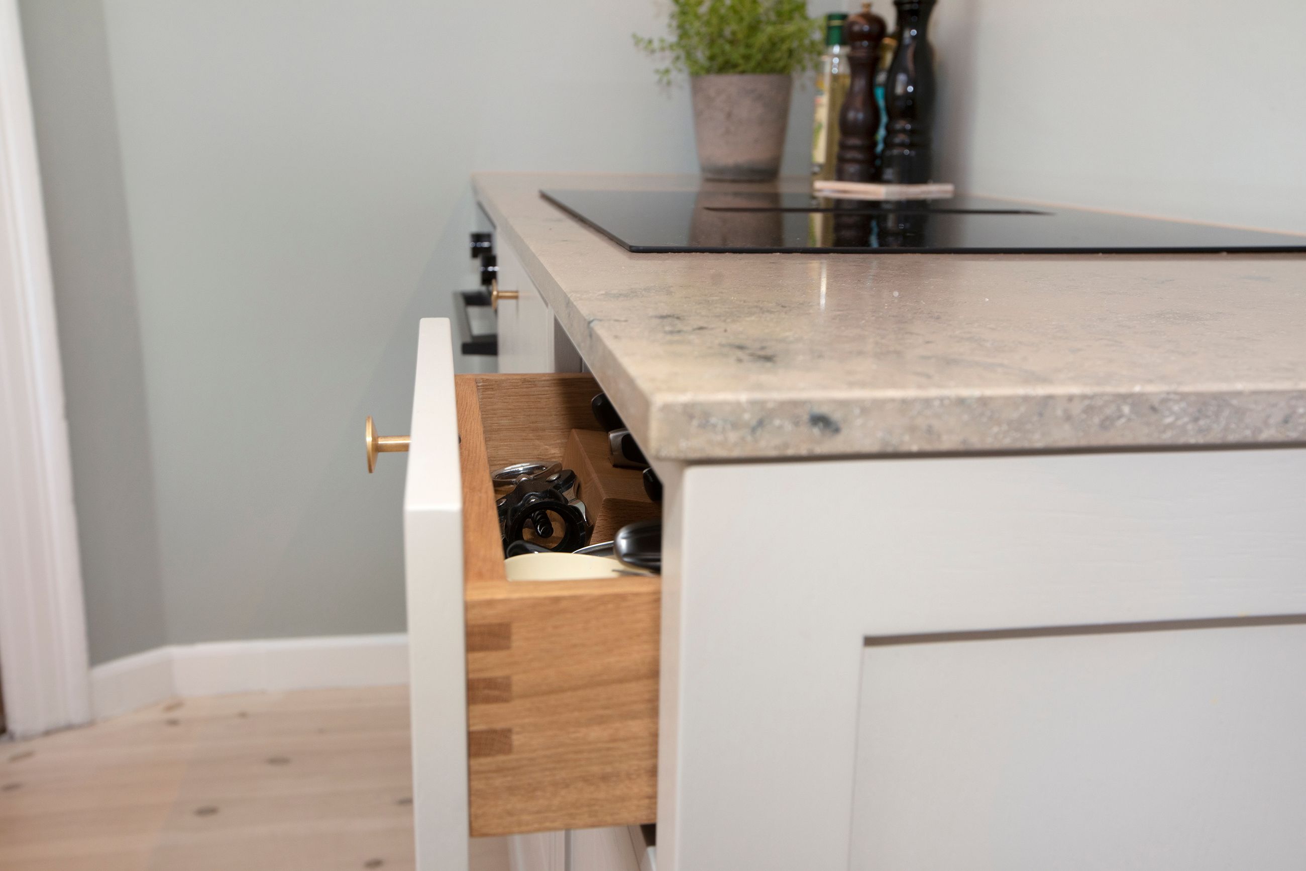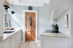 Lejlighedens hjerte er det store køkkenalrum, der inviterer til hyggelige middage med venner og familie. Herfra har du direkte adgang til en dejlig altan mod gården, hvor solen kan nydes dagen lang. Køkkenet er designet med både funktionalitet og æstetik for øje, hvilket gør det til et ideelt sted at udfolde sine kulinariske evner eller blot nyde morgenkaffen i fredelige omgivelser.