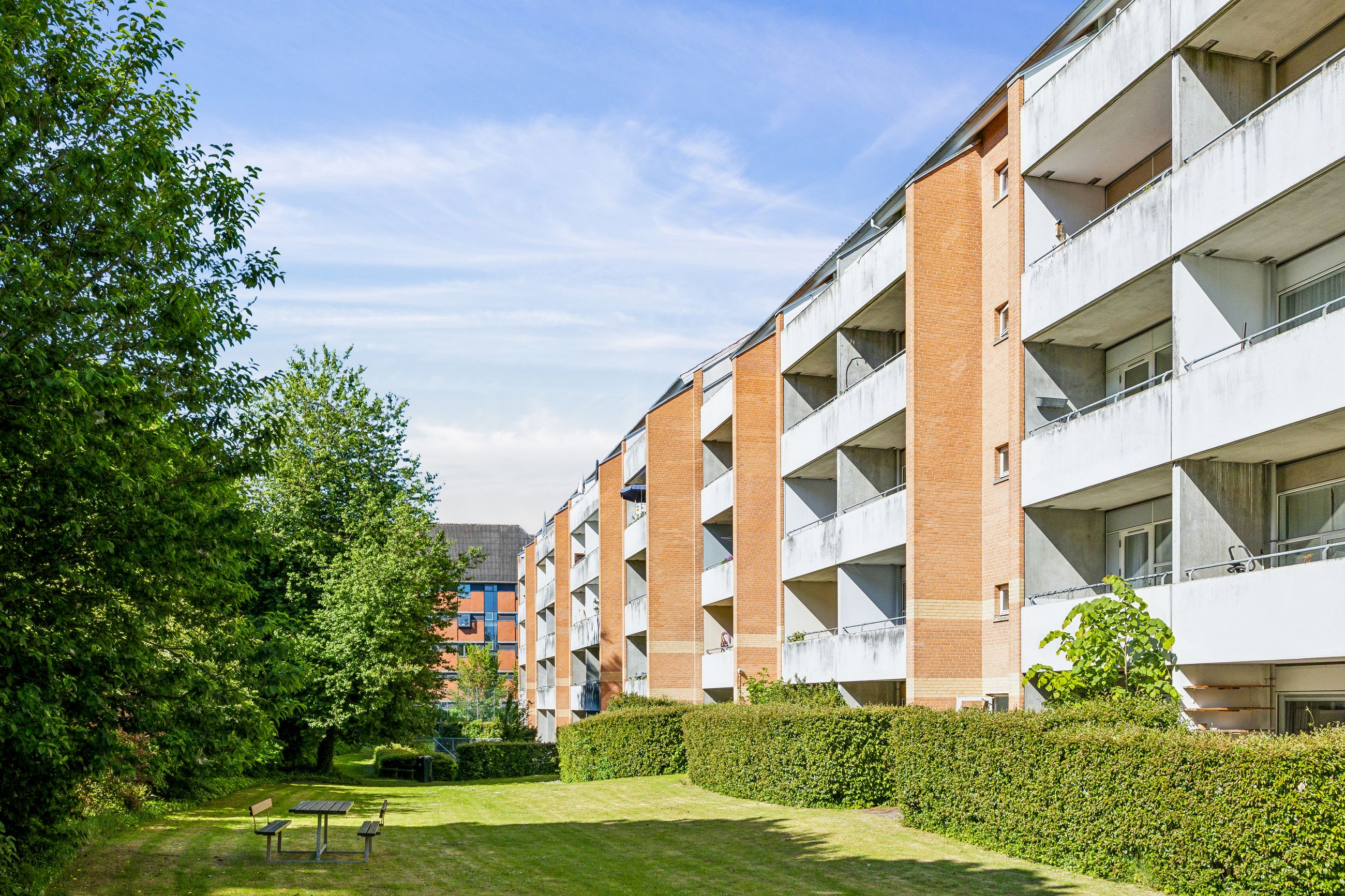 Lejligheden placerer sig godt i stueplan, og ejendommen indrammes af perfekte parkeringsmuligheder til den ene side samt åbne fællesarealer til den anden.
