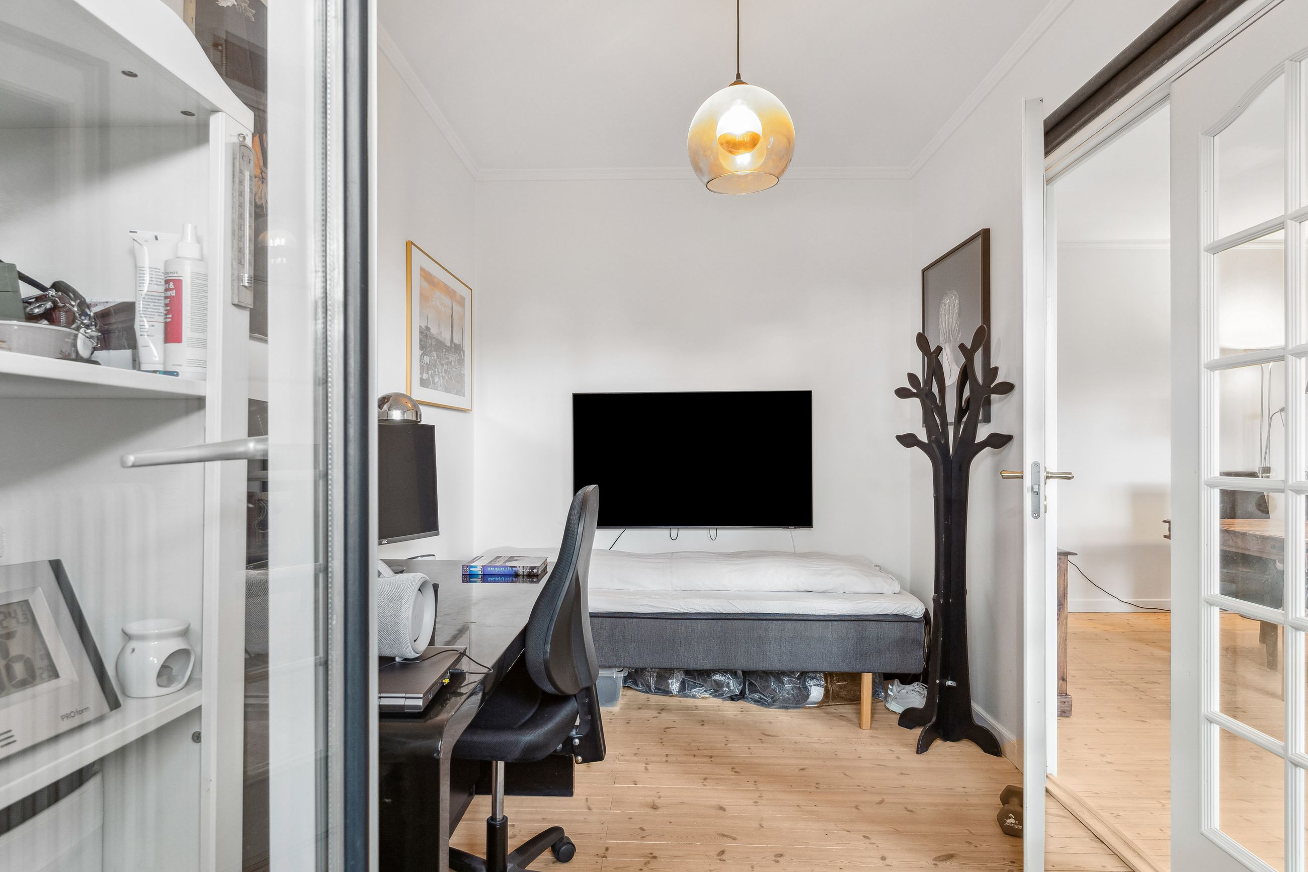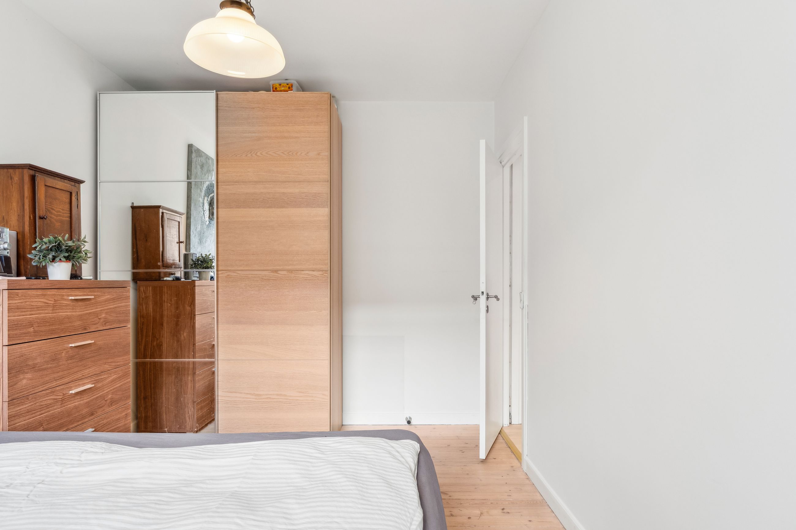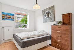 Rigtig godt soveværelse, med plads til dobbelseng og skabe. Stuen er velindrettet med stor spise plads og sofa område. I forbindelse med stue, er der gennem to fløjdører endnu et værelse, som har udgang til lejlighedens altan.