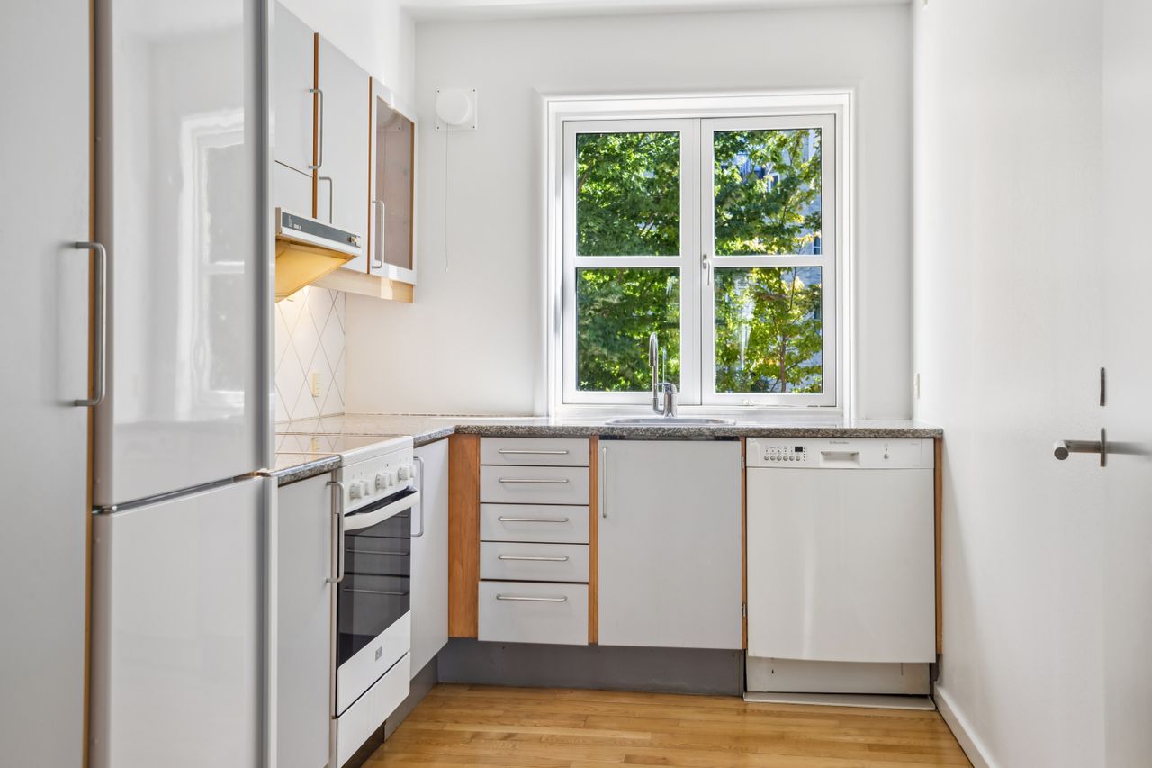 Velkommen til mulighedernes lejlighed på Frederiksberg med elevator og udgang til have I udkanten af Fuglebakkekvarteret finder vi ejendommen på Borups Allé 126C. Til ejendommen er der en række moderne faciliteter. Der er elevator som også går hele vejen ned i p kælder. Der medfølger 1 gratis udendørs parkeringplads samt mulighed for parkeringsplads i opvarmet p-kælder (med forbehold for plads). Cykelkælder i p-kælderen. Brugsret til opvarmet kælderrum. Derudover er der en hyggelig lille gårdhave som man kan nyde at være i. Alt dette findes på Borups Allé. På den anden side af alléen ligger Fuglebakken St. med S-tog mod resten af Frederiksberg, København og Hellerup, mens børnene har kort afstand til den velrenommerede Skolen på Duevej, der ligger 500 meter fra hoveddøren. Der er masser af indkøbsmuligheder med bl.a. Meny med fiskehandler og bager samt alt fra Irma til Lidl, og når det kommer til restauranter og take-away er der også en hel del i området. Man er samtidig tæt på Grøndalsparken, hvis man nyder en løbetur, og hvis man har en hverdag i København, kan man cykle til Indre By på et kvarter. *Mulighed for at flytte køkkenet ind i Stuen og dermed få et ekstra værelse. Ring på 35422200 og få en fremvisning! Går du selv med salgstanker, så ring på 2237 0990 og få en gratis og uforpligtende salgsvurdering af din ejendom.