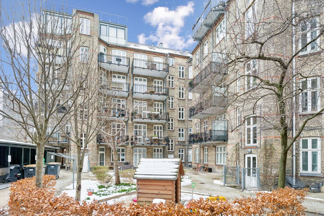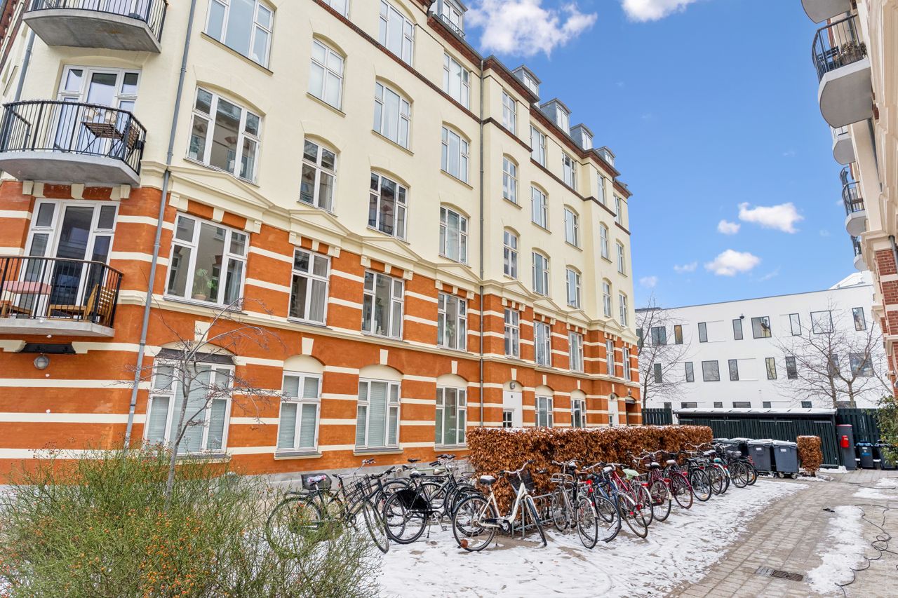 Ejendommen er fra 1901, og har et grønt område og cykelparkering i gården. Der er derudover brugsret til et kælderrum.