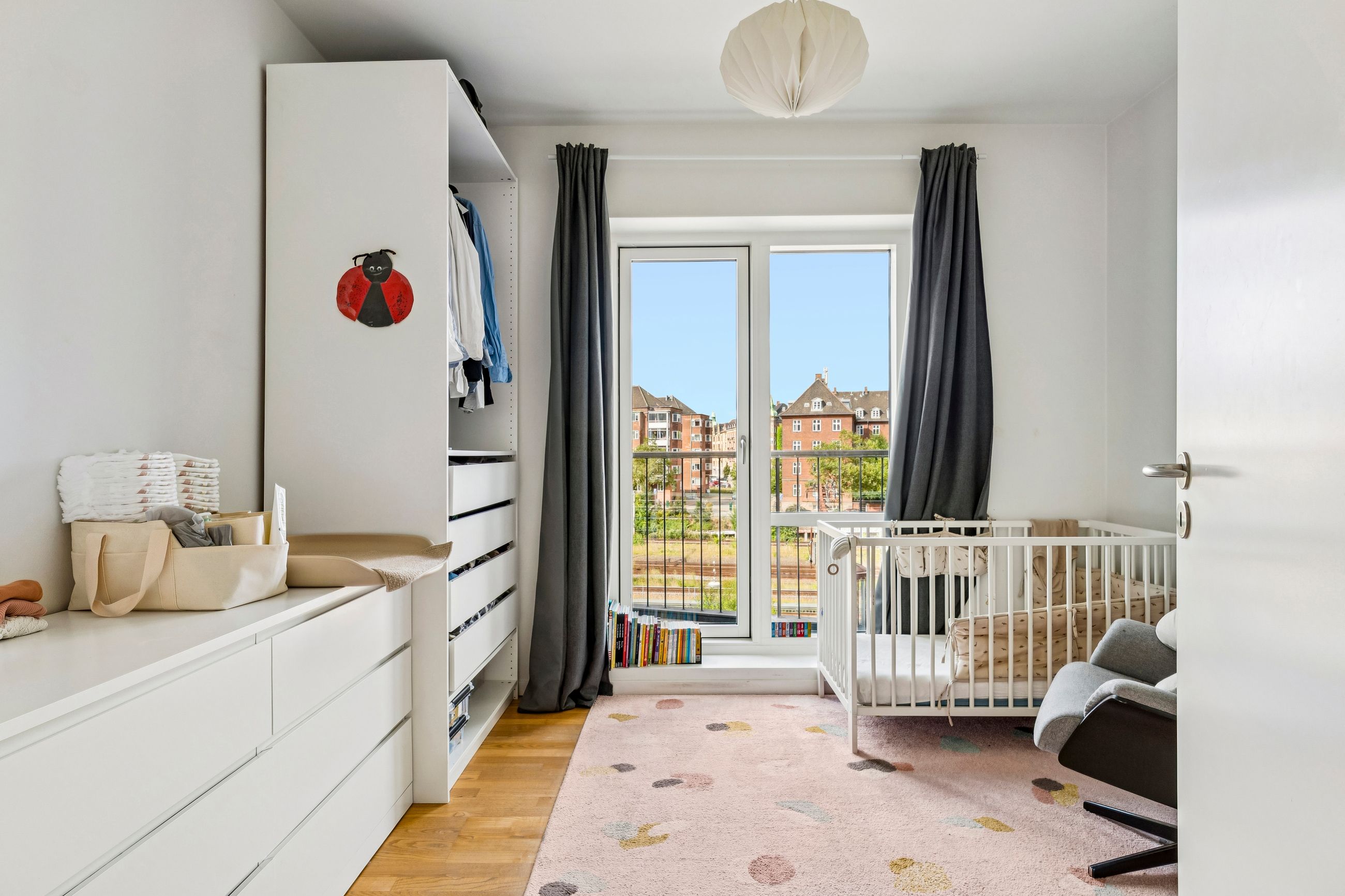 Denne skønne lejlighed byder på meget mere end blot lys og plads – her får du en bolig, der forener funktionalitet, charme og livskvalitet. Allerede fra entréen træder du ind i en indbydende atmosfære, hvor boligen åbner sig op med to rummelige og smukt proportionerede værelser. Begge værelser giver fantastiske muligheder for indretning, uanset om du drømmer om soveværelse, børneværelse, kontor eller gæsteværelse.