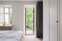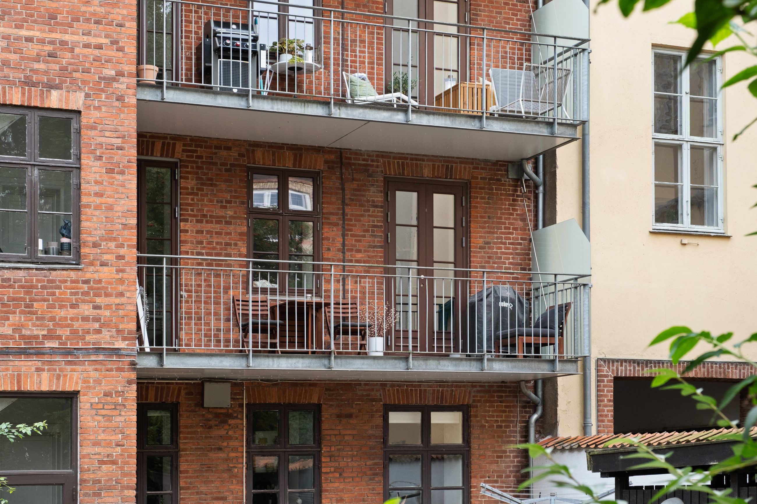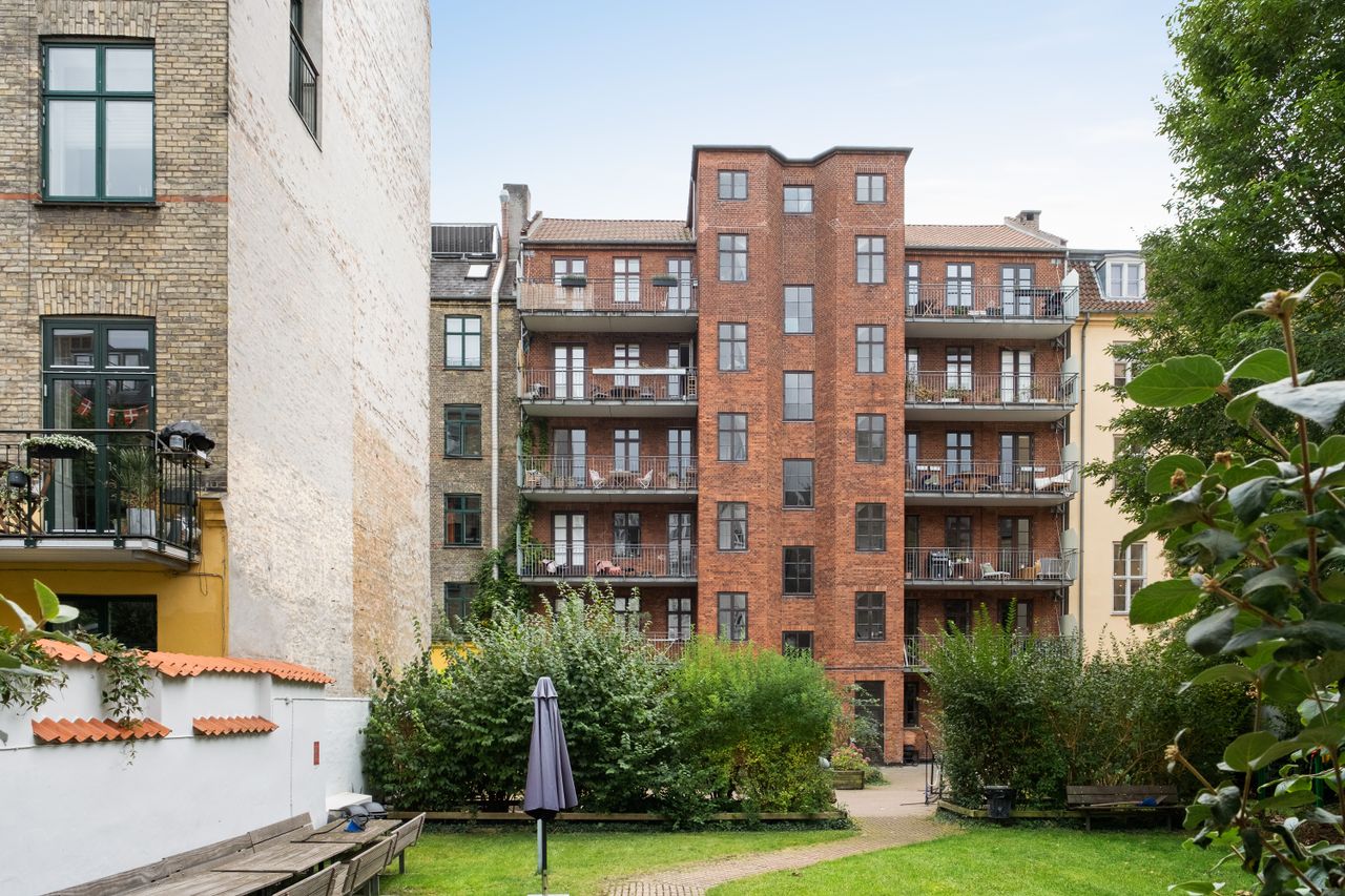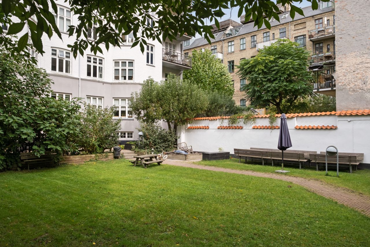 Ejendommen er i klassisk stil, og med en grøn gård. Her er plads til at nyde dagen udendørs eller have et område hvor børnene kan lege.