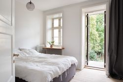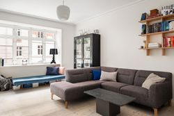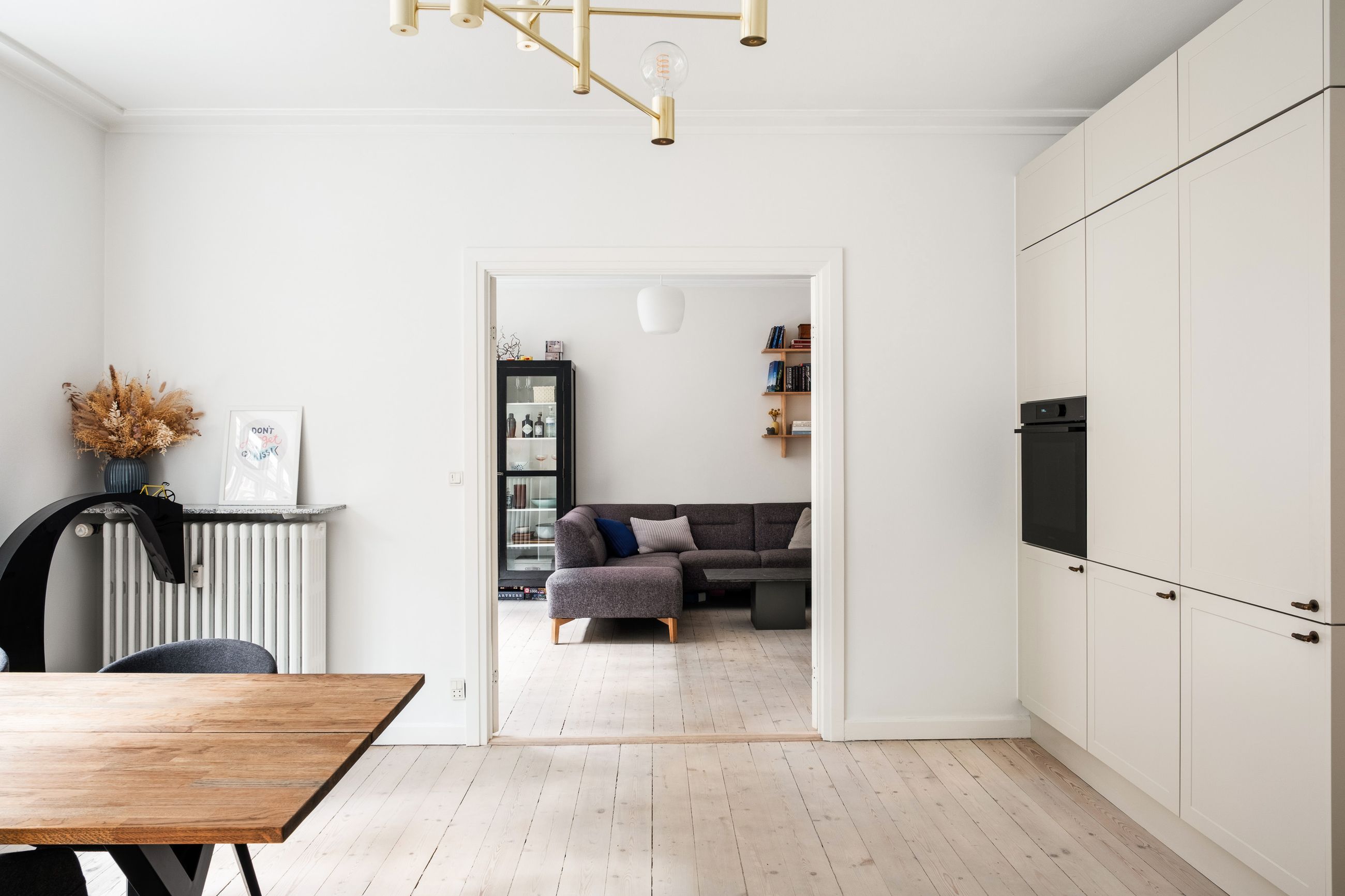 Velkommen indenfor i denne charmerende og indbydende lejlighed i et af Østerbros mest attraktive kvarterer. Når du træder ind i lejligheden, bydes du velkommen af det lyse og indbydende køkken-alrum. Det moderne Svane-køkken er stilrent i sit udtryk og danner den perfekte ramme om både madlavning og samvær, med god plads til spisebord eller en hyggelig spiseplads, hvor familie og venner kan samles. Videre gennem de franske døre ligger stuen med brede vinduespartier og god plads til et indbydende sofaområde. Lejligheden har to soveværelser, begge med god opbevaringsplads og udgang til en rummelig altan mod den grønne gård.