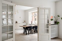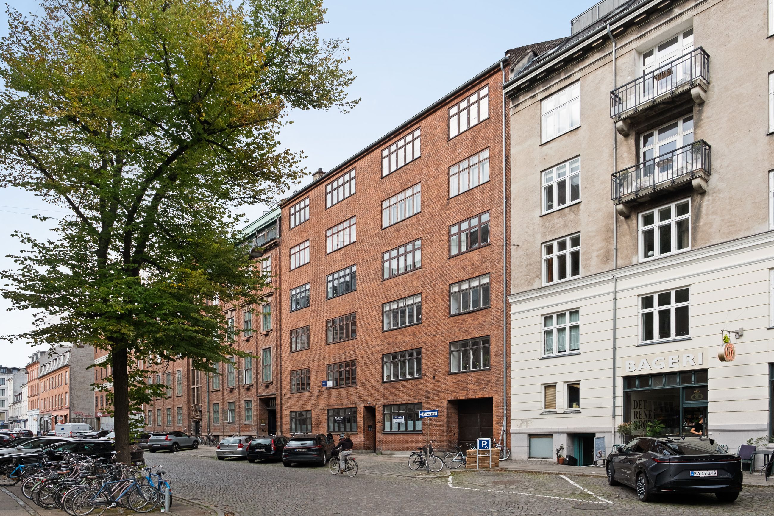Lejligheden ligger på Rosenvængets Allé – en af Østerbros mest eftertragtede adresser. Området byder på klassiske ejendomme, grønne alléer og en rolig atmosfære tæt på både søerne, Fælledparken og Østerbrogades hyggelige caféer og butikker. Samtidig er der kort afstand til Svanemøllen Station og flere busforbindelser, som giver nem adgang til resten af byen.