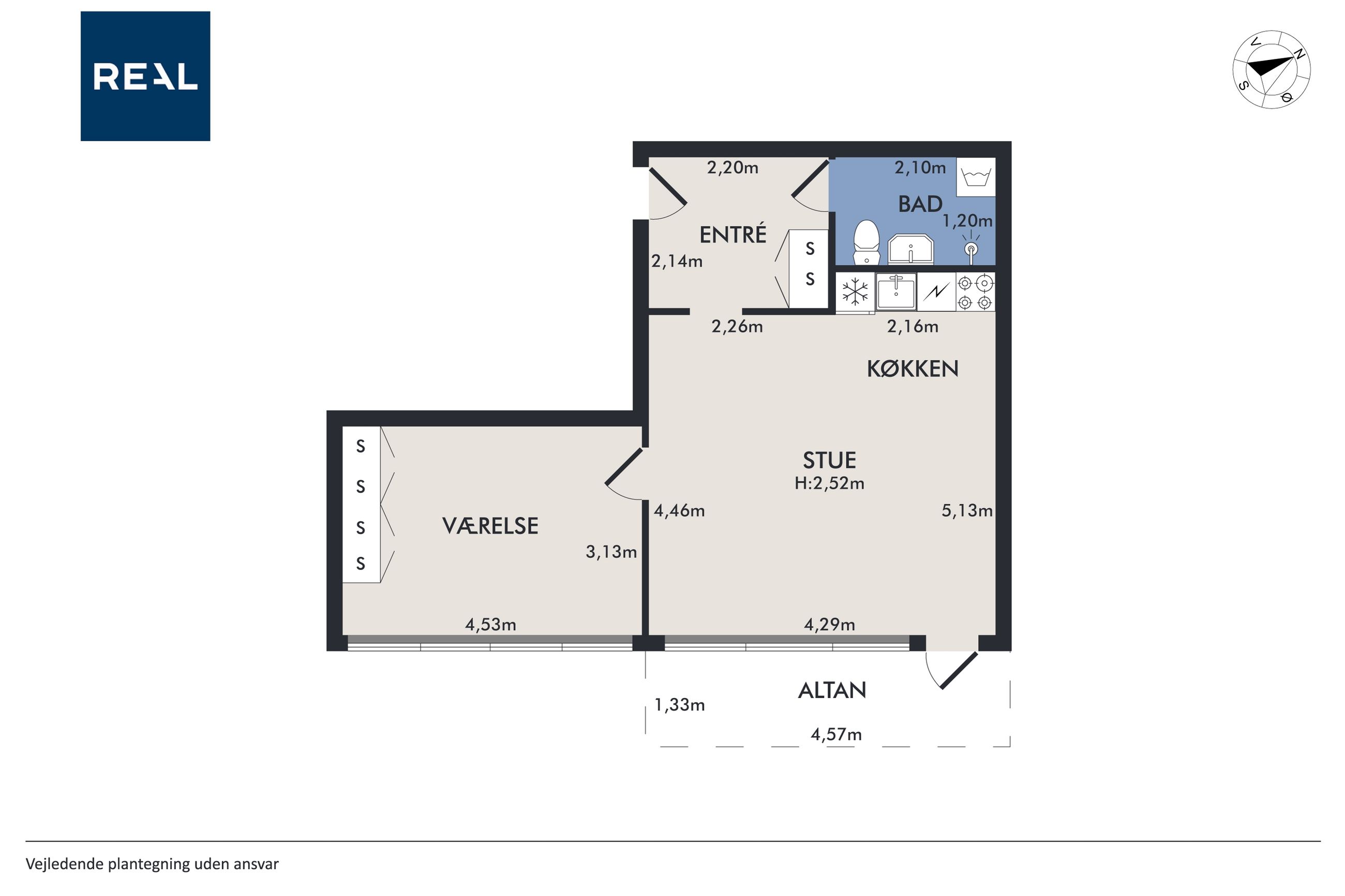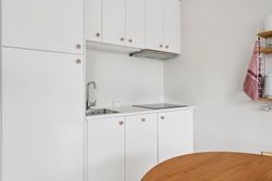 Køkkenet er holdt i klassiske, hvide nuancer og byder på god skabsplads samt opvaskemaskine. I alrummet er der plads til både spisebord og en hyggelig sofaafdeling, hvor man kan nyde udsigten eller slappe af med en god film.