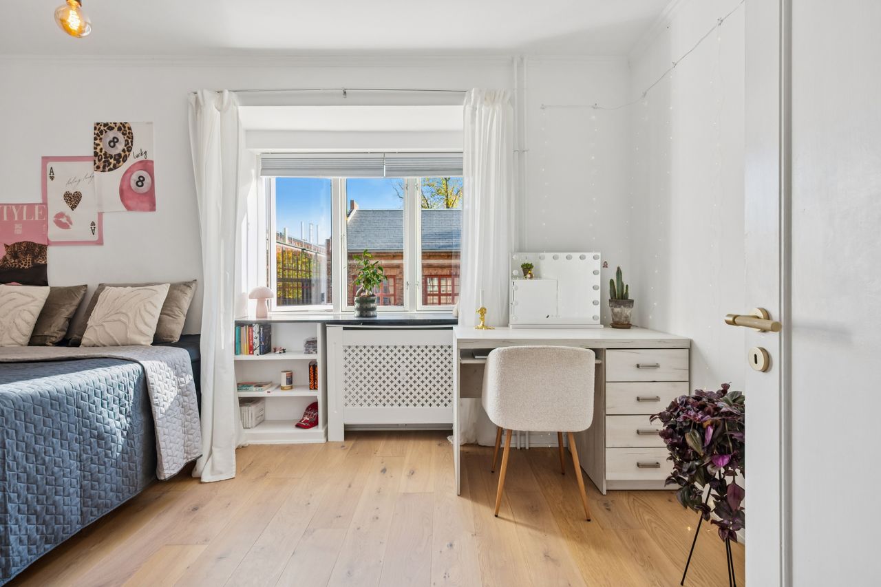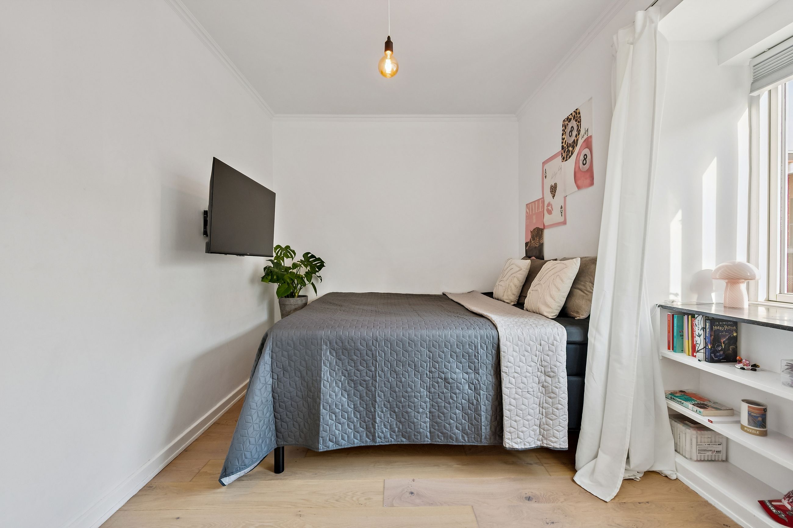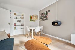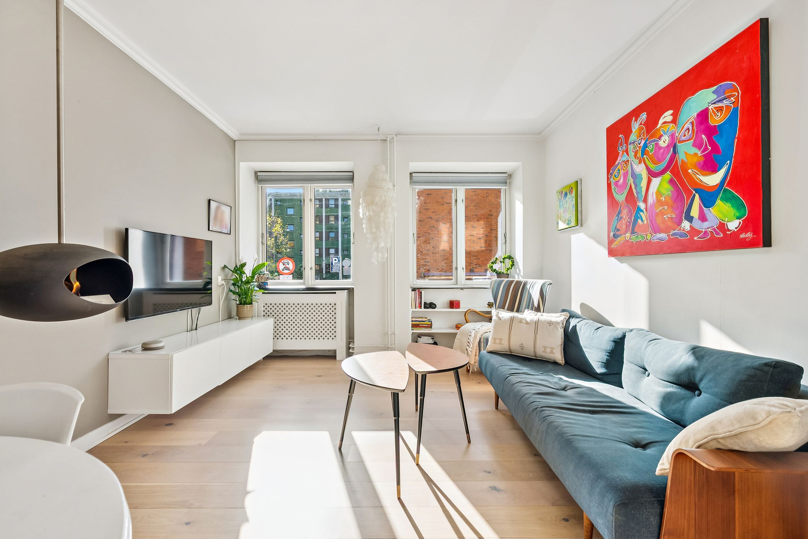 Velkommen indenfor i denne skønne lejlighed midt på Østerbro. Her får du muligheden for at flytte direkte ind i en smukt indrettet bolig med en gennemtænkt planløsning og masser af atmosfære. Det naturlige samlingspunkt er den store, åbne stue – et rum, hvor der virkelig er kælet for detaljerne. Prikken over i’et er den elegante biopejs, som skaber hygge og stil på én gang. De originale ølandske vindueskarme i sten tilføjer karakter og danner et perfekt samspil mellem moderne komfort og klassisk charme. Fra stuen er der adgang til boligens ene værelse, som med fordel kan anvendes som kontor, gæsteværelse eller børneværelse. Det andet soveværelse er rummeligt med god skabsplads – ideelt som master bedroom med plads til både tøj og personlig indretning.