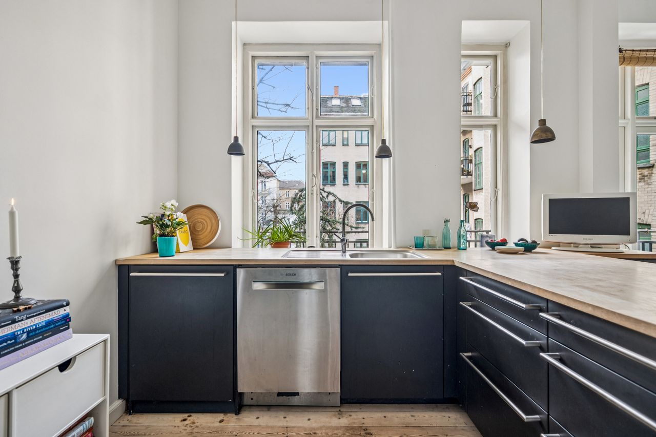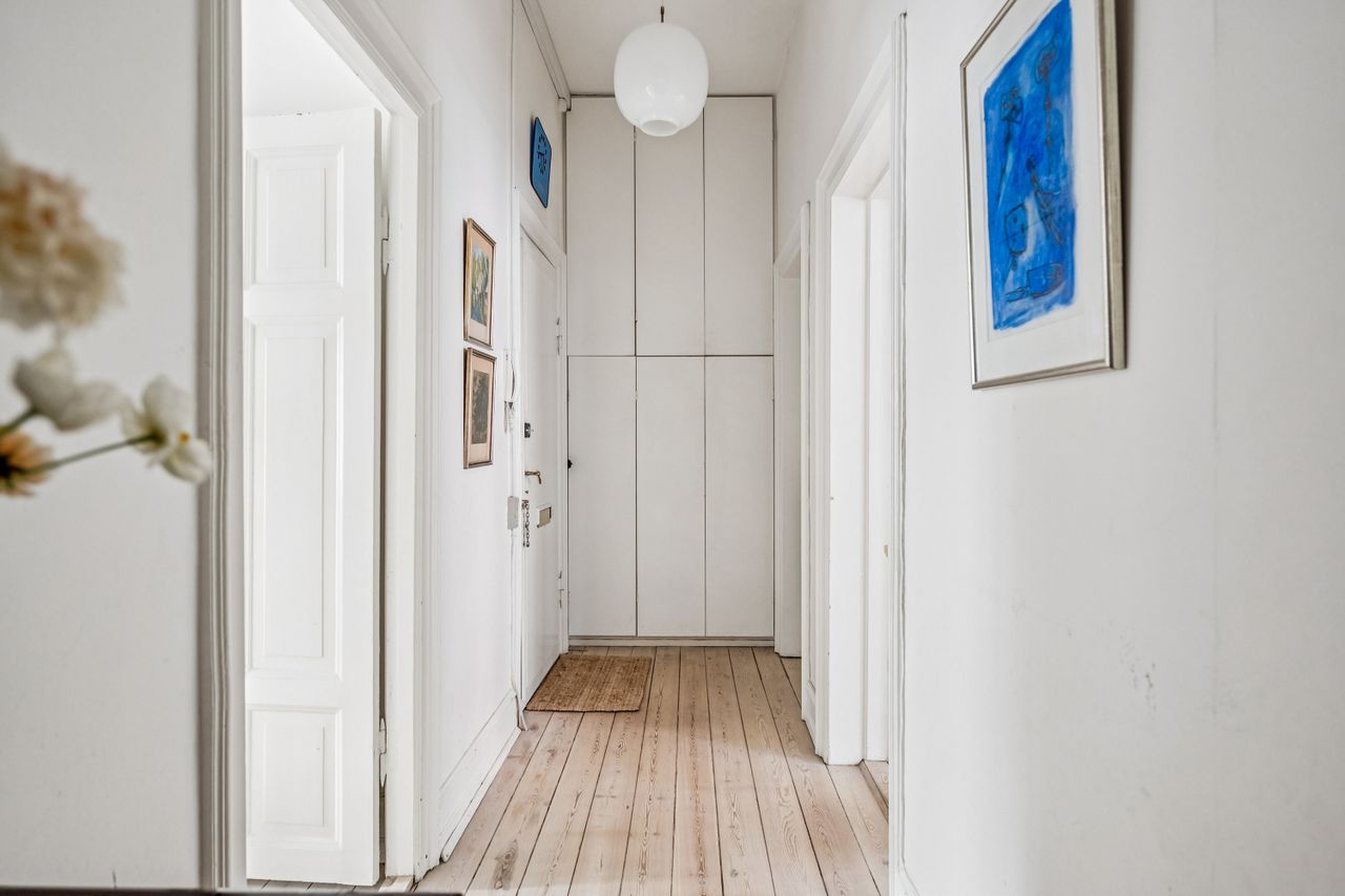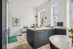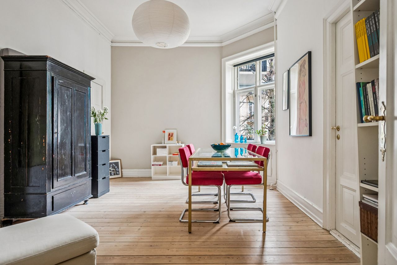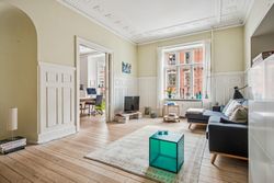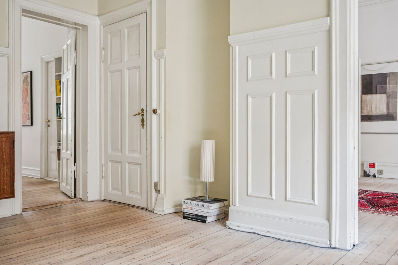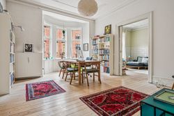Lejligheden emmer af sjæl, historie og varme. De originale, velbevarede detaljer står som et vidnesbyrd om ejendommens klassiske elegance; Den smukke stuk, de høje paneler, de imponerende loftshøjder og de lange, gennemgående plankegulve, der binder rummene harmonisk sammen. Det er netop disse elementer, der gør lejligheden til en unik boligperle, hvor man straks føler sig hjemme - med kommende fransk altan mod gården, betalt af sælger