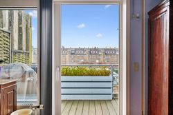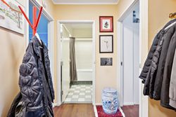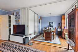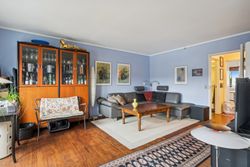 Fra den indbydende entré træder vi ind i den store, lyse stue. De brede vinduespartier giver et smukt lysindfald og fremhæver de ikoniske mahogni-gulve, som tilfører rummet elegance. Stuen kan nemt indrettes som både opholds- og spisestue. Herfra fortsætter vi til det nuværende spise- og kontorområde, adskilt af en foldevæg, som let kan udskiftes med en fast væg. Fra begge rum er der adgang til den sydvestvendte altan, hvor du kan nyde solen det meste af dagen. Udsigten over Wessels Have og fællespoolen skaber en skøn atmosfære, og altanen er opgraderet med hårdttræsgulv. Soveværelset byder på god ro og fine opbevaringsmuligheder i de indbyggede skabe. Køkkenet er praktisk indrettet med god skabs- og bordplads samt et hyggeligt spiseområde. Badeværelset står i original, velholdt stand og har et charmerende badekar. En lejlighed med masser af lys, charme og fleksible indretningsmuligheder.