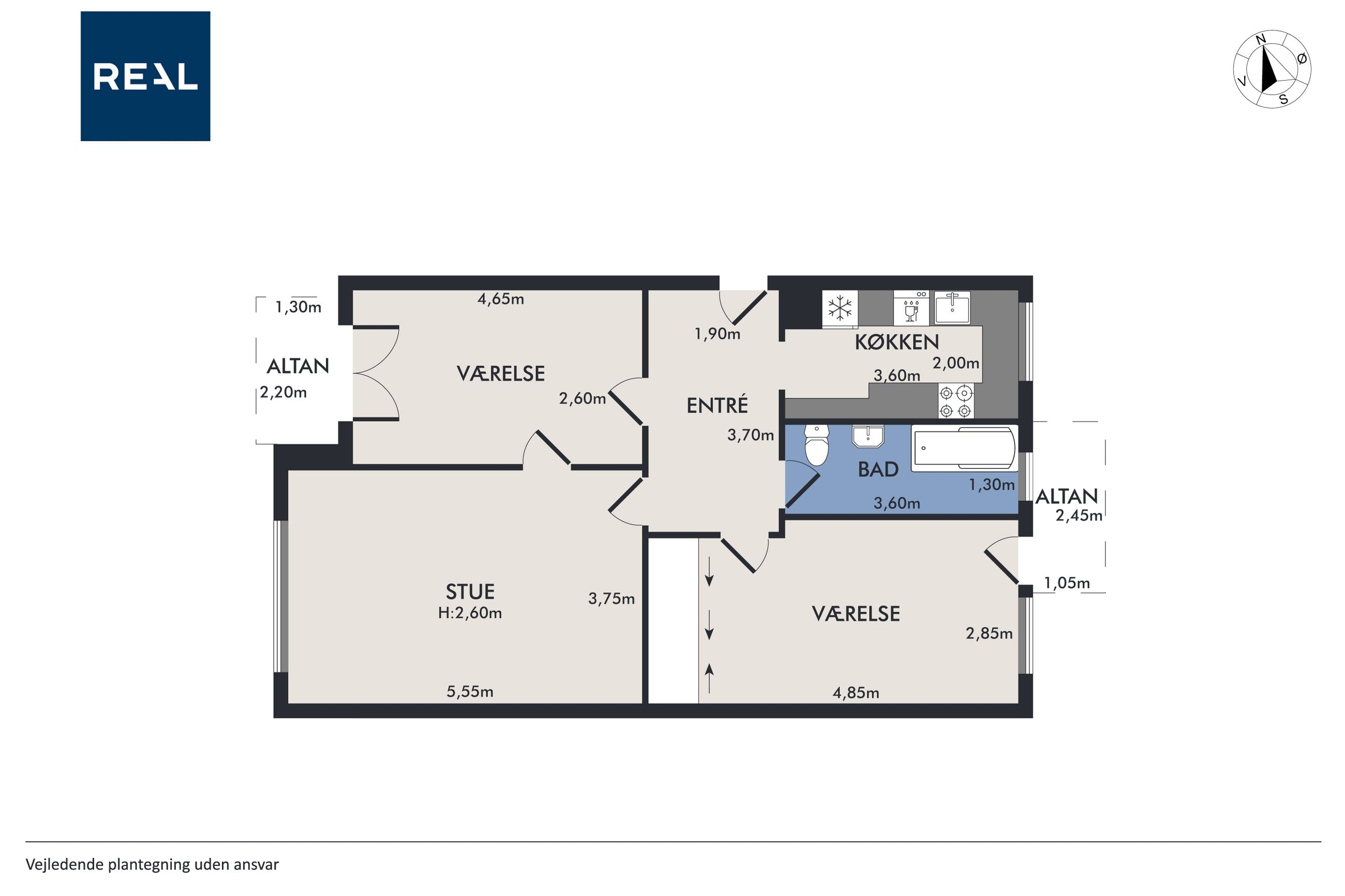 Det sidste værelse kan bruges som soveværelse, kontor eller det walk-in-closet, mange drømmer om – alt efter behov.