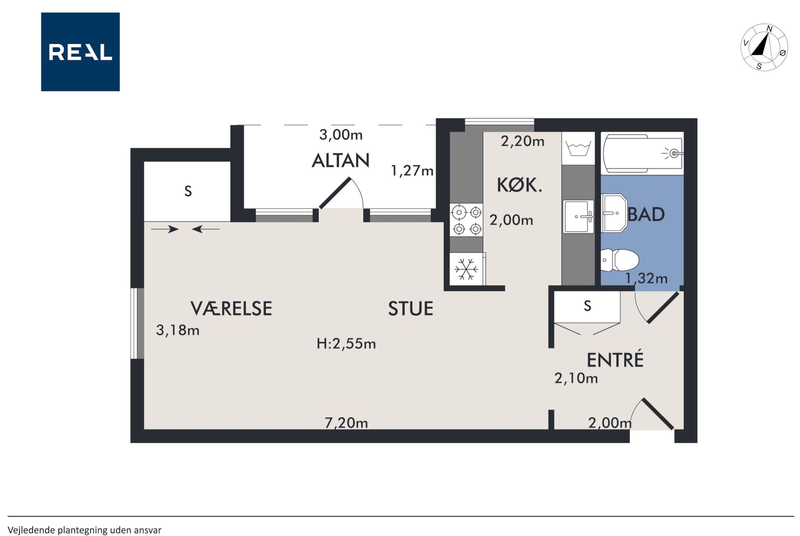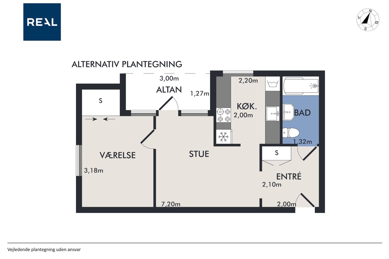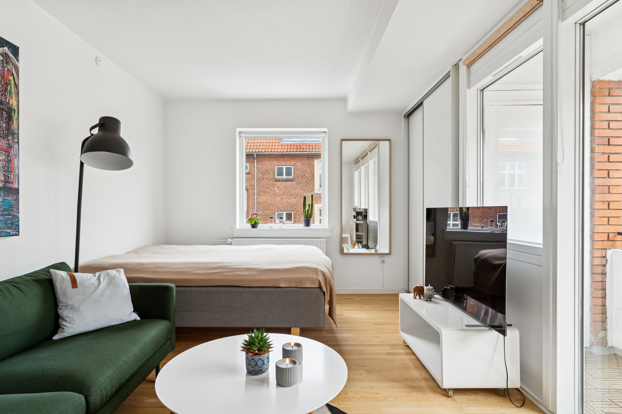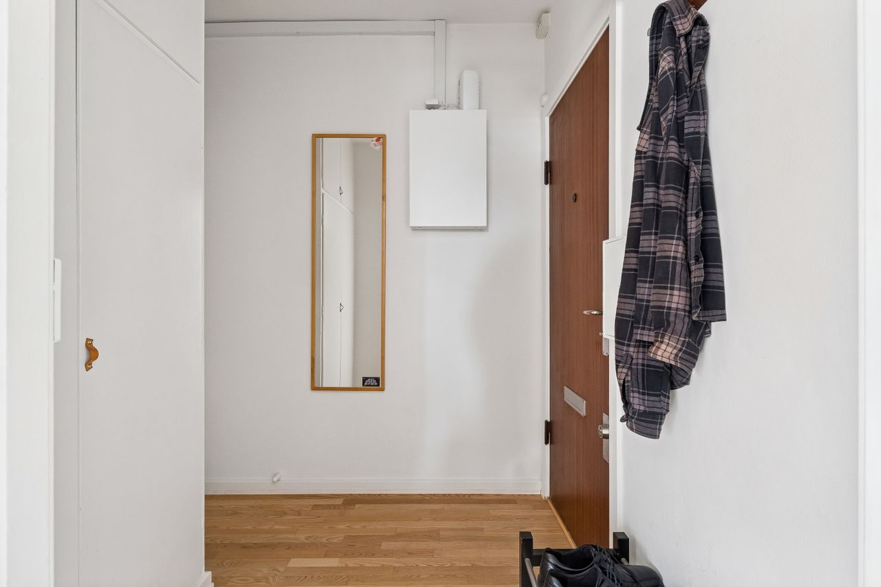 Indretning: Velkommen til denne indbydende hjørnelejlighed beliggende på 4. sal i en veldrevet ejendom med elevator. Lejligheden udmærker sig ved et fantastisk lysindfald fra flere verdenshjørner samt en skøn fornemmelse af fri himmel, som skaber en let og luftig atmosfære i boligen. Lejligheden fremstår indflytningsklar og er ideel for både singler og par, der ønsker en nem og komfortabel bolig i et af Østerbros mest eftertragtede kvarterer. Lejligheden er i dag indrettet som en veldisponeret 1‑værelses, men planløsningen giver gode muligheder for at etablere en separat soveafdeling og dermed omdanne boligen til en funktionel 2‑værelses lejlighed, hvis behovet opstår. Dette gør boligen særdeles fleksibel og attraktiv for både nuværende og fremtidige boligbehov. Opholdsrummet er rummeligt og let at indrette med både sofaarrangement, spiseplads og soveafsnit. De store vinduespartier understreger lejlighedens hjørneplacering og sikrer et flot, naturligt lys hele dagen. Fra opholdsrummet er der direkte udgang til en overdækket altan, hvilket skaber en naturlig forlængelse af opholdsrummet og gør det muligt at nyde uderummet til fulde. Lejligheden har et separat og funktionelt køkken, der fremstår stilrent med hvide elementer, god skabsplads og massive træbordplader. Køkkenet er praktisk indrettet og rummer desuden vaskemaskine, hvilket bidrager til en velfungerende hverdag.
