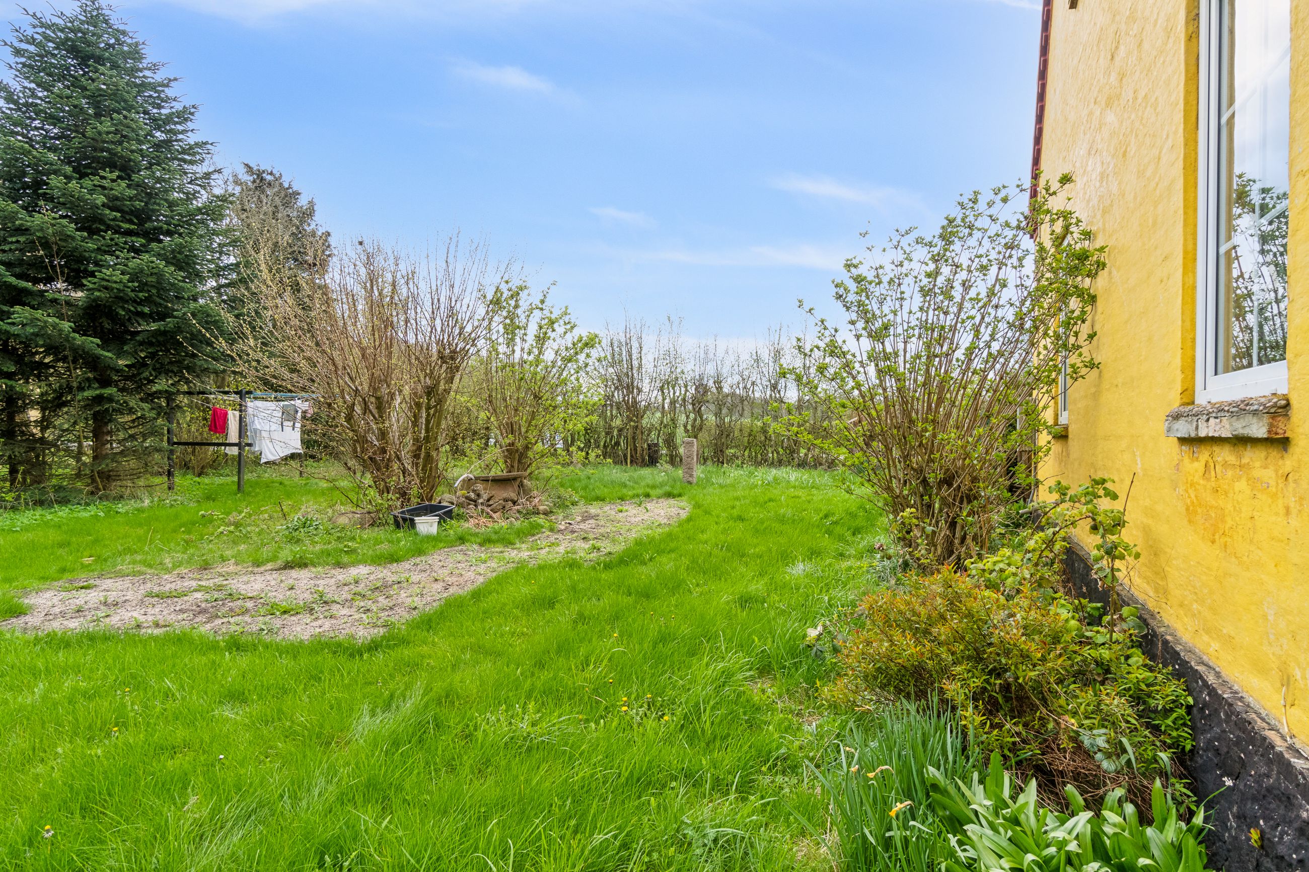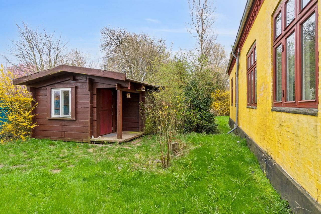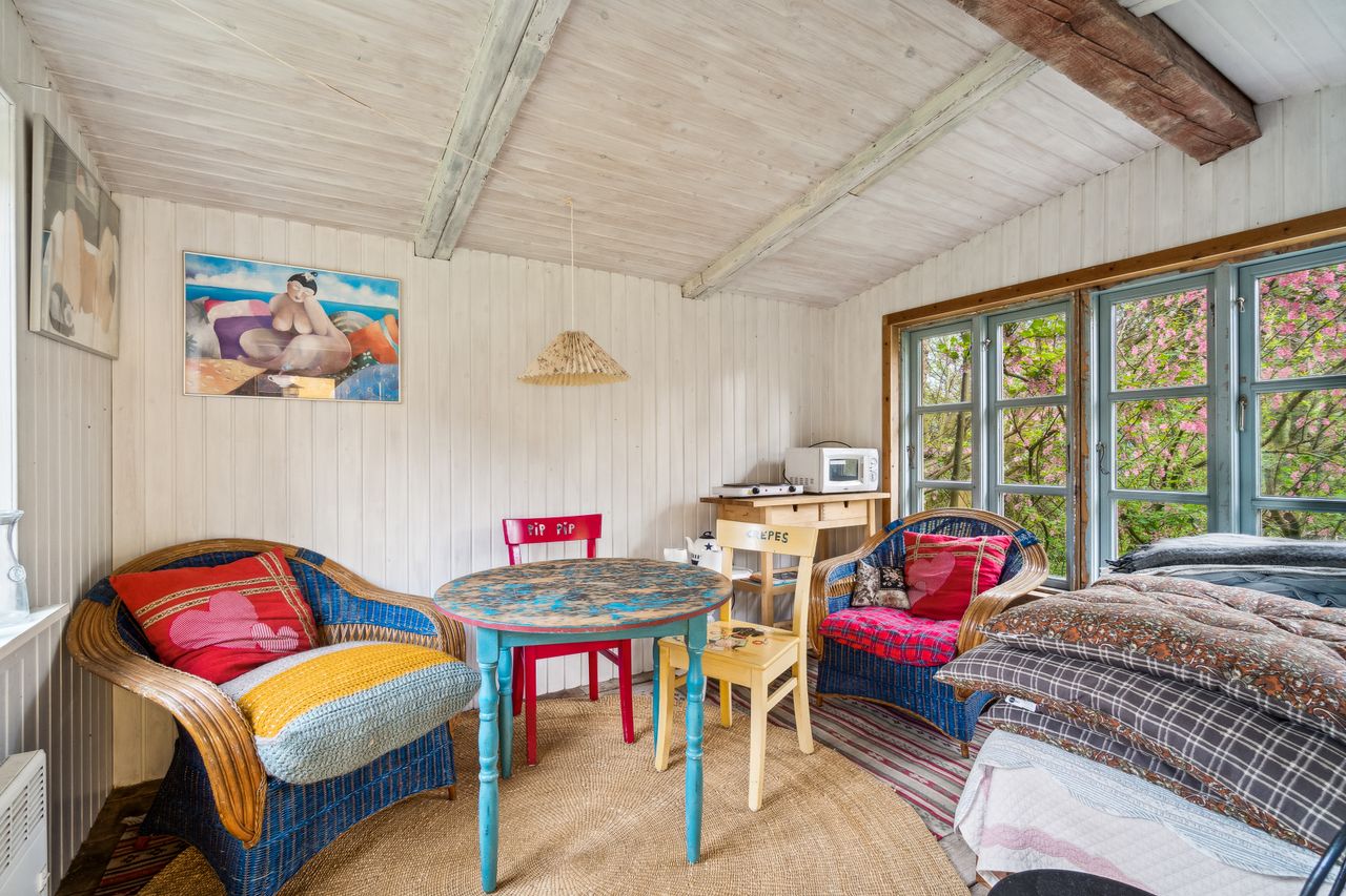 Anneks i baghaven, som rummer et stort værelse.