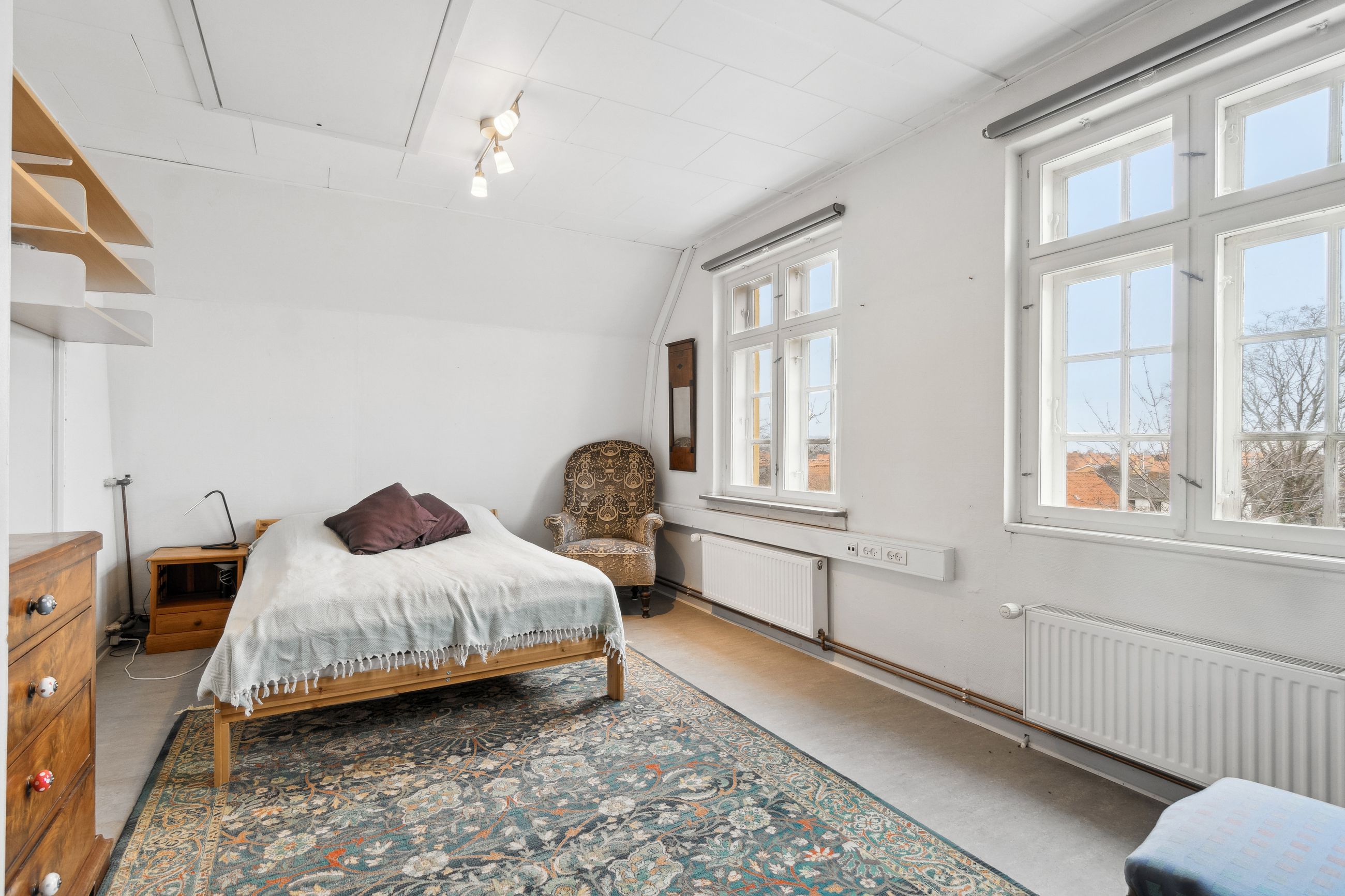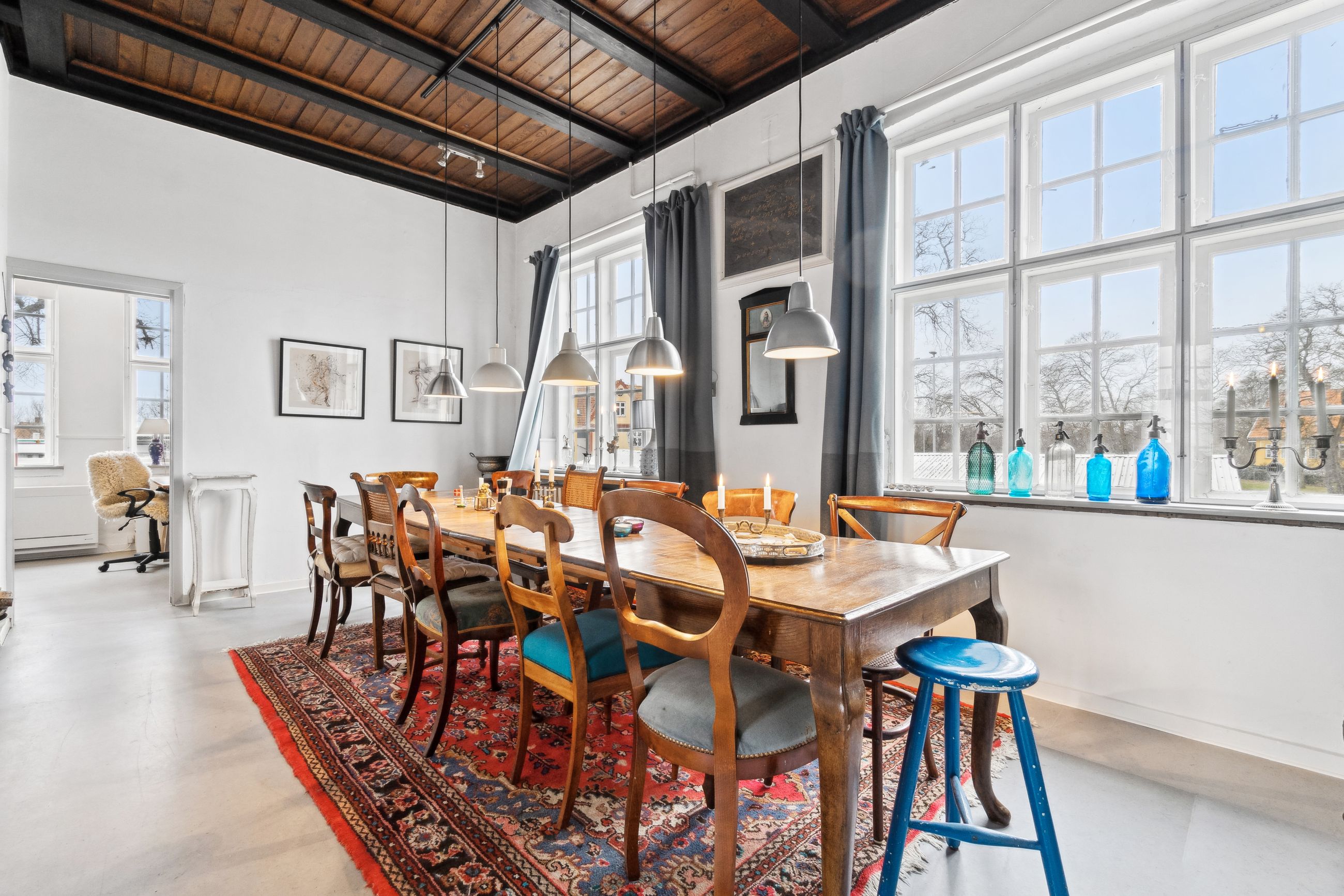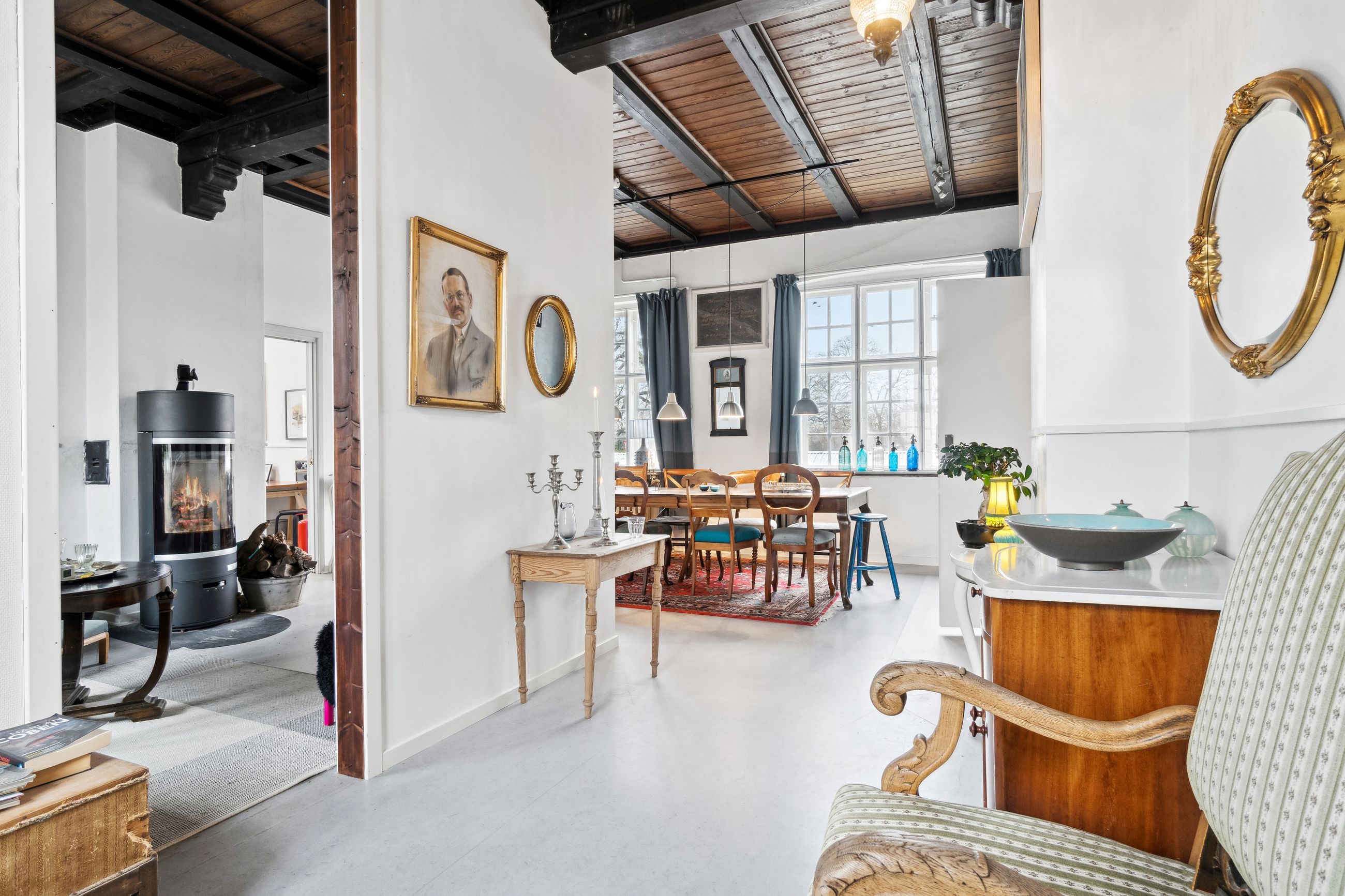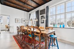 Stor skøn herskabelig villa centralt i Nexø by omkranset af en stor frodig have, hvor der er indrettet flere hyggekroge. En stor træterrasse med udgang fra køkken, placeret så solen kan nydes hele dagen. Orangeriet i gården, som danner rammerne om et aktivt udeliv, er bare en del af hele boligens tilbud. Herskabeligheden afspejler sig også i indretningen, med de skønne robuste loftsbjælker som skaber en hyggelig atmosfære.Institutionslooket fra den tidligere anvendelse som børnehave er udvisket og erstattet af det rustikke udtryk på den fede måde.