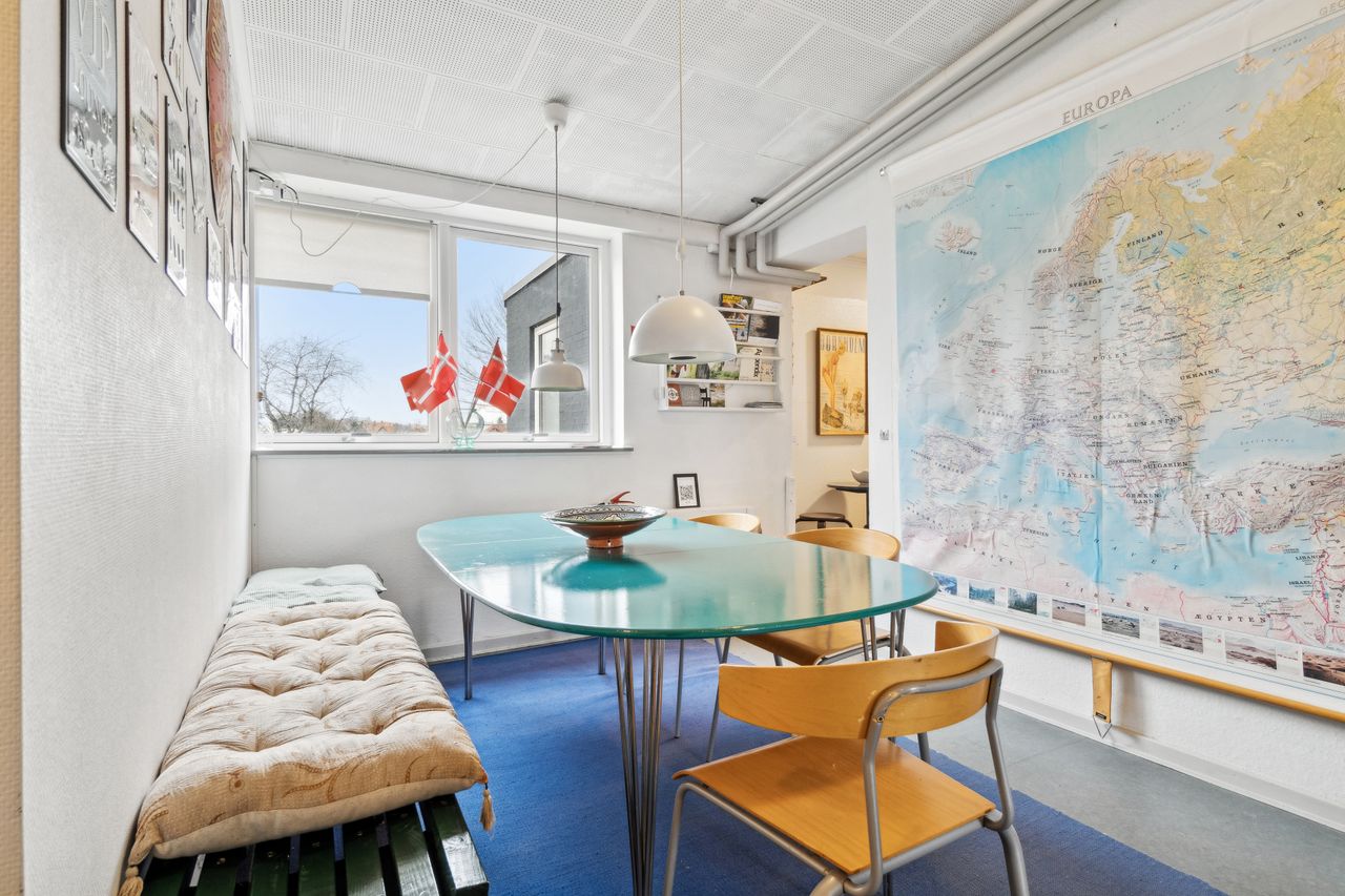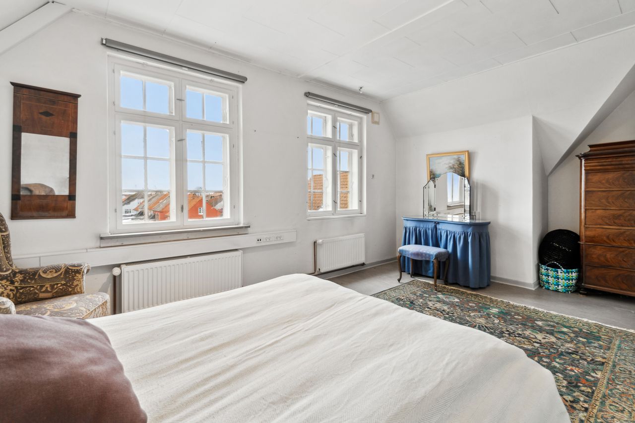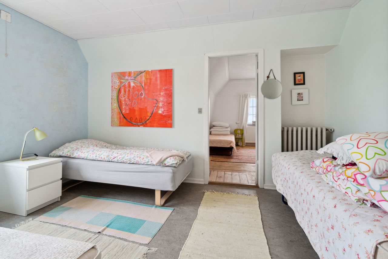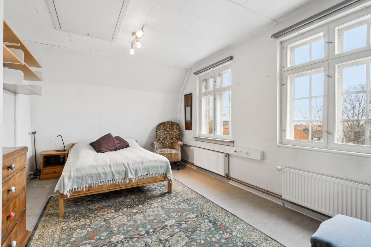 Huset kan med sine mange værelser og indretning let bruges som bofællesskab, sommerudlejning af værelser, eller et hus hvor flere generationer kan bo sammen. Man bliver budt velkommende til følgende indretning:Modtagelse med garderobe og samlingsplads. Badeværelse m/brus.Toilet m/håndvask.Værelse - opdelt i 2 rum - soveplads og opholdsrum.Køkken med alt i hårde hvidevarer fra 2016, udgang til have og træterrasse.3 gode værelser, det ene med udgang til gårdsplads.2 sammenhængende stuer, den ene med brændeovn.Badeværelse m/brus.Karnap med opg. til 1. sal. 1. sal: Repos.Walkin-closet2 gode værelserLille stue Kælder:Kælderentre tillige med nedgang udefra.Fyrrum med fjernvarmeunit. Stort aktivitetsrum, som kan samle familien til spil og leg. Vaskerum. Udhuse. Cykelskur. Brænderum. Huset har været benyttet af ejer og lejere - fortrinsvis sommerudlejning på værelsesbasis. Er du nysgerrig på mere og hvad denne bolig kan tilbyde - kontakt os gerne for en fremvisning.