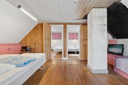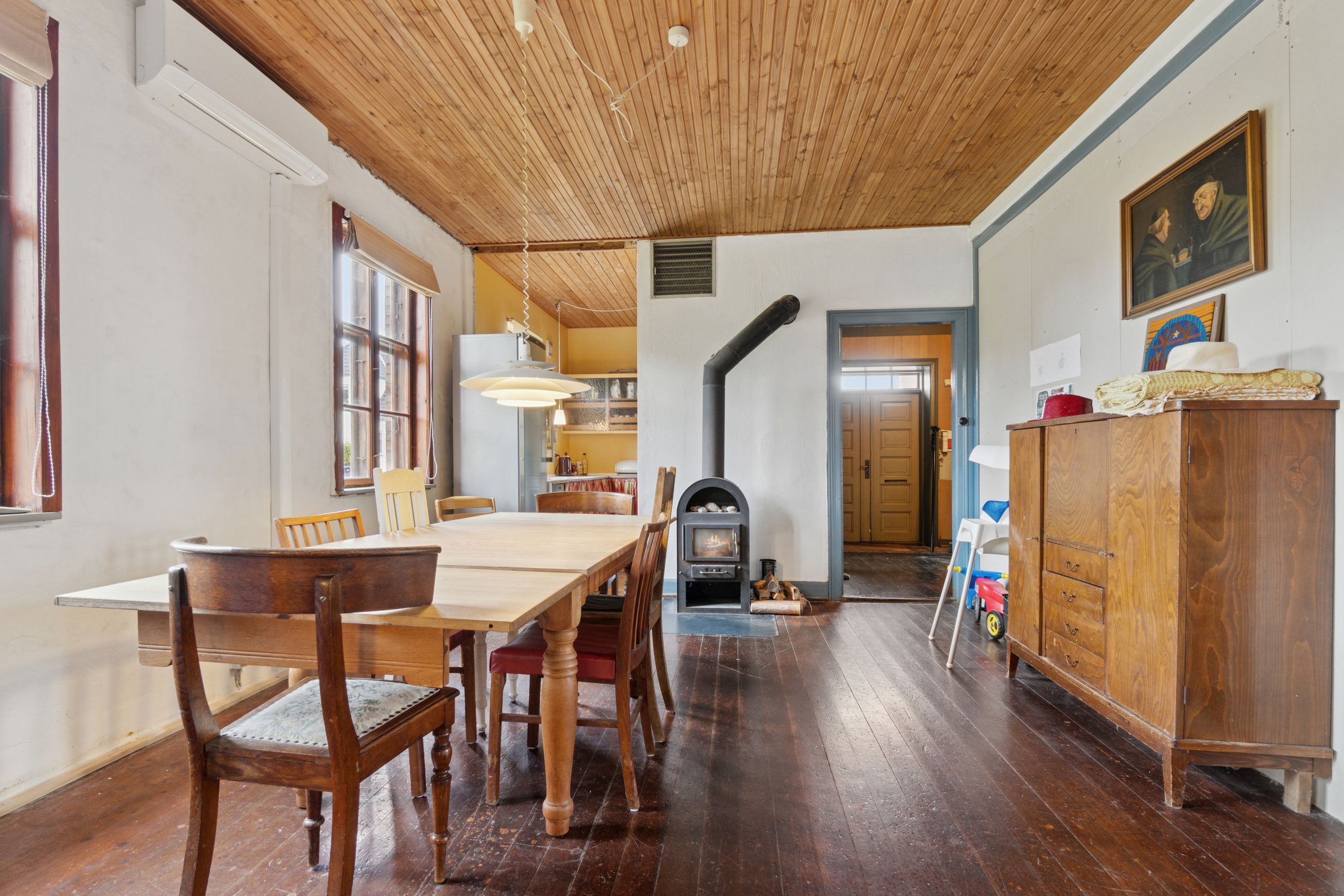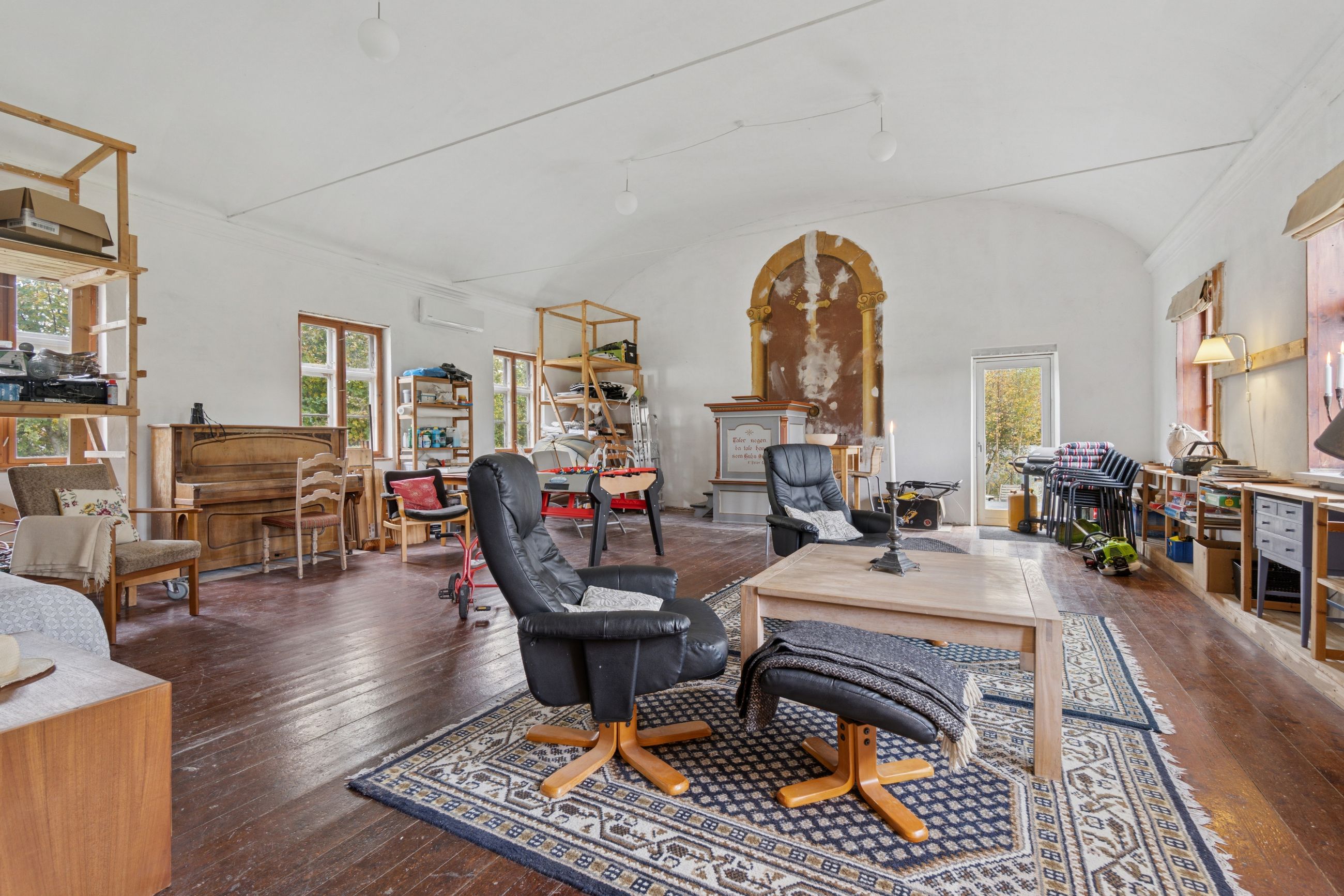 138 kvm i ét plan, med parken som nabo - en have at nyde uden at skulle yde, og ikke mindst stisystemet til den daglige aftentur, før dagen går på hæld. Her kan mange ønsker blive opfyldt, om det måtte være at finde roen i bare at være, eller det er den kreative side som skal have frit løb - huset rummer pladsen hertil. Huset indeholder: Entre m/trappe til 1. sal. Gæstetoilet med håndvask. Retro køkken med oliefyr med varmeblæser (kaloriferfyr) Spisestue med brændeovn Badeværelse med brus og gulvvarme. Værelse. Stor stue med højt til loftet og udgang til stor træterrasse og have. 1. sal: Stue.To værelser.Udhus bagerst i haven. Mulighed for at parkere på grunden.Kælder - ikke ståhøjde - til olietank og her ses rørføringen.En ejendom som indtil for ca. 12 år siden blev anvendt som missionshus og herefter har været på private hænder. Bygningen er pt registreret på BBR til kulturelle formål.