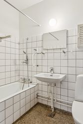 Meget stor, lys og venlig 2-værelses lejlighed på 70 kvm. som byder på en rummelig stue med plads til både sofaarrangement og spisebord, et hyggeligt køkken med spiseplads ved vinduet, hårde hvidevarer og god opbevaringsplads, et soveværelse med skabsplads og plads til en dobbeltseng og sidst et klassisk hvidt flisebadeværelse med terrazzogulv og badekar. Fra stuen er der udgang til lejlighedens store, hyggelige, vestvendte og glasinddækkede altan.