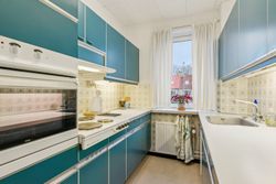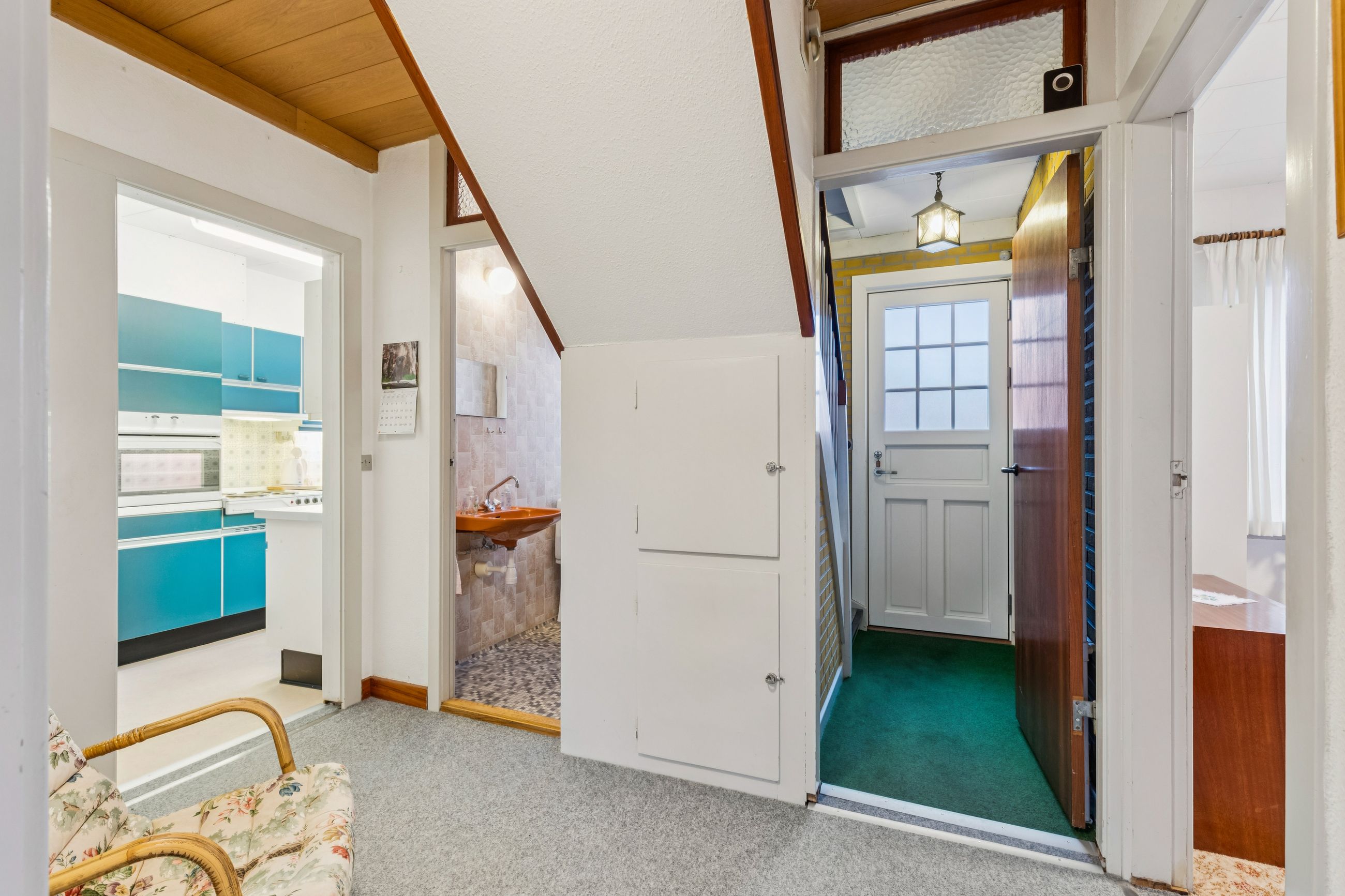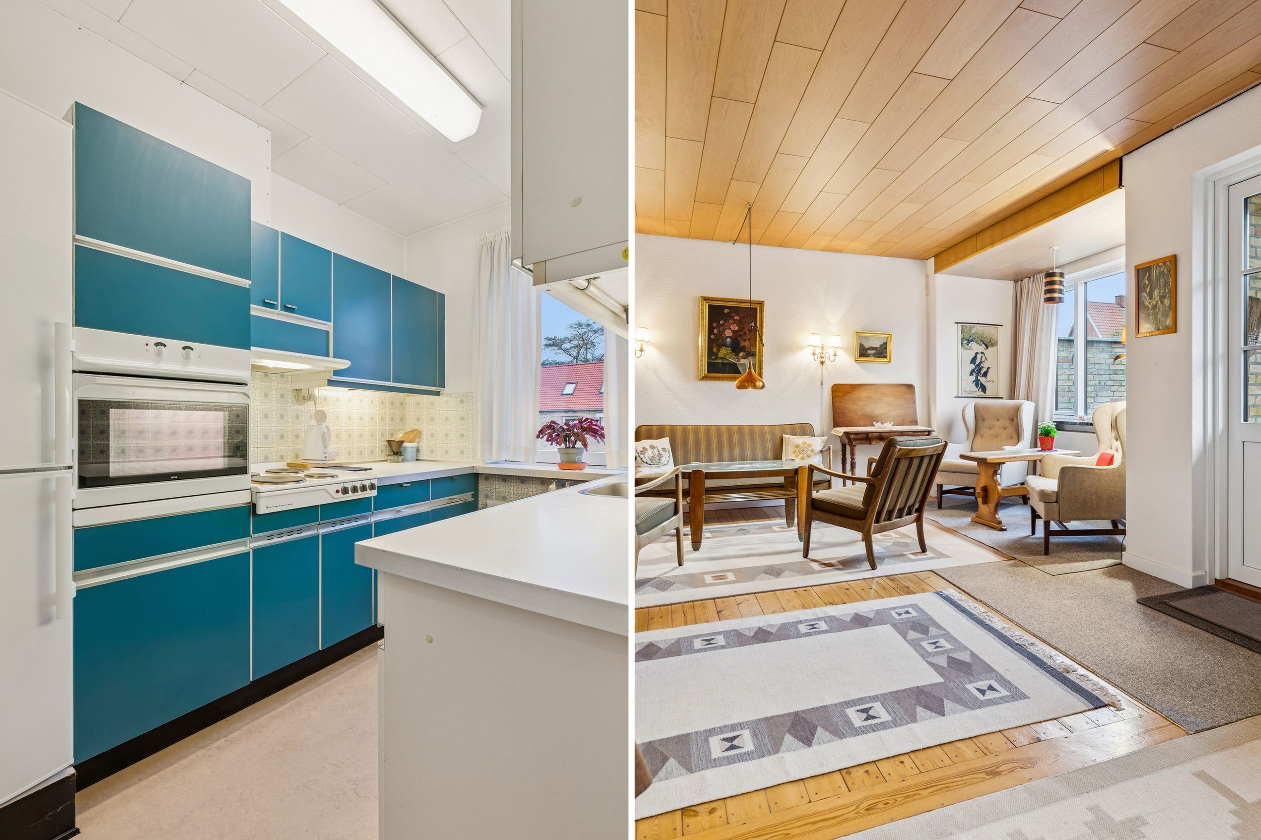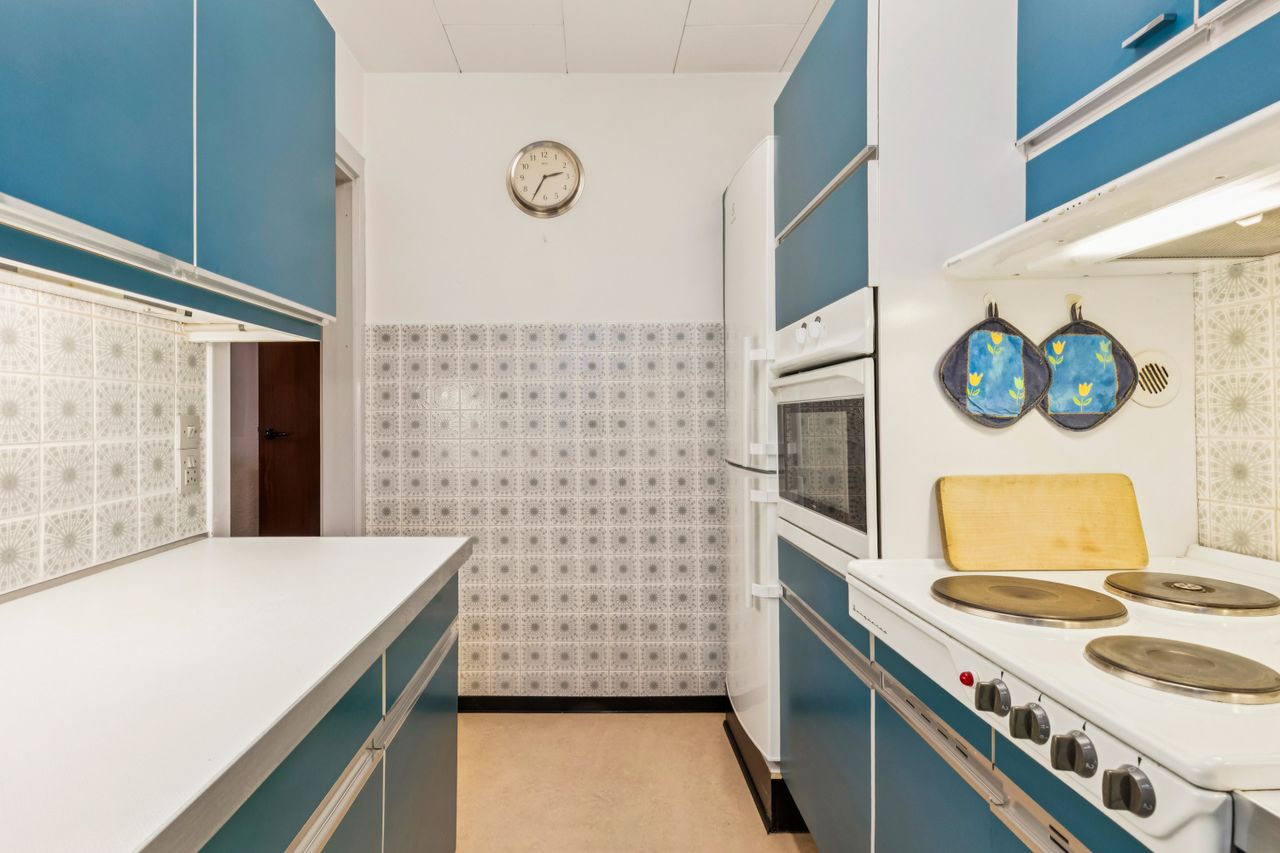 Køkkenet er et kapitel for sig. Et originalt, tysk Poggenpohl-kvalitetskøkken fra 1972 i en skøn petroliumsfarve – et ægte blikfang, der emmer af personlighed og godt håndværk. Herudover finder I et soveværelse og et gæstetoilet i stueplan.