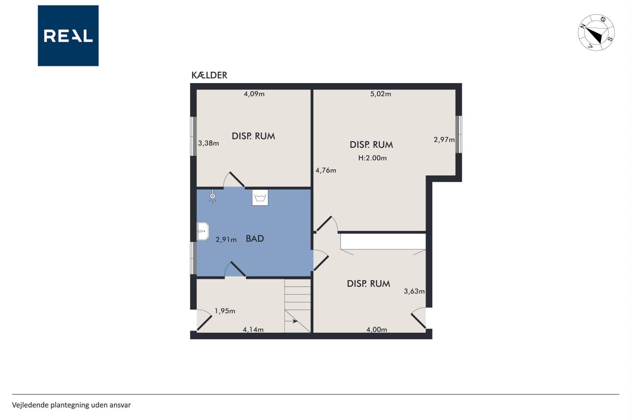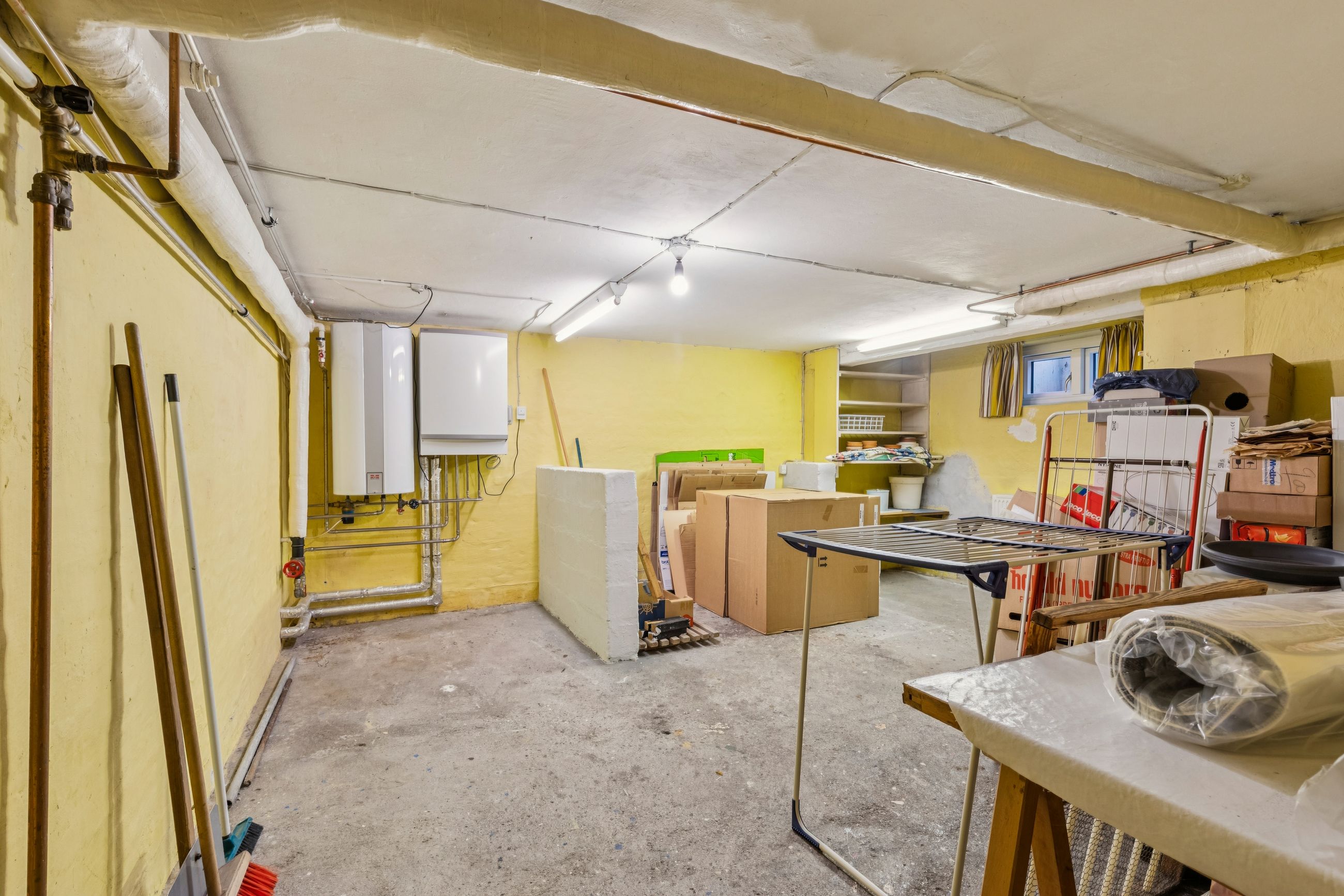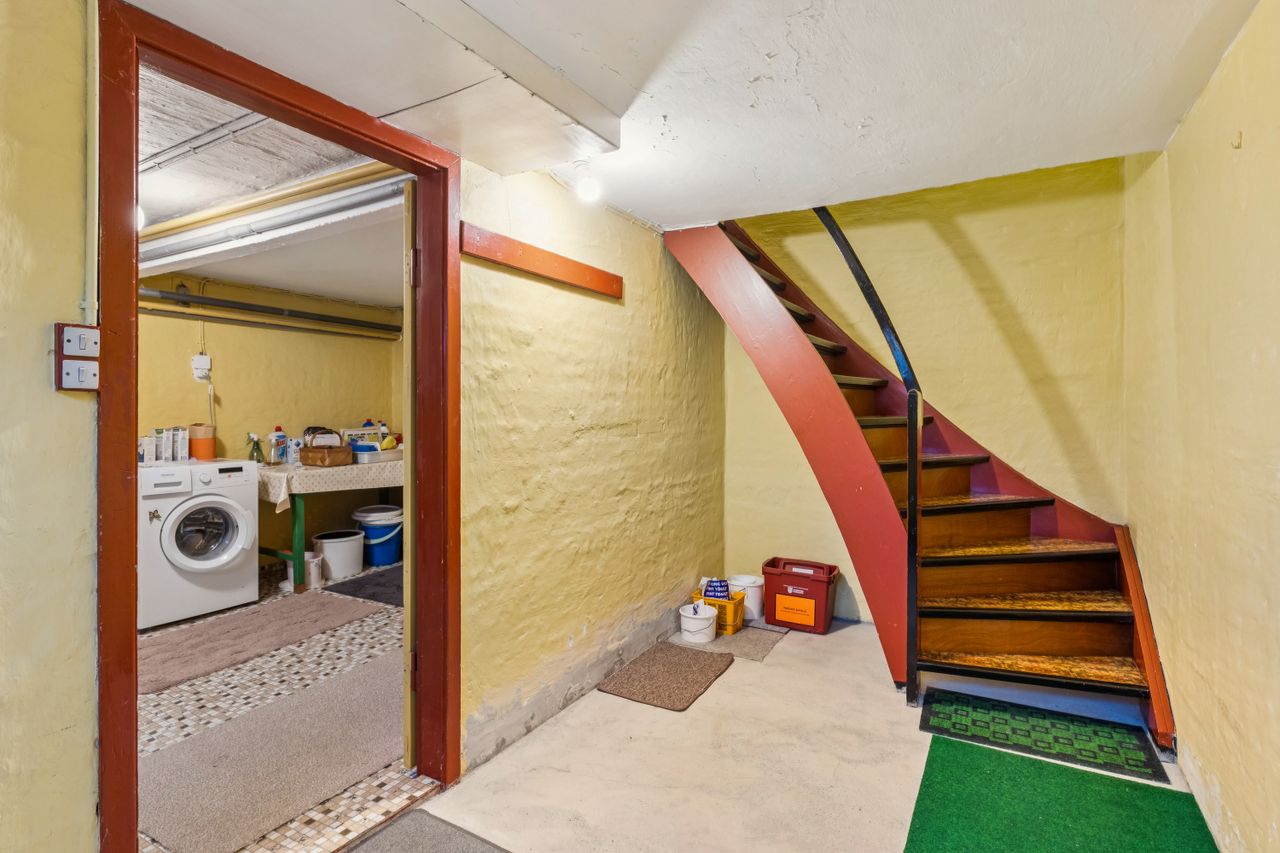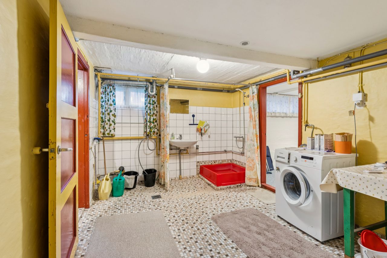 Kælderen giver masser af ekstra plads og muligheder. Der findes en ekstra bademulighed, vaskerum samt flere disponible rum, der let kan bruges til opbevaring, værksted, hobbyrum eller teenagerum.
