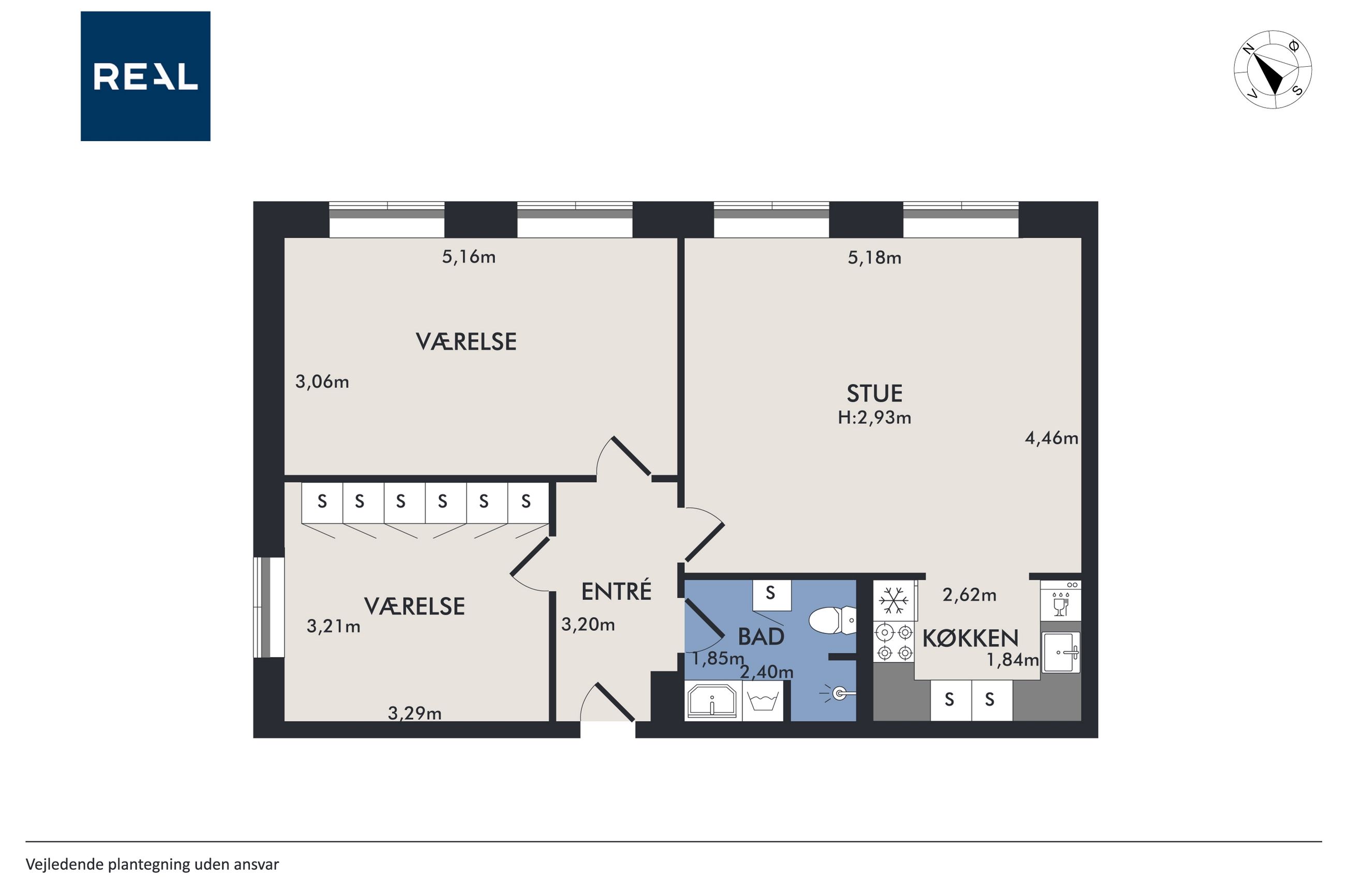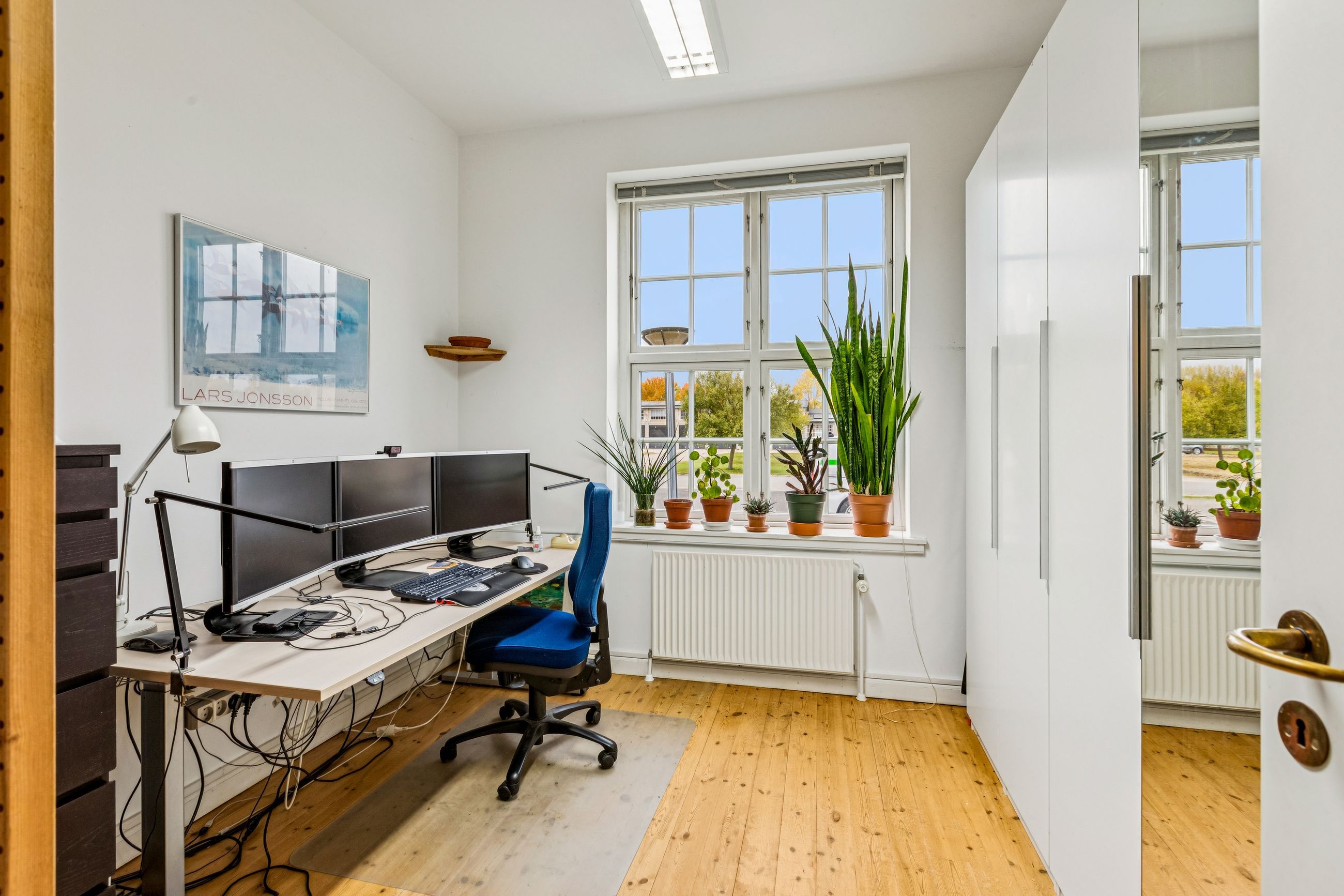 Lejligheden indh : Indbydende entré med god plads til overtøj, lys og rummelig opholdsstue med åben forbindelse til et HTH-elementkøkken – perfekt til både hverdag og hyggelige middage med venner. Herudover skønt soveværelse med gode skabe og roligt udtryk, dejligt ekstra værelse, der kan bruges som børneværelse, kontor eller gæsteværelse og endelig et lækkert badeværelse med bruseniche og gulvvarme, så komforten er i top året rundt.