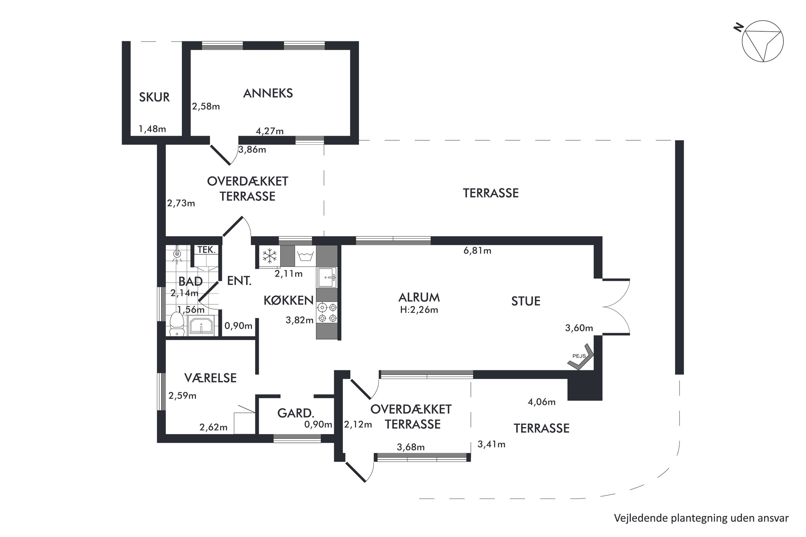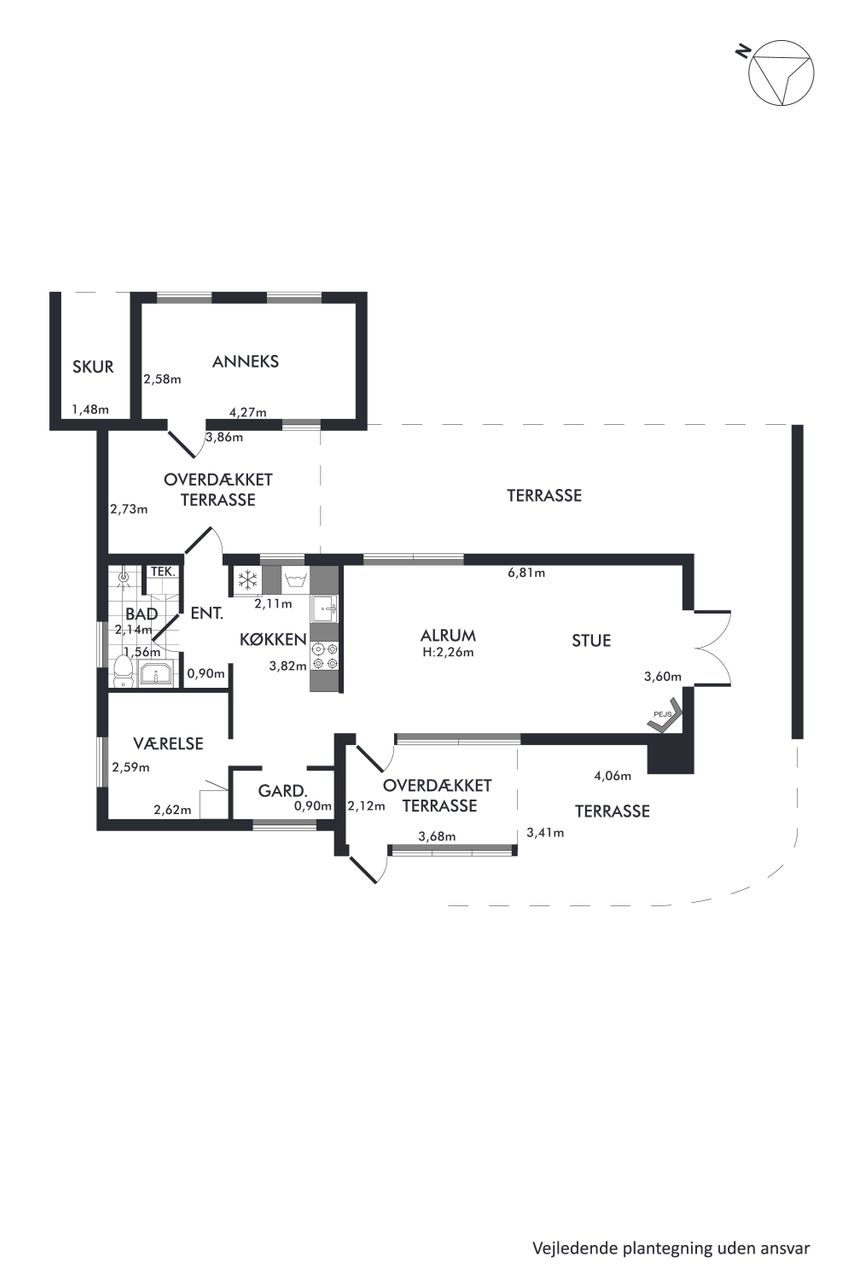 er desuden mulighed for at opdele stuen og skabe et ekstra værelse, hvis behovet skulle opstå.