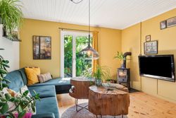 Huset varmes effektivt op af en brændeovn og en varmepumpe, som gør det muligt at bruge boligen