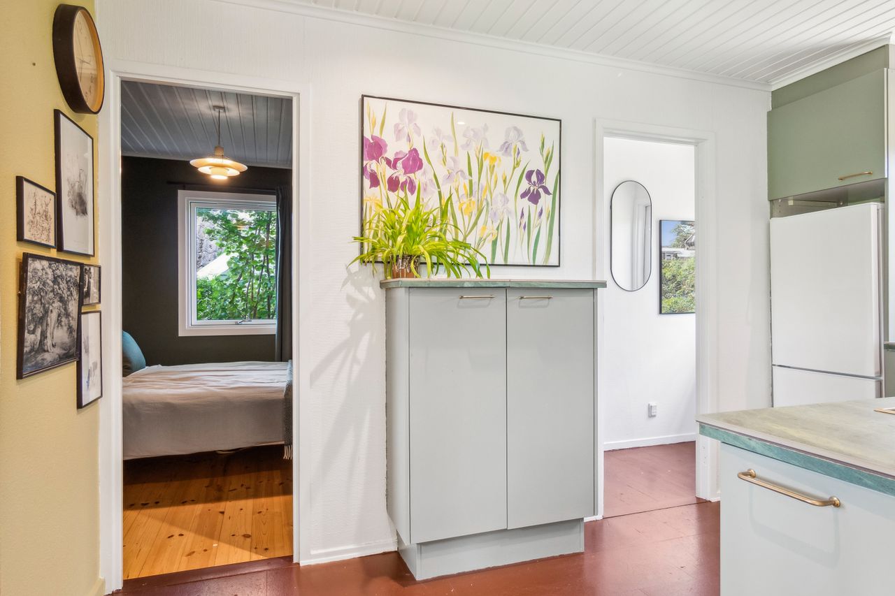 Her får du et charmerende og overskueligt fritidshus, opført i klassisk västkust stugan-stil, perfekt til dig,