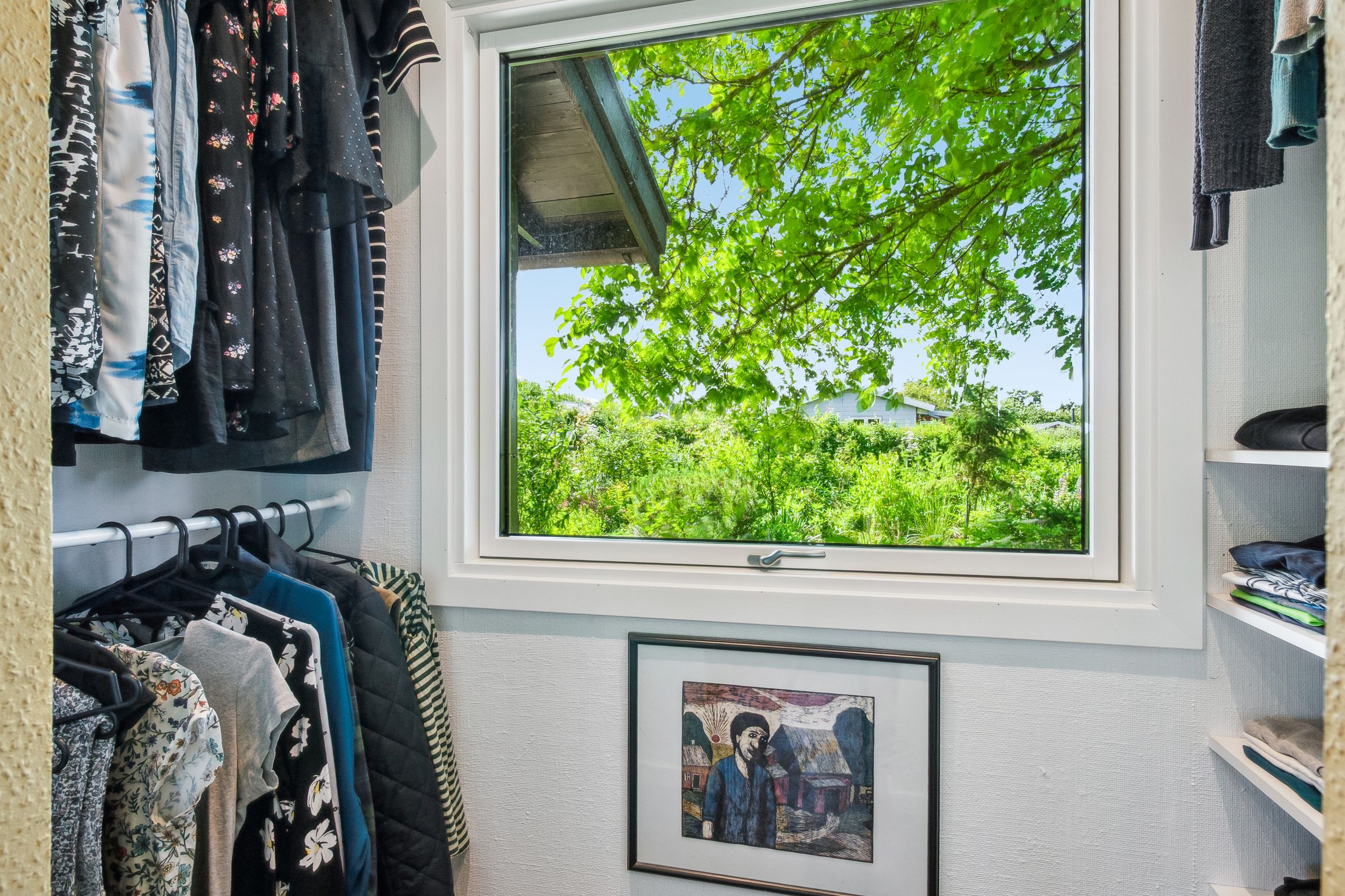 Soveværelset har en god størrelse og tilhørende lille walk-in-closet, som giver ekstra opbevaringsplads.