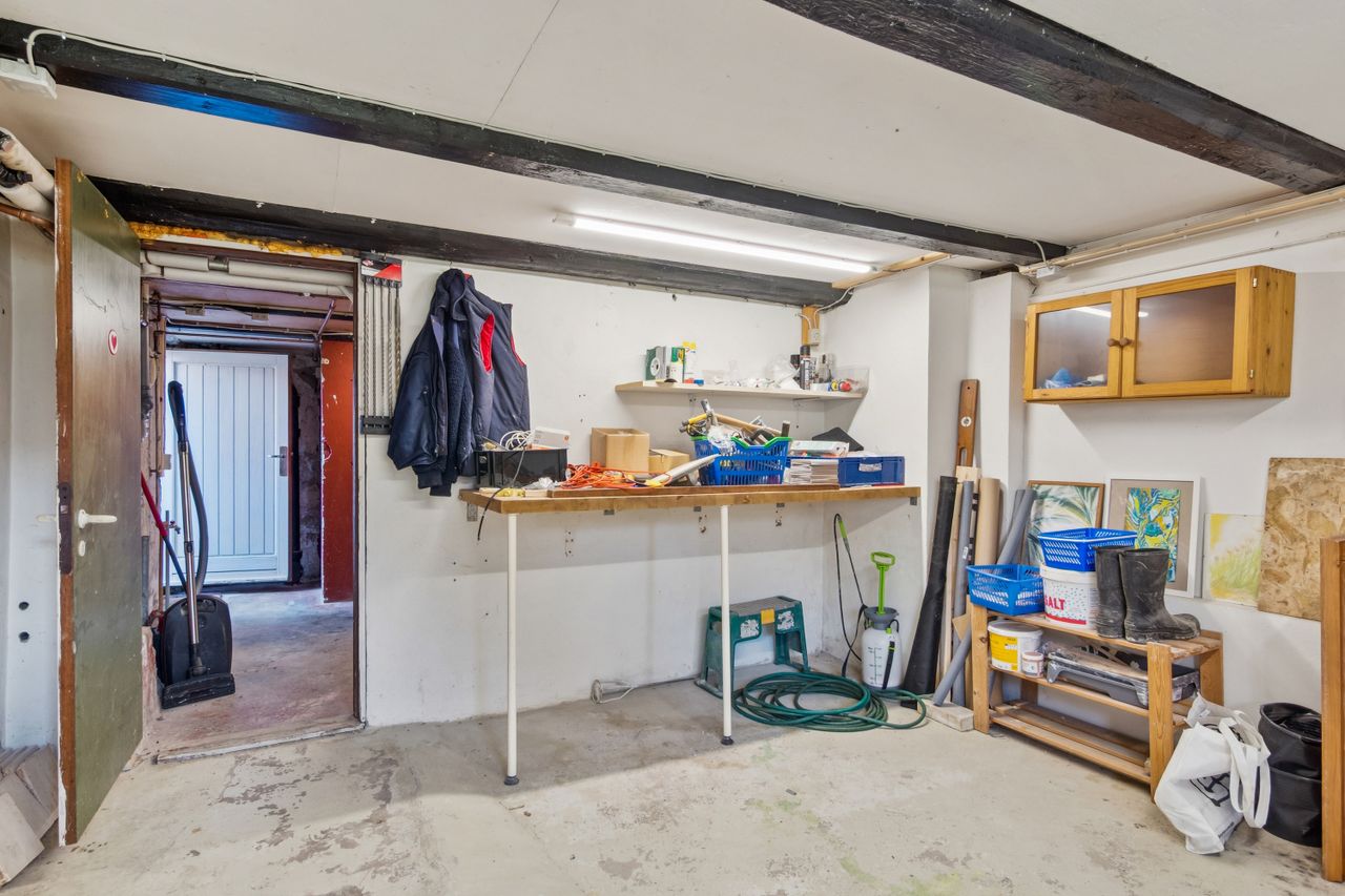 Med en stor grund og en generøs garage får du masser af plads til leg, opbevaring og kreative projekter. Den store have giver mulighed for både udendørs aktiviteter og roligt ophold, mens kælderen giver ekstra opbevaringsplads eller mulighed for et hobbyrum, vaskerum eller måske et hjemmefitness. Garagen er perfekt til bil, cykler eller værktøj – eller måske drømmer du om at indrette et værksted.