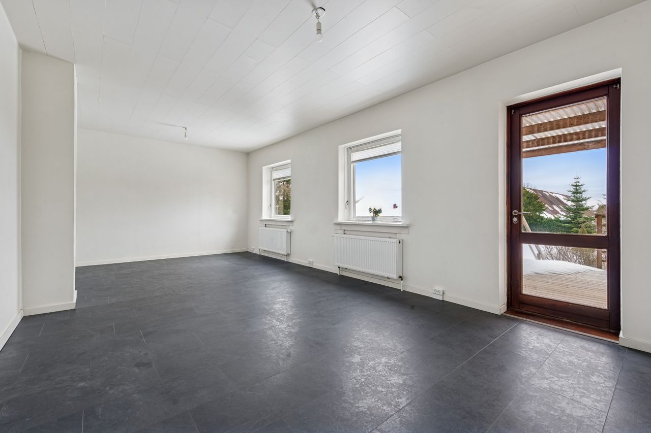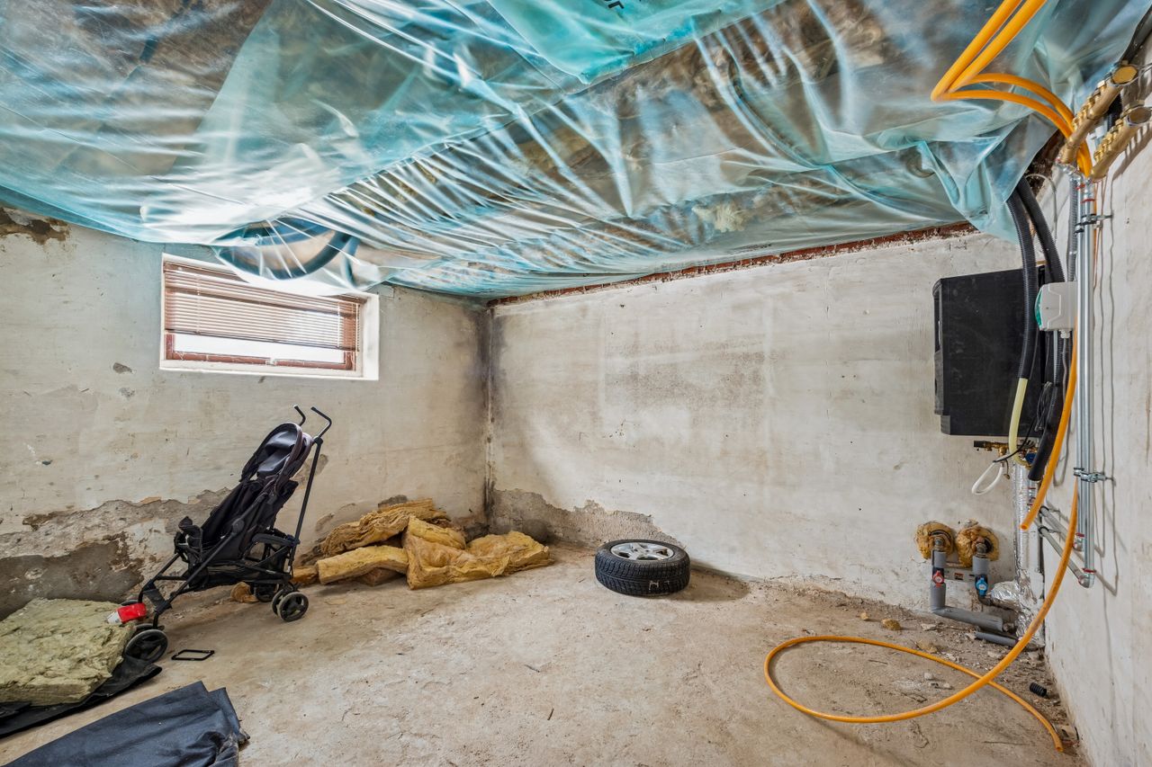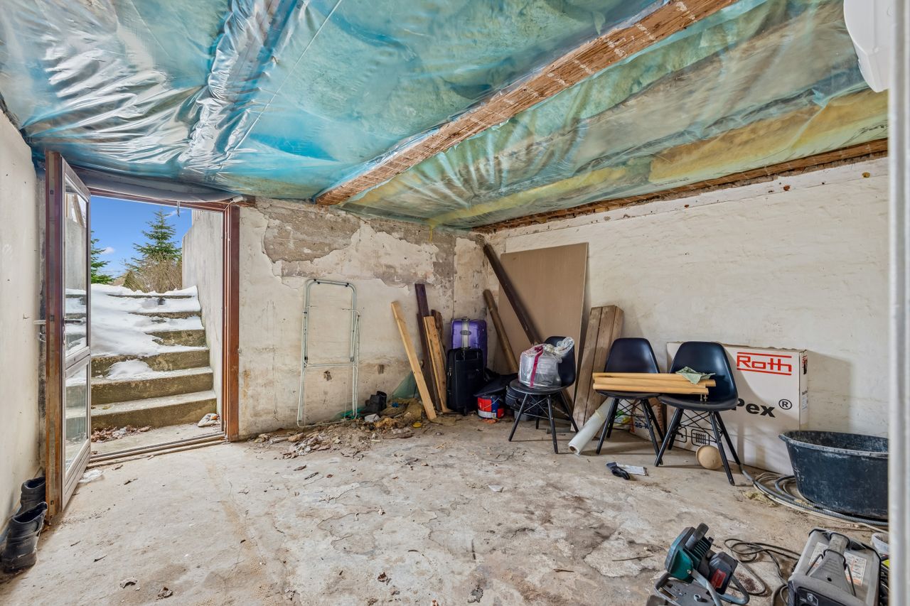 Selvom kælderen står råt flere steder og trænger til færdiggørelse, giver det dig som ny ejer muligheden for at sætte dit helt eget præg på indretningen og materialevalget. En fordel ved ejendommen er også muligheden for at etablere en trappe ned fra boligdelen direkte ned i kælderen, hvilket vil forbedre adgangen betydeligt.