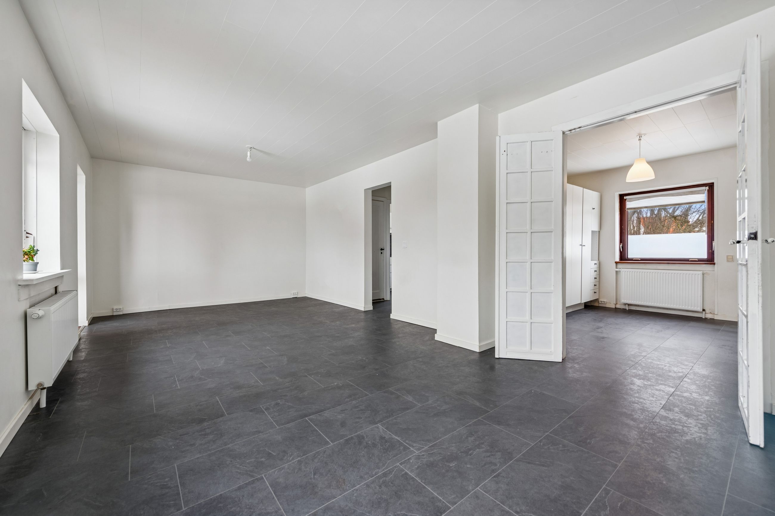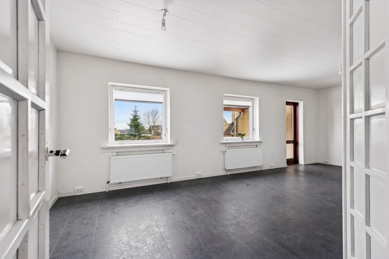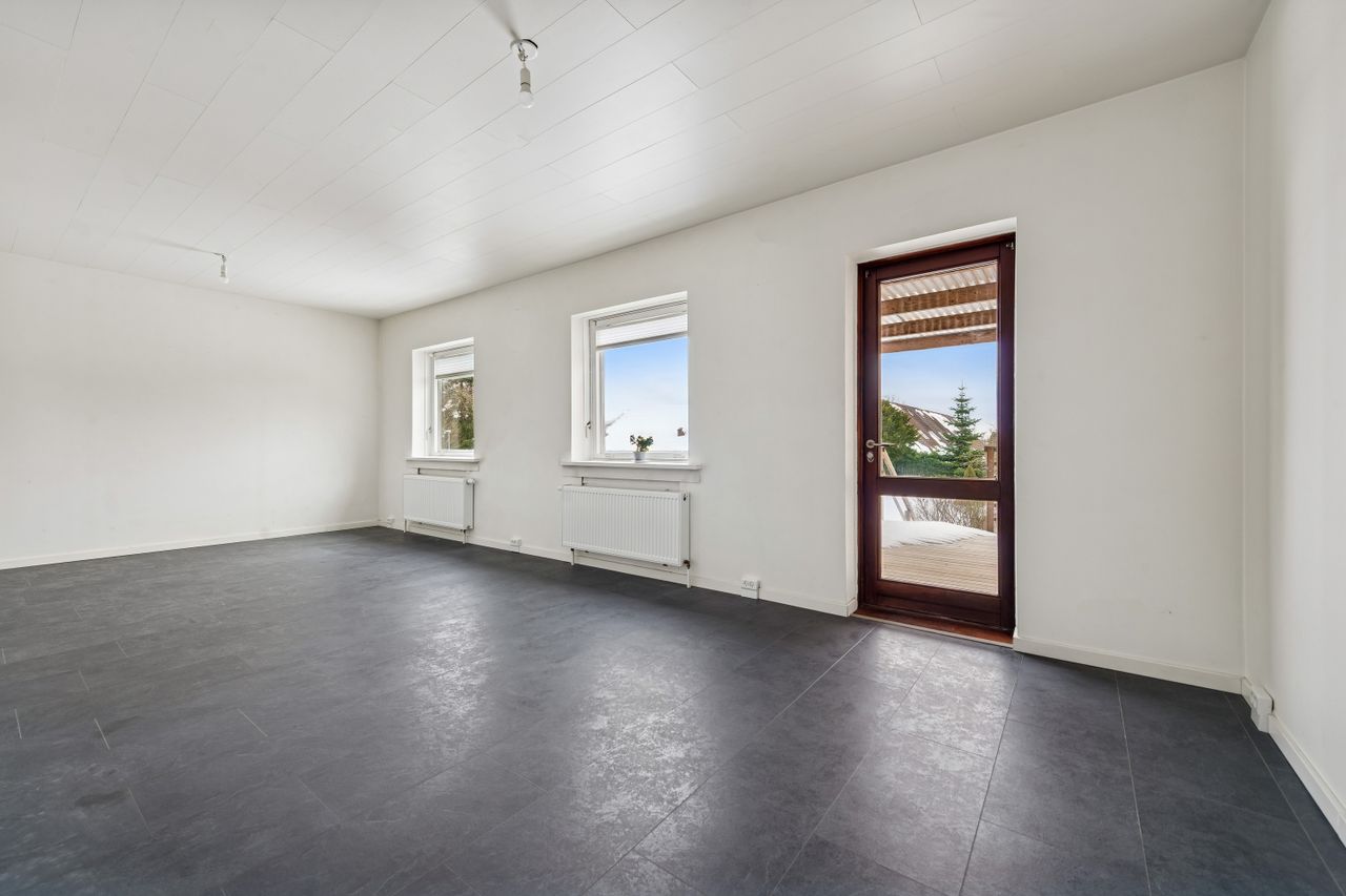 Selvom kælderen står råt flere steder og trænger til færdiggørelse, giver det dig som ny ejer muligheden for at sætte dit helt eget præg på indretningen og materialevalget. En fordel ved ejendommen er også muligheden for at etablere en trappe ned fra boligdelen direkte ned i kælderen, hvilket vil forbedre adgangen betydeligt.
