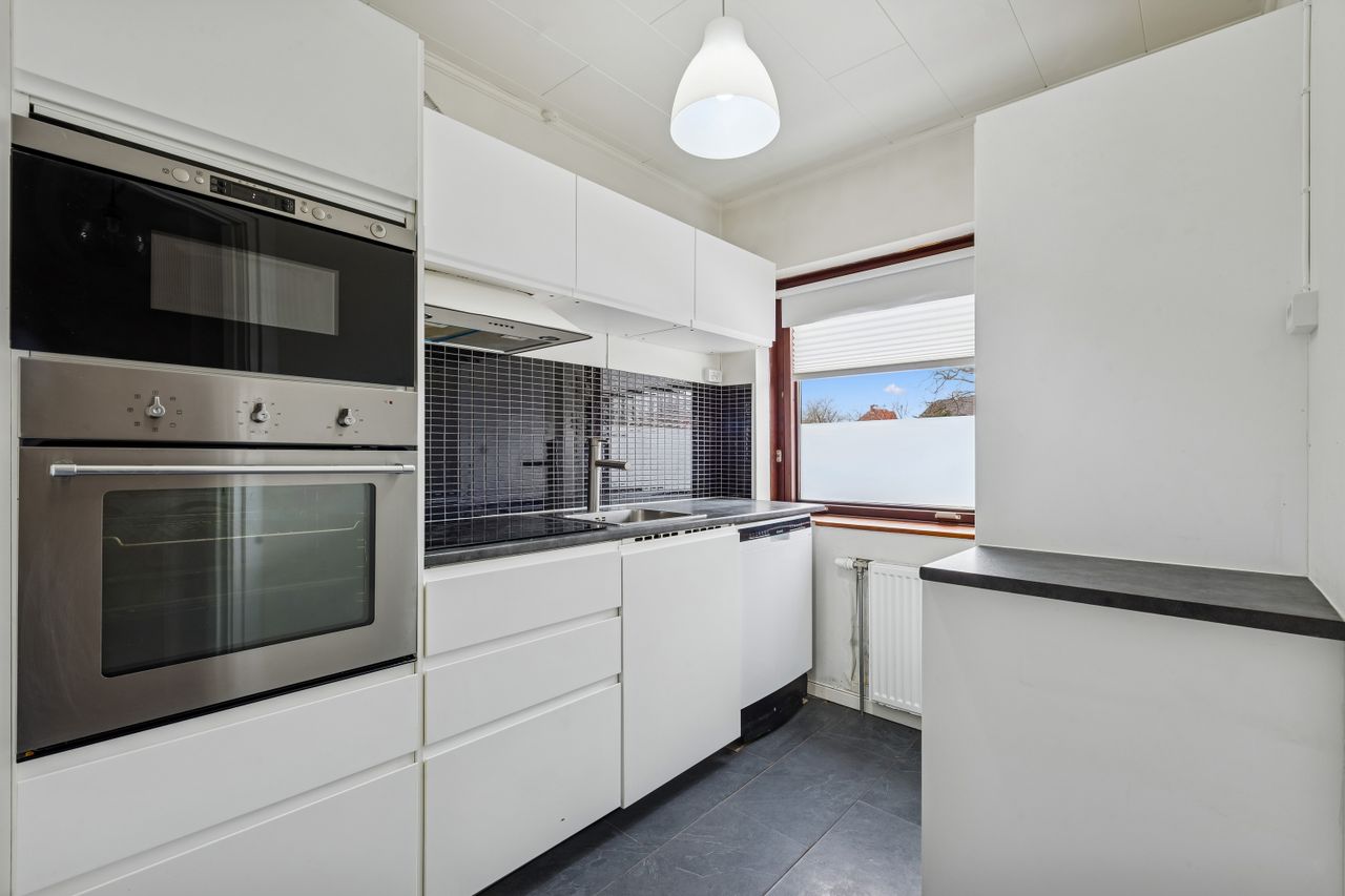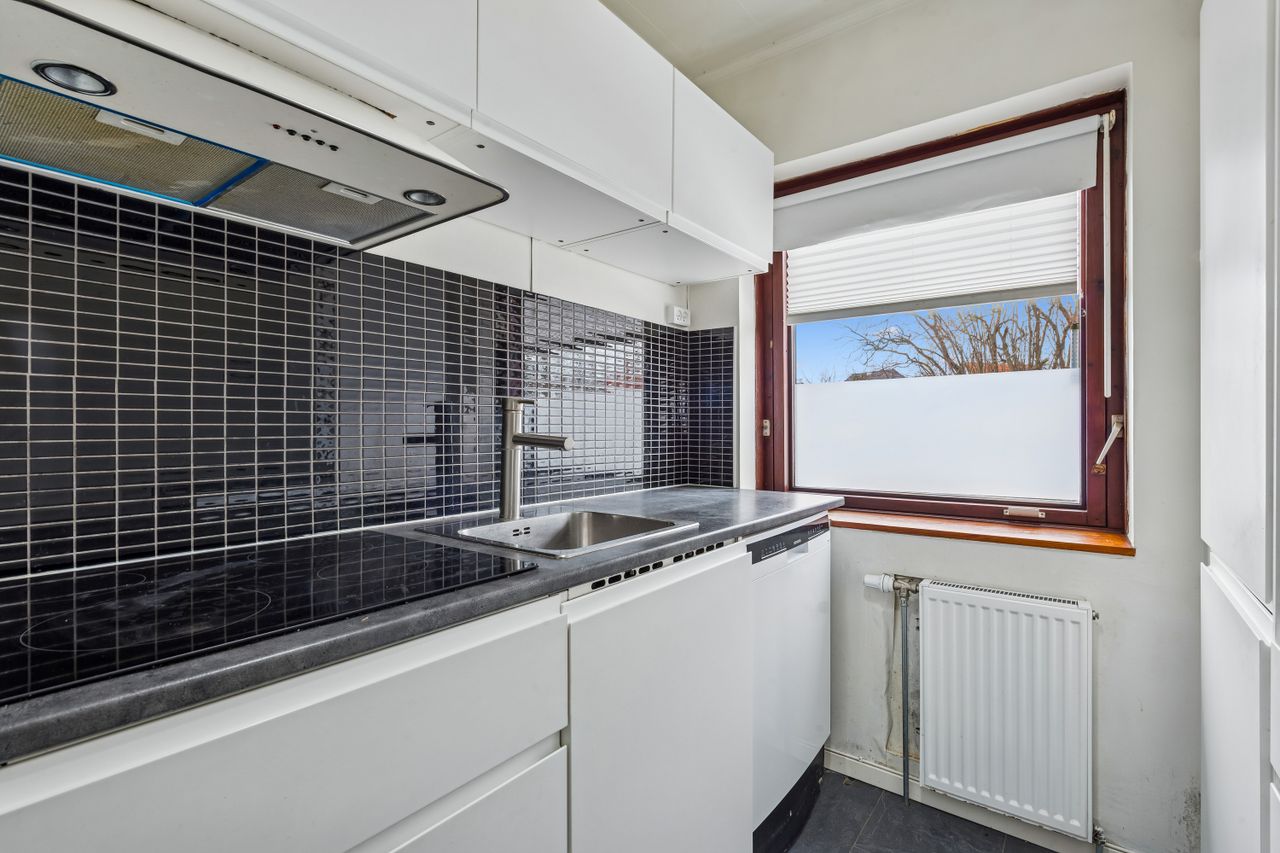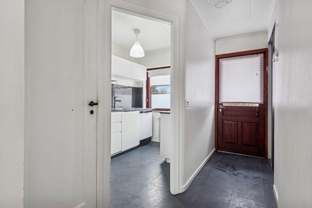 Velkommen til dette charmerende rækkehus fra 1940, der byder på en unik kombination af klassisk charme og moderne muligheder. Beliggende næsten sidst på vejen i et eftertragtet kvarter, tilbyder denne ejendom en rolig og familievenlig atmosfære med nærhed til alle nødvendige faciliteter. Med et boligareal på 61 kvadratmeter samt en lige så stor kælder, er der rig mulighed for at skabe dit drømmehjem.